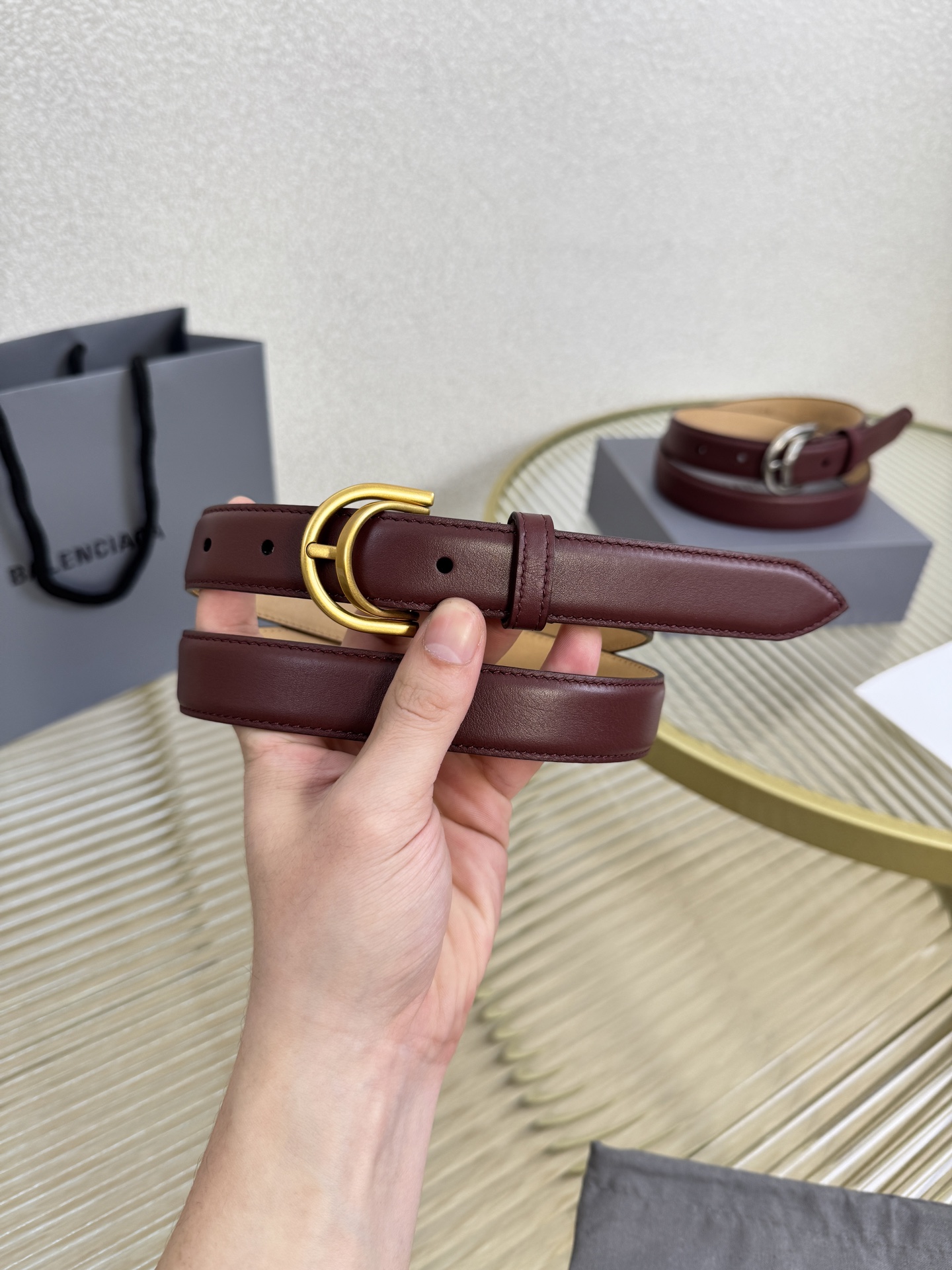 Balenciaga 2.5cm width, French luxury brand. Made from imported calfskin with antique brass hardware. Versatile and stylish.