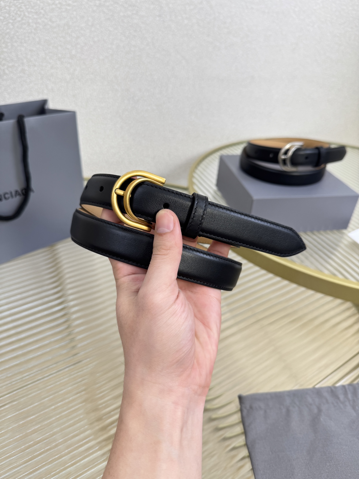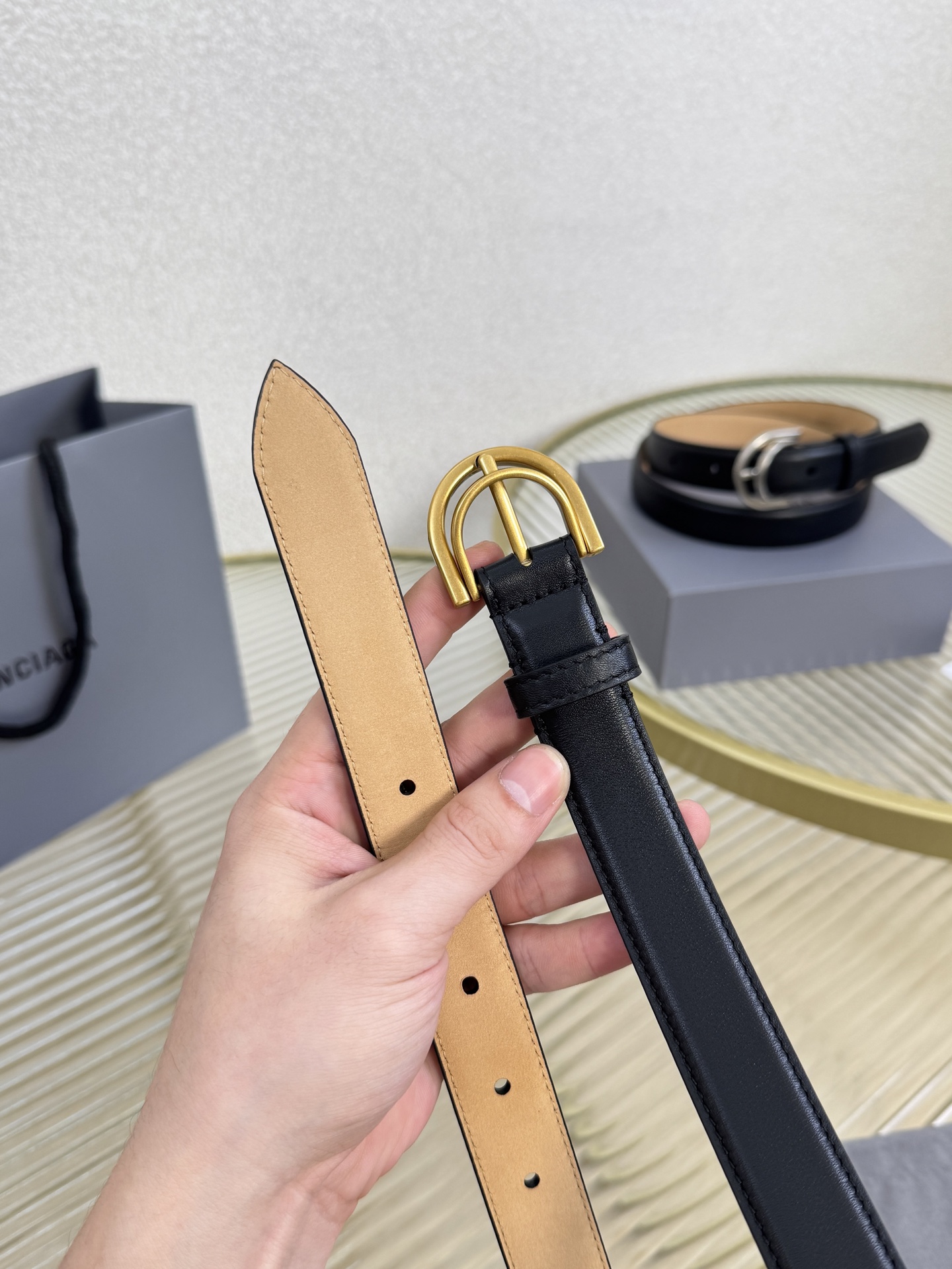 Balenciaga 2.5cm width, French luxury brand. Made from imported calfskin with antique brass hardware. Versatile and stylish.