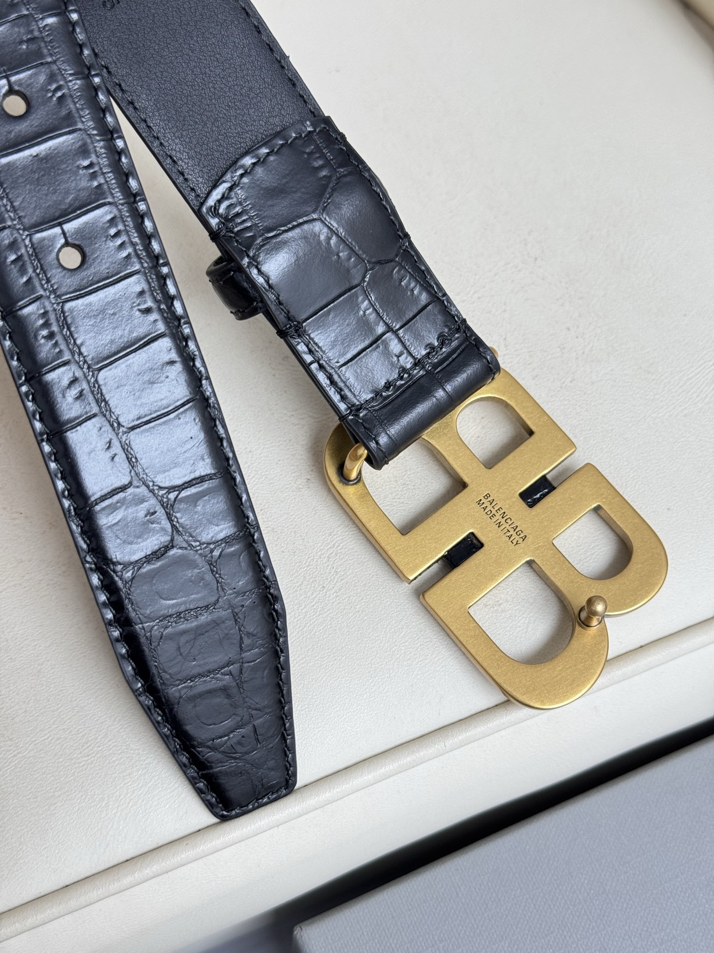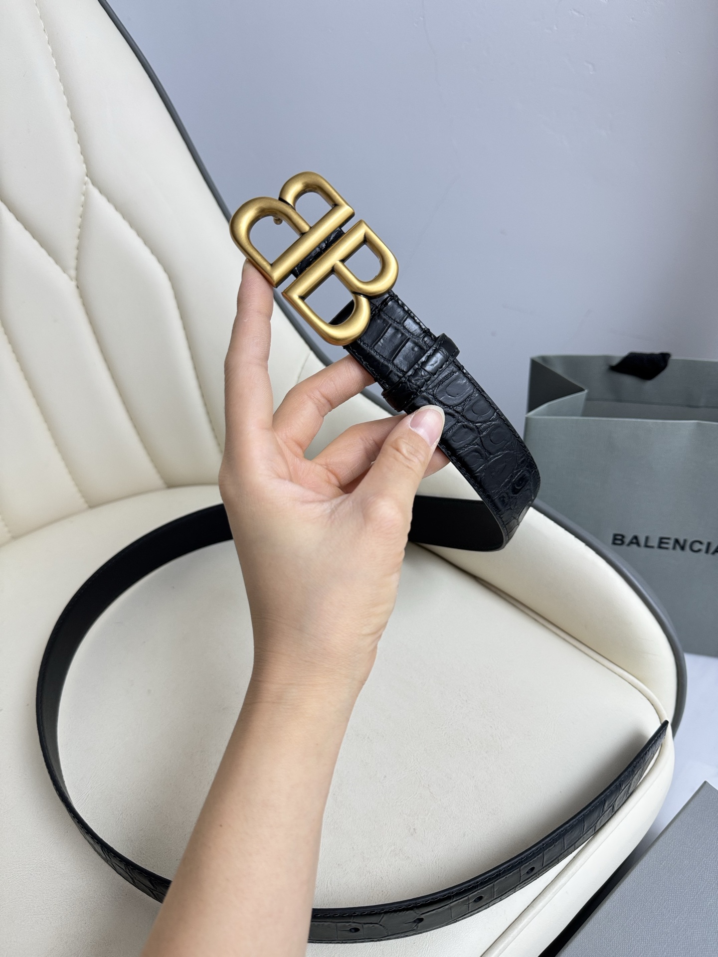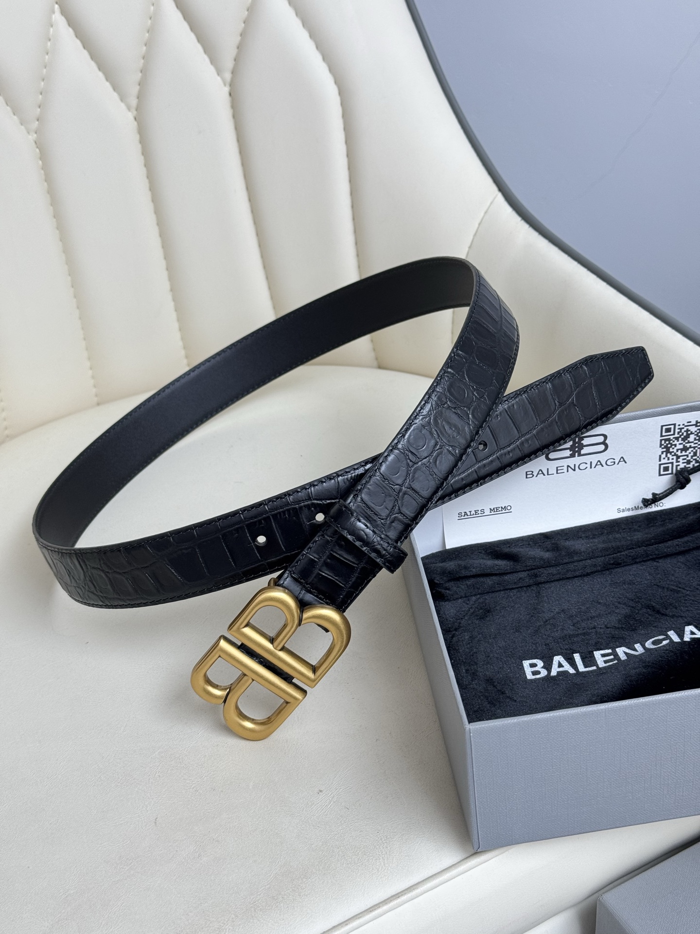 Balenciaga 3.0cm width. French luxury brand, influential in fashion. Urban style, imported calfskin, brass hardware. Versatile essential.