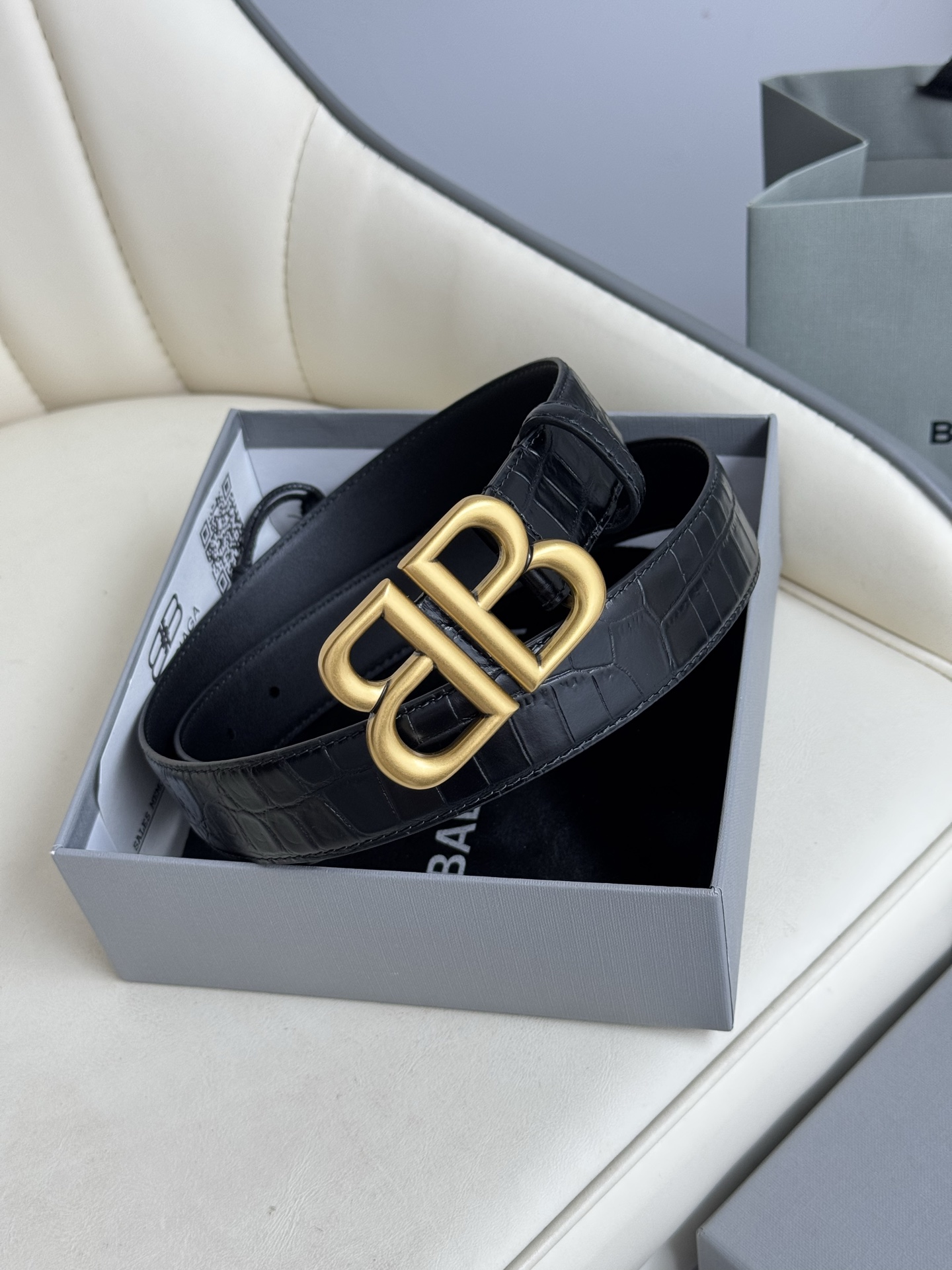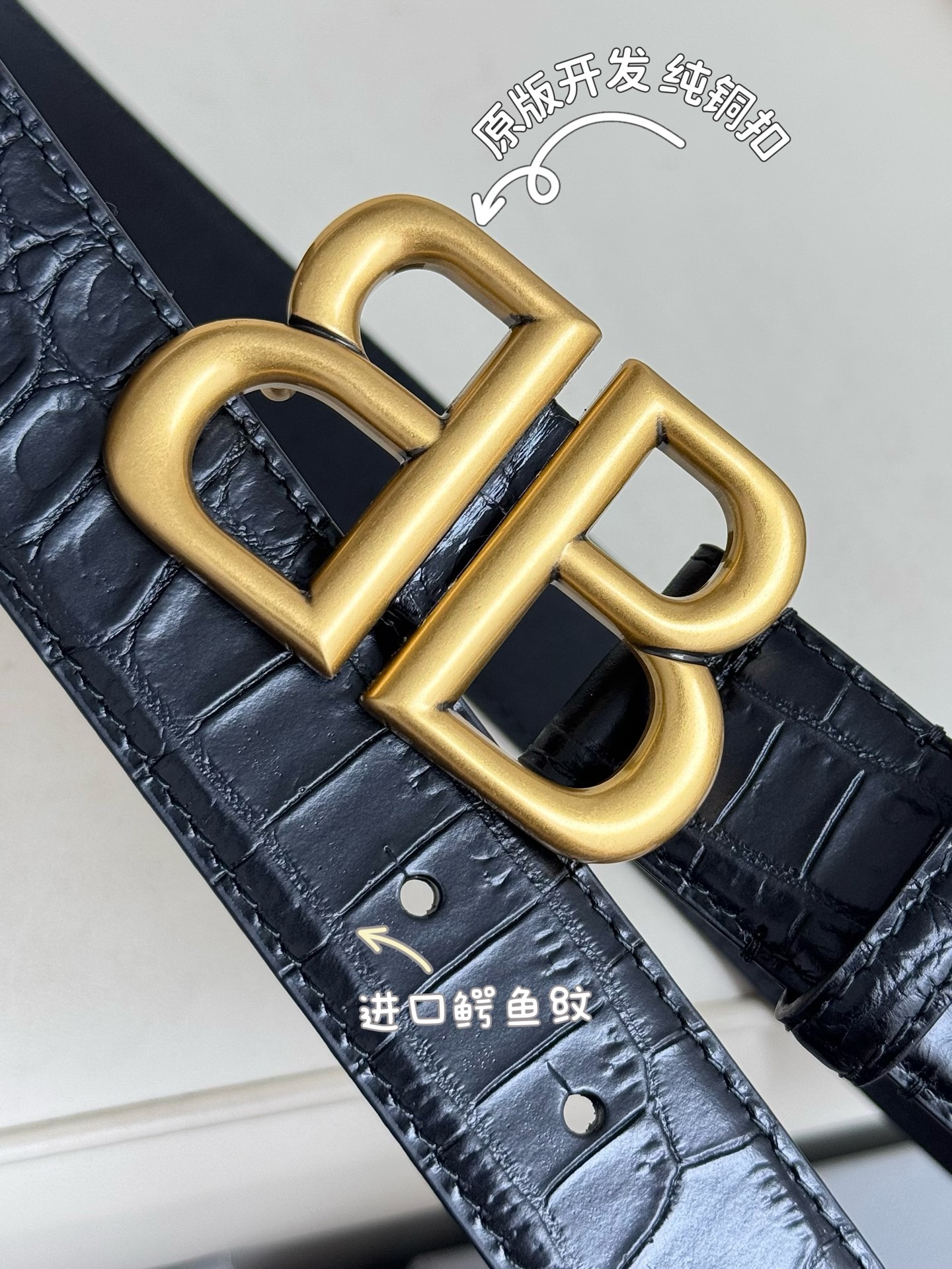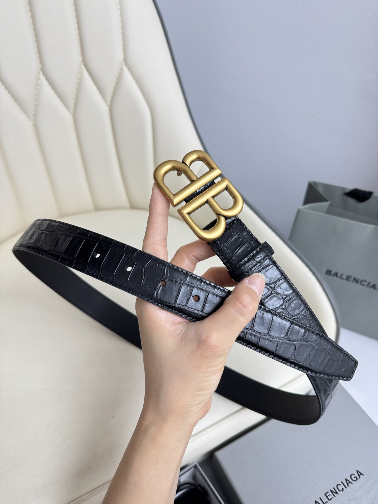 Balenciaga 3.0cm width. French luxury brand, influential in fashion. Urban style, imported calfskin, brass hardware. Versatile essential.