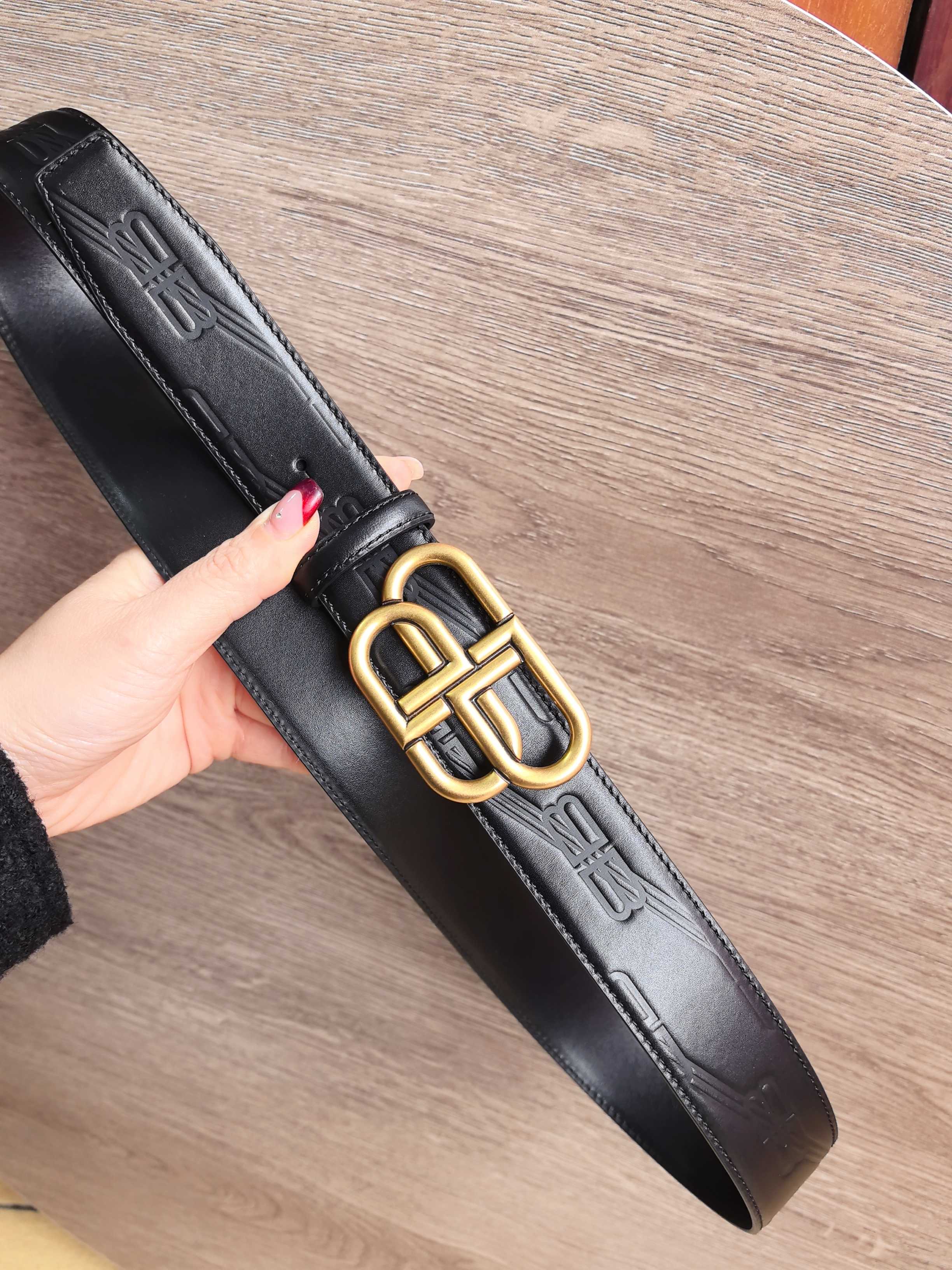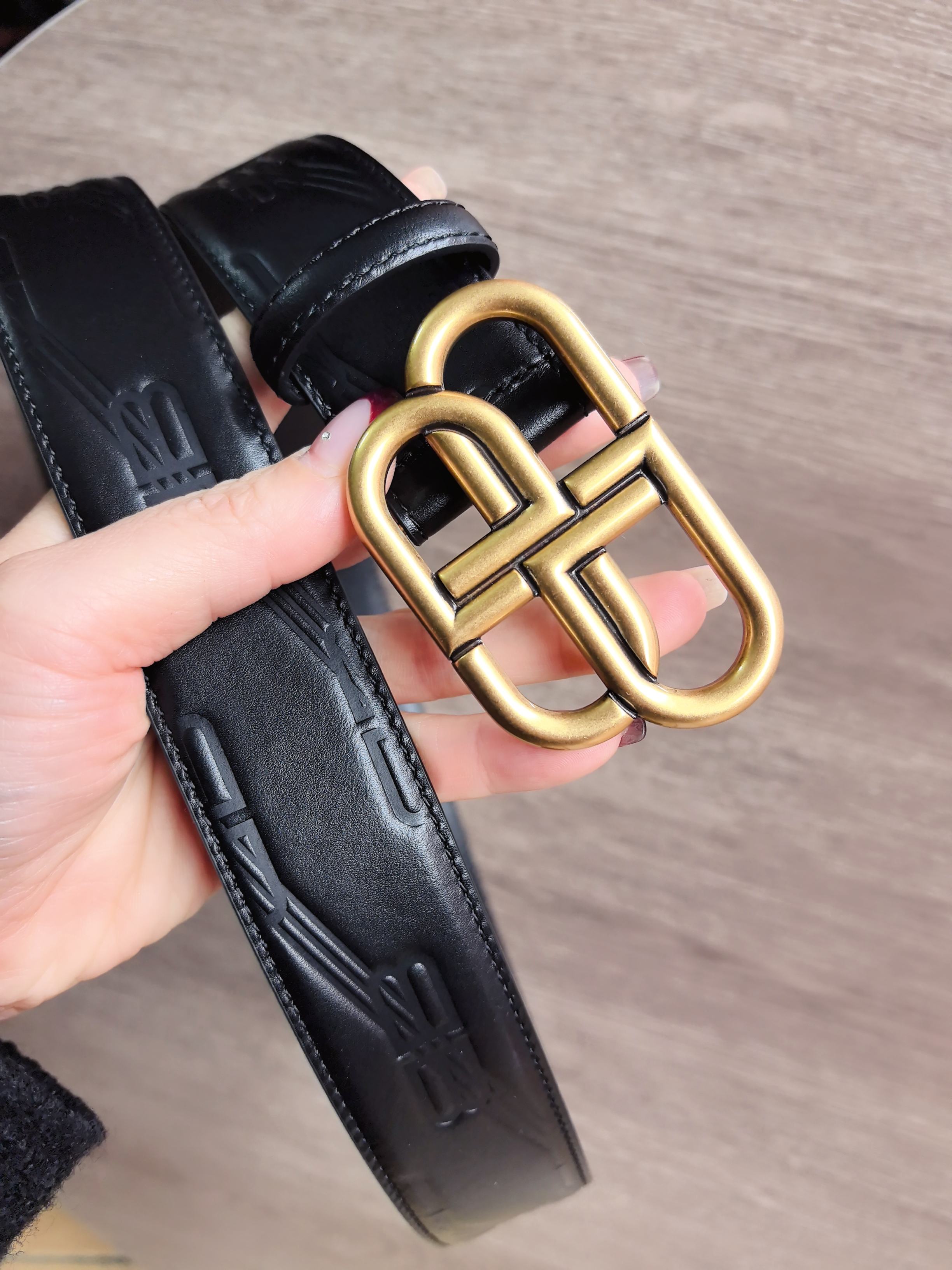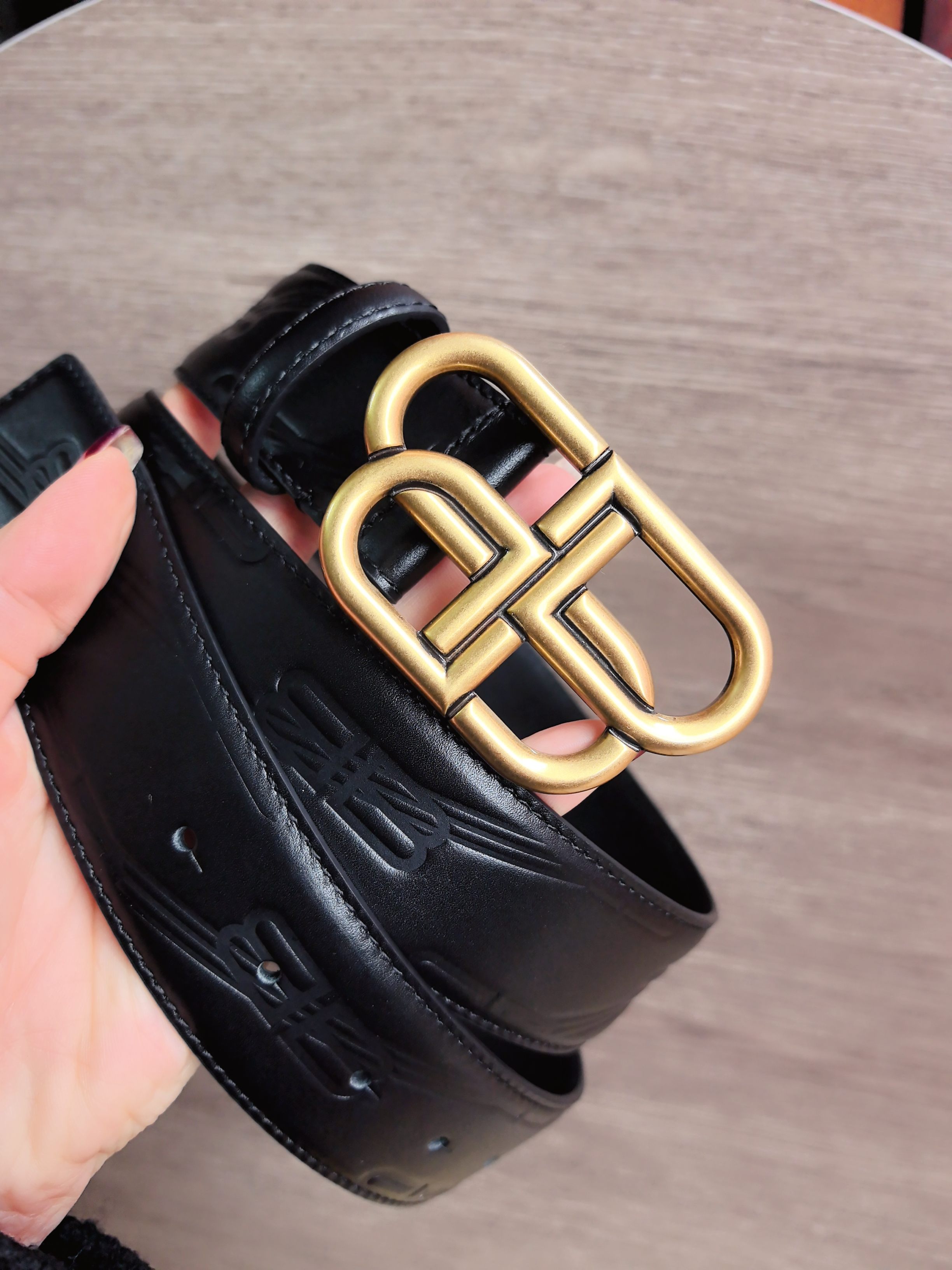 Balenciaga, 4cm width, top grain calfskin with embossed logo, vintage metal hardware.
