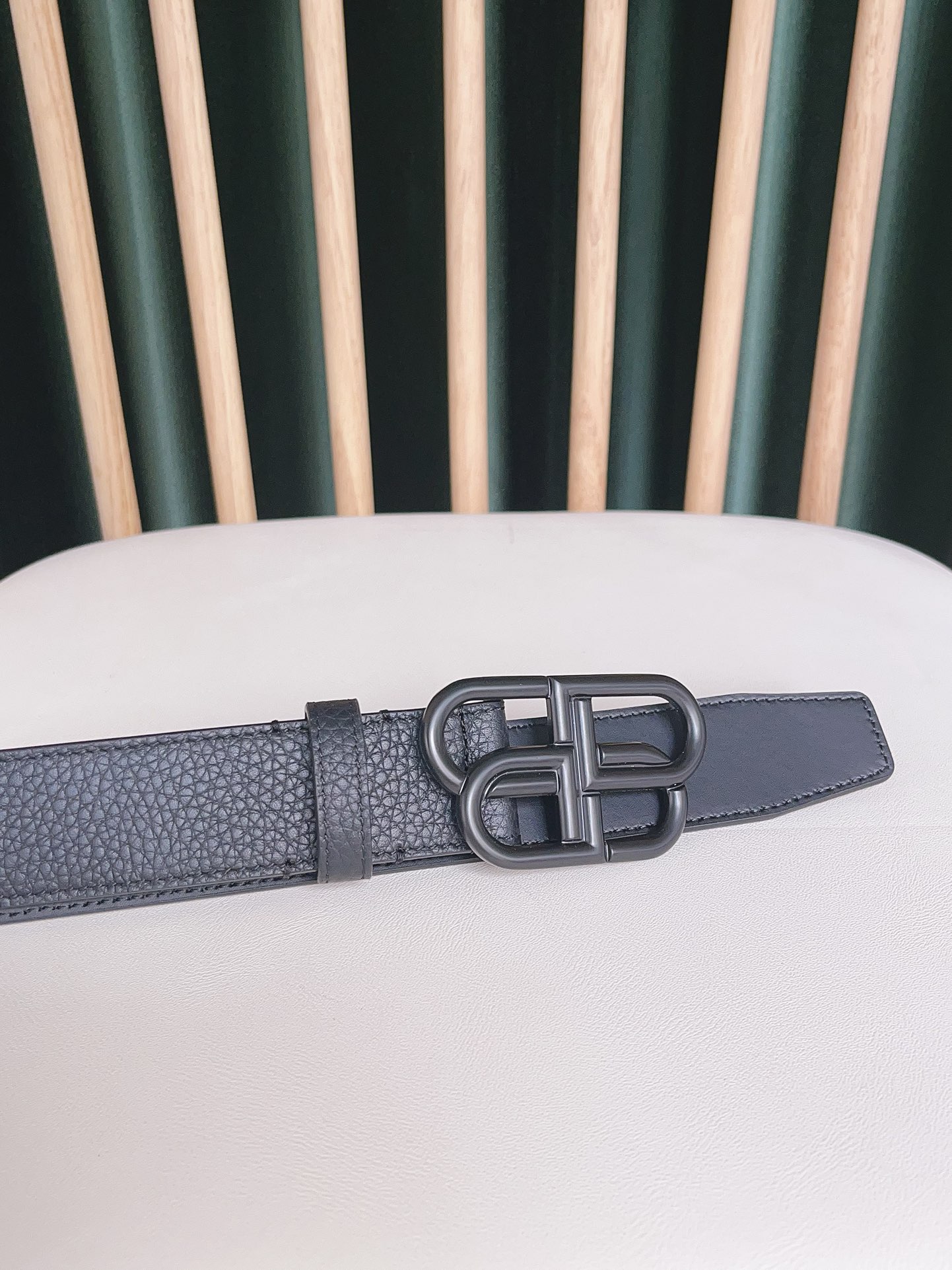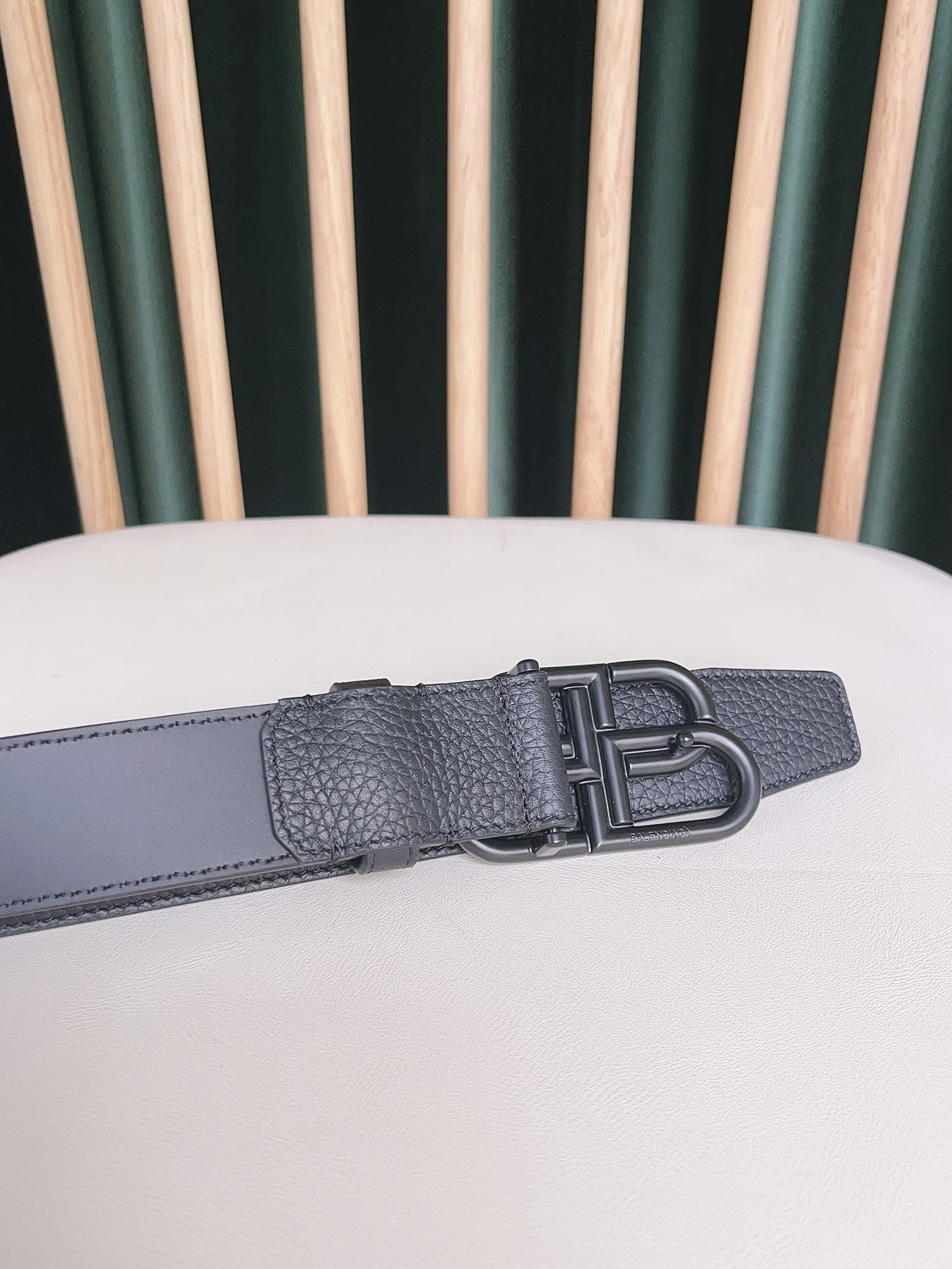 BALENCIAGA Paris世家 Black Crocodile Pattern Embossed Calfskin Belt Specification 35mm with BB Retro Hardware Buckle