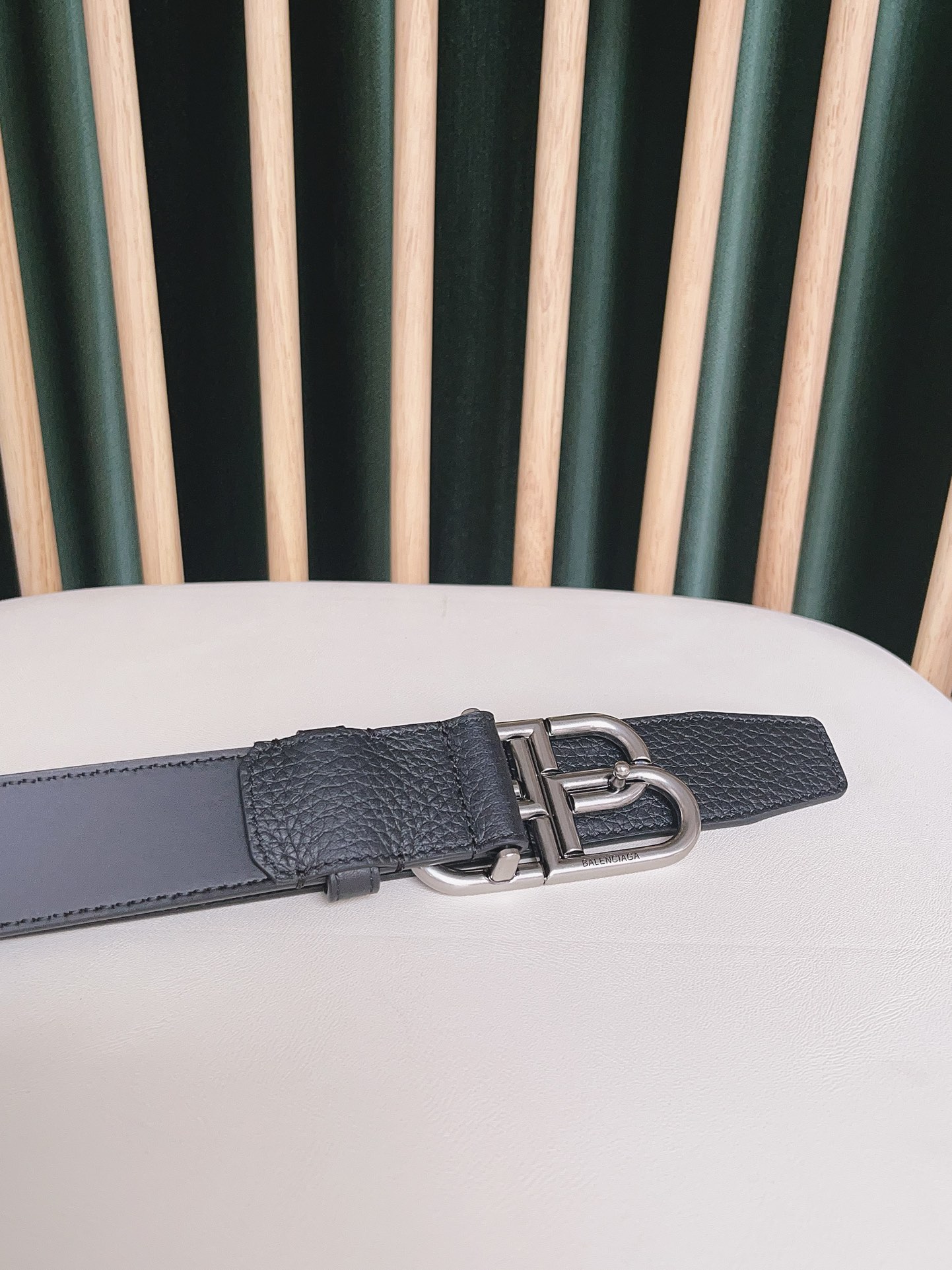 BALENCIAGA Paris世家 Black Crocodile Pattern Embossed Calfskin Belt Specification 35mm with BB Retro Hardware Buckle