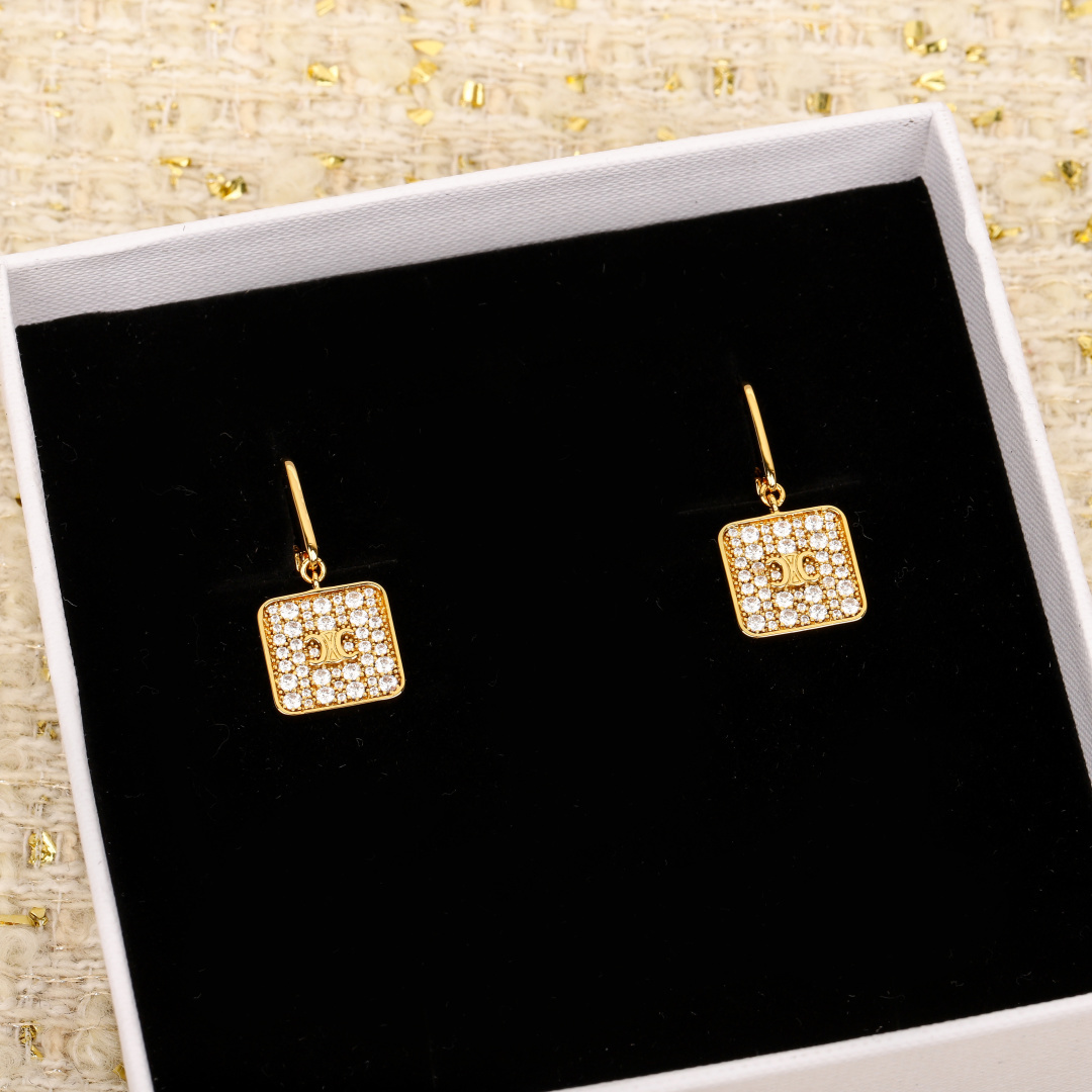 Original Title: [Celine] [C Square Full Diamond Triomphe Ear Hook] Our refined version, love it! A series that catches the eye at first sight, a favorite among influencers! The hardware accessories are all engraved with logos carved by CNC precision engraving machines, very clear and visible! 👍🏻 Must get the whole set, cool, sweet, vintage, elegant—it masters any style perfectly! A series that can be worn all year round, the full diamond design is bling-bling, simply stunning, absolutely mesmerizing, no words needed, haha 😄