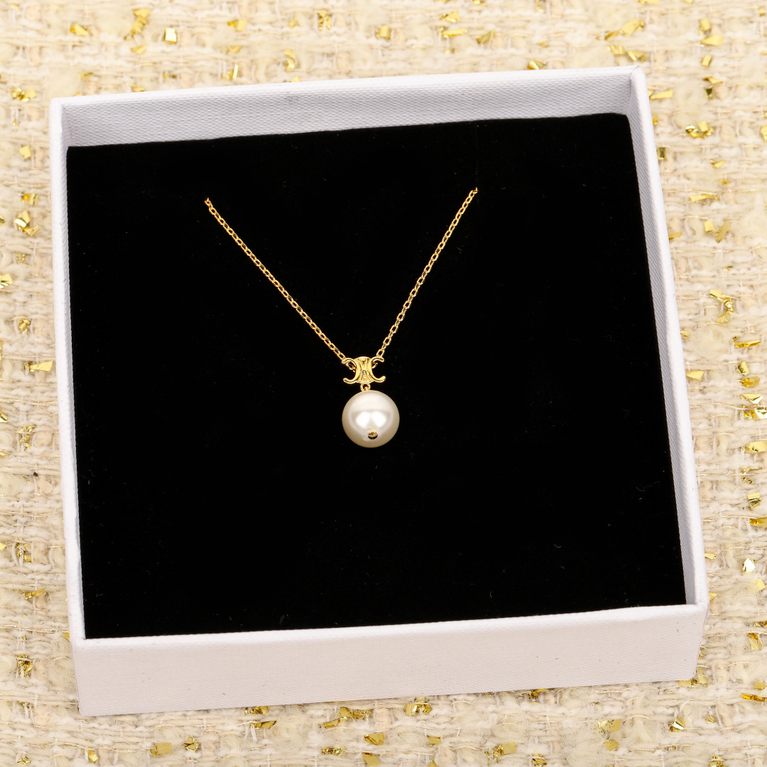 [Celine][C Triumph Arch Pearl Necklace] Simple, durable, and versatile! All components, the hardware circle and the Triumph arch are separate pieces, two independent parts assembled into one! CNC precision carving machine work, no sand holes at all, very smooth, flat, and detailed, the text is very clear and sharp! Consistent with authentic brass material, wearing the necklace and earrings together is even more perfect. You must get the whole set—cool, sweet, vintage, elegant, it masters any style perfectly, a timeless piece for all seasons.