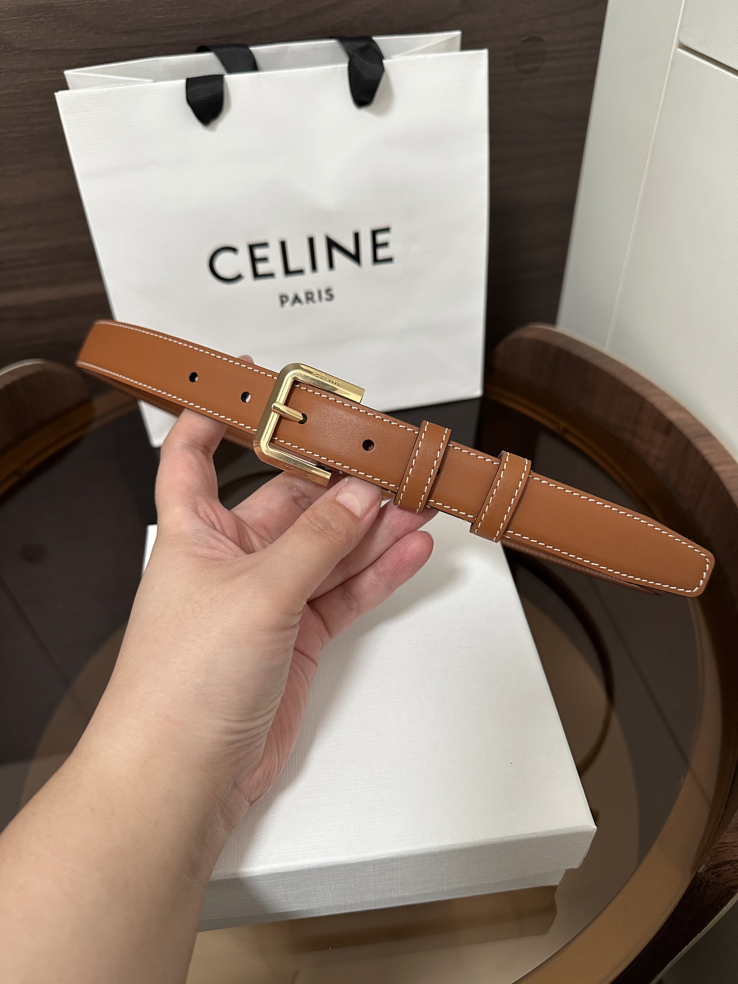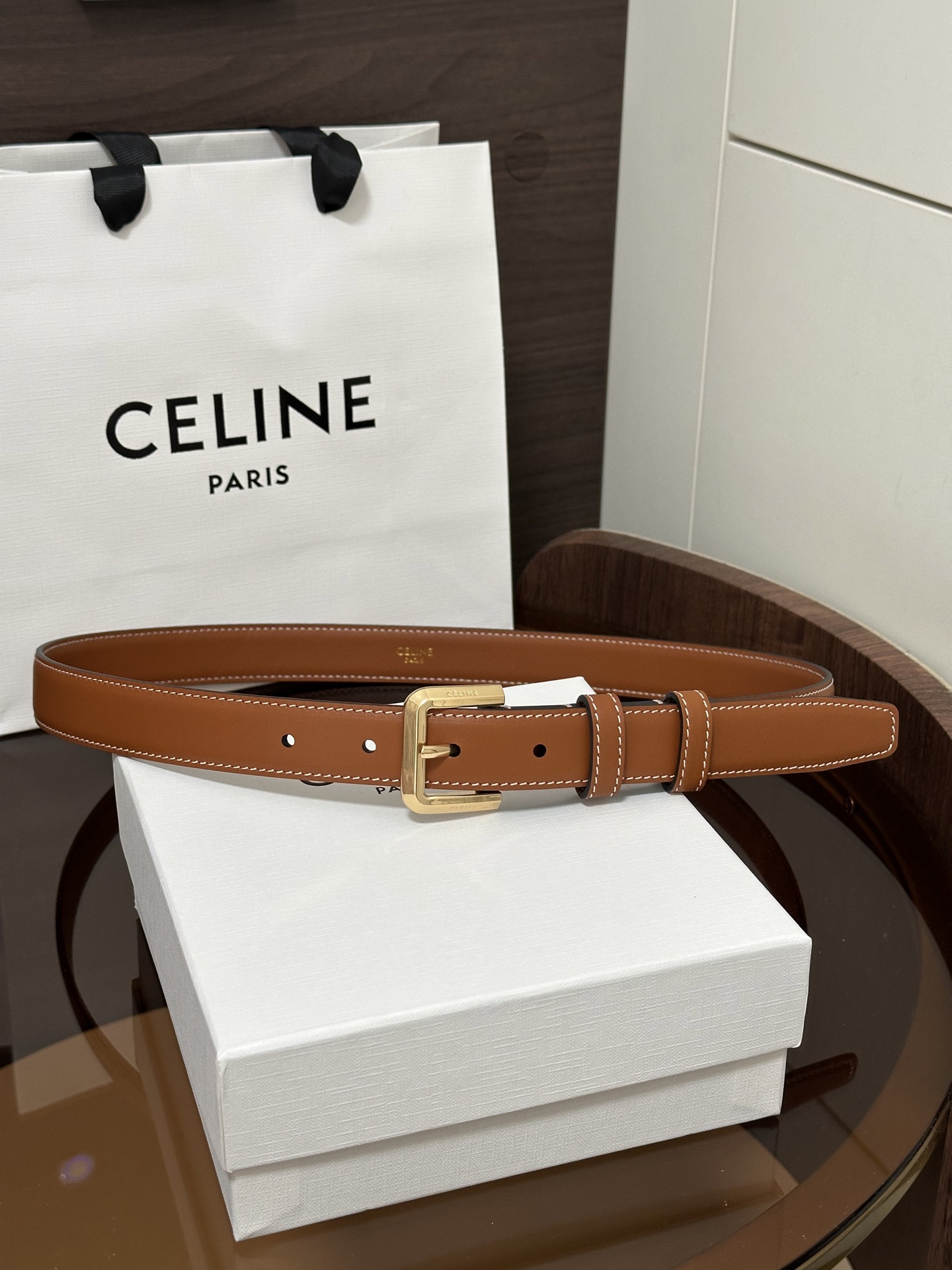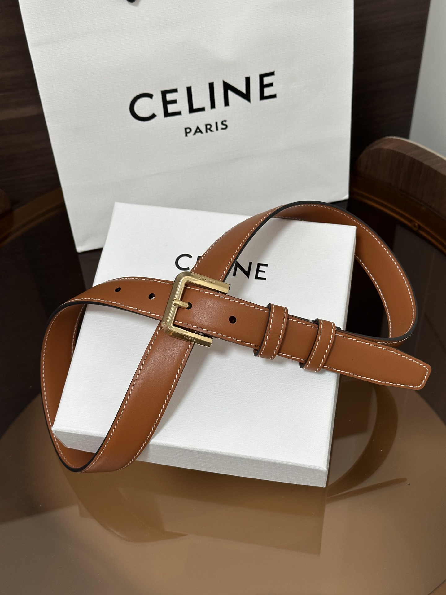 CÉLINE Western Smooth Calfskin Belt with Gold-Tone Metal Hardware and Square Buckle, Width: 2.5cm