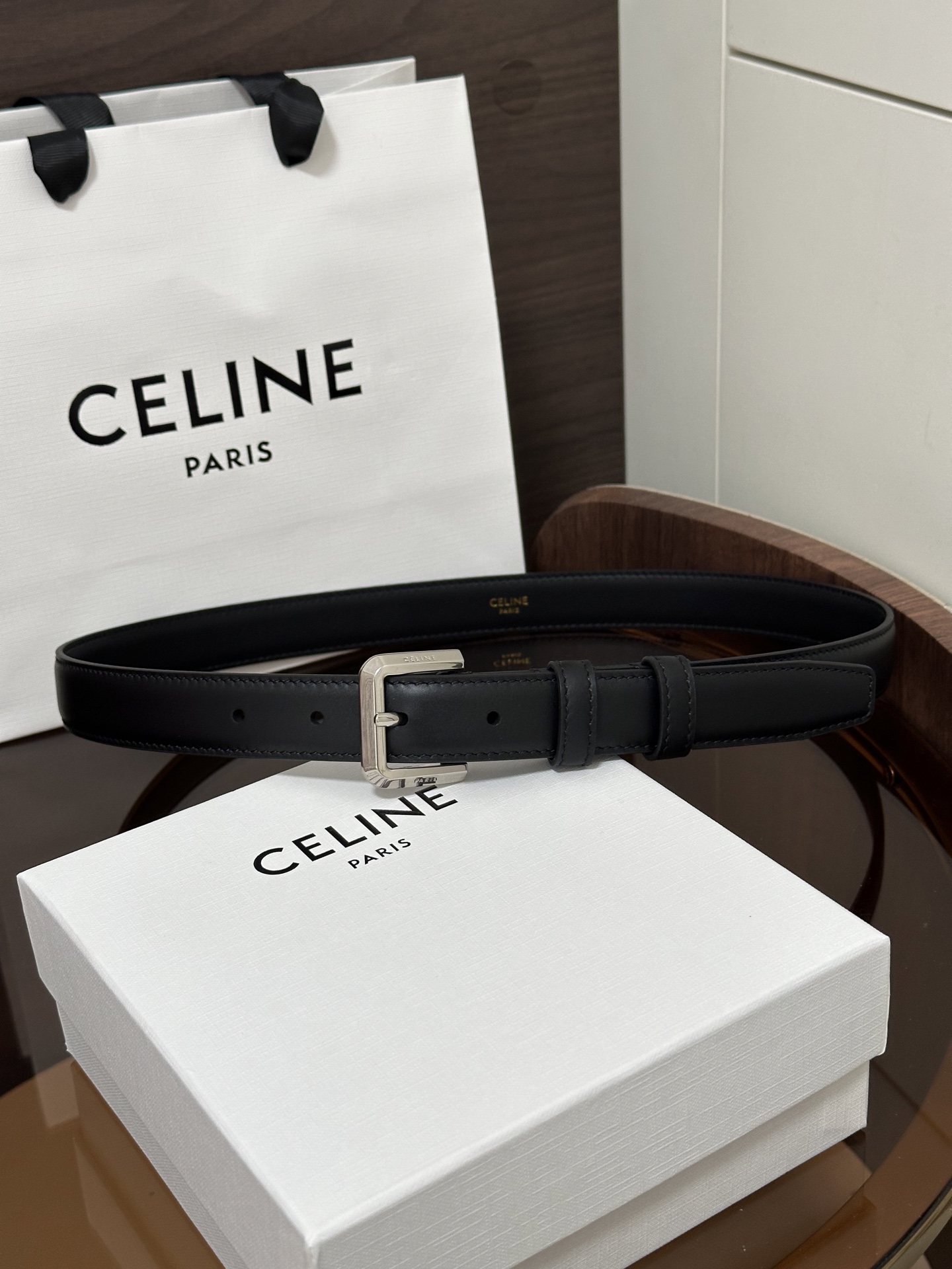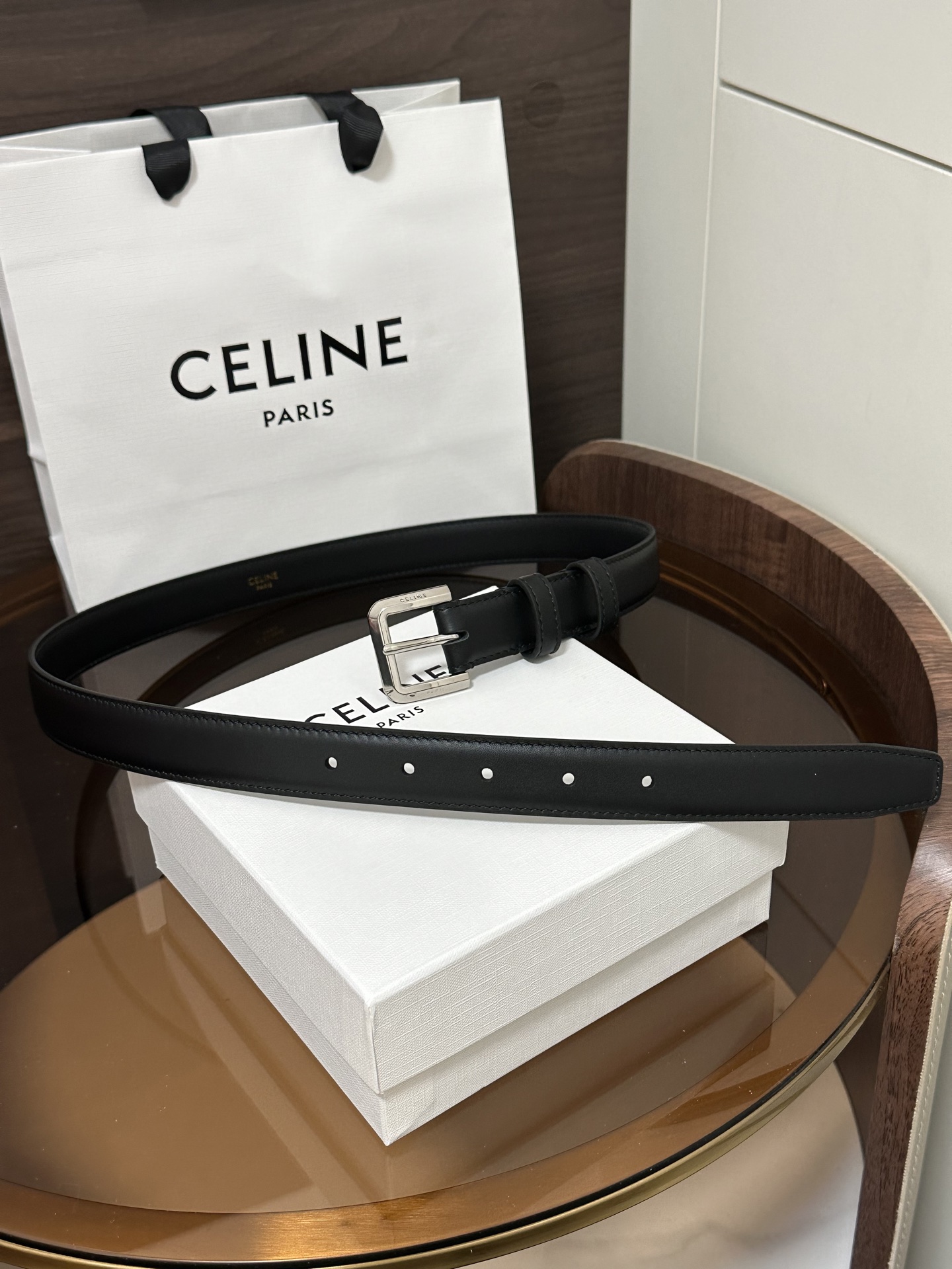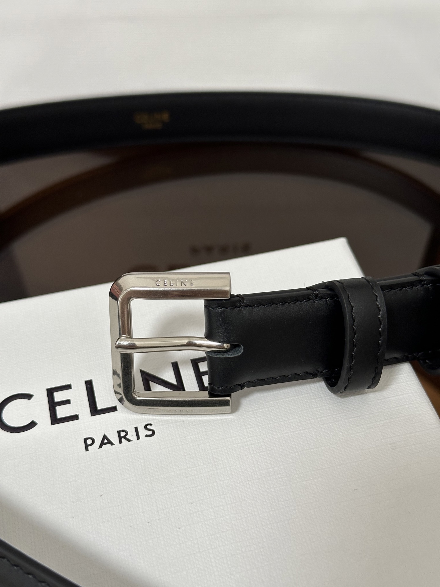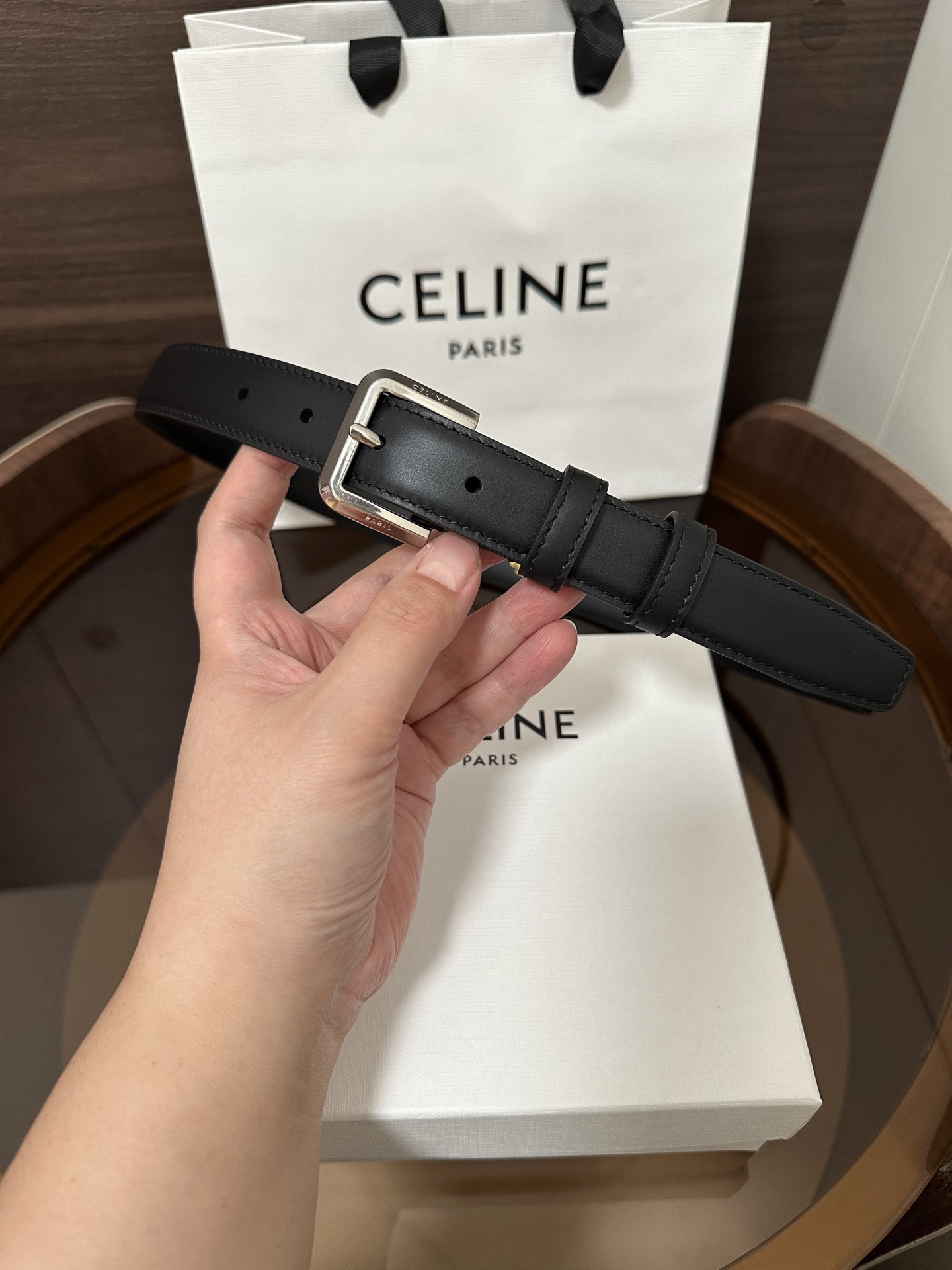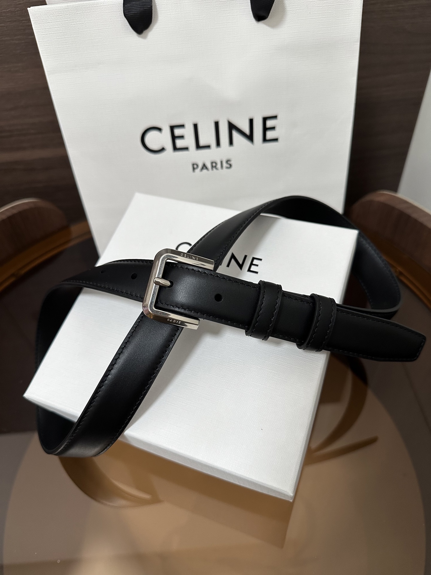 CÉLINE Western Smooth Calfskin Belt with Gold Metal Buckle, 2.5cm Width.