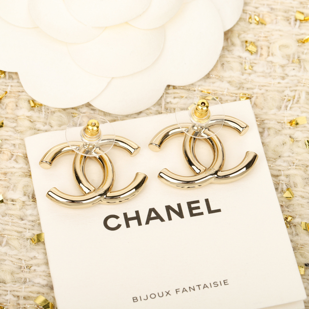 [Chanel] 25P New Arrival [Chanel Smooth Surface Double C Letter Earrings] This season's must-have series! Classic yet unique design, elegant and graceful without losing sweetness, sparkling with exceptional charm. A touch of understated luxury, absolutely the perfect accent to any outfit. Instantly captivating, a heart-fluttering piece you can buy without hesitation! A timeless classic that never goes out of style, made with authentic brass material. Perfect for any daily combination. You deserve to own it!