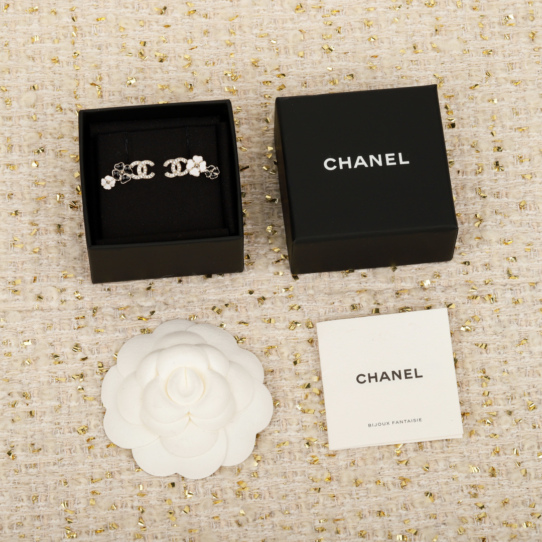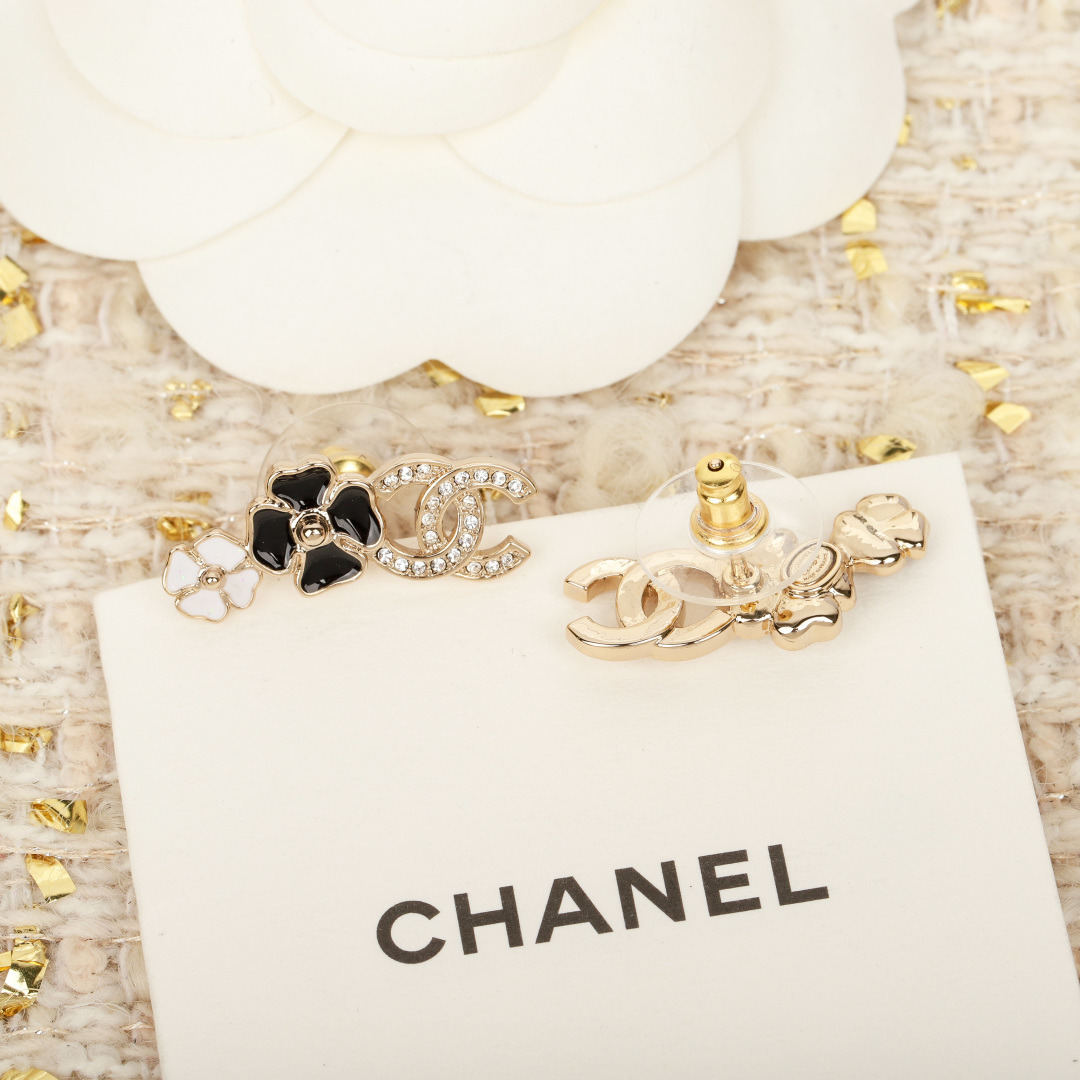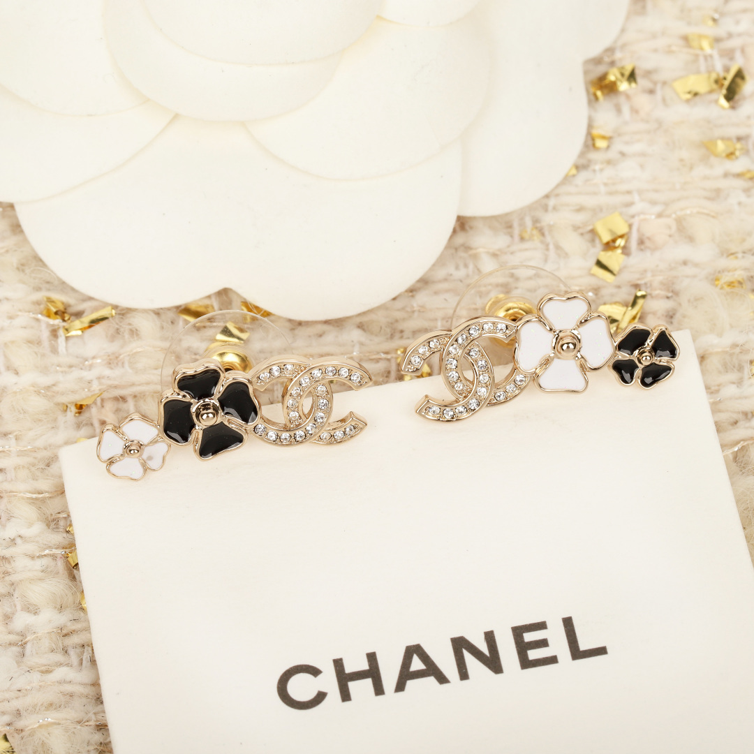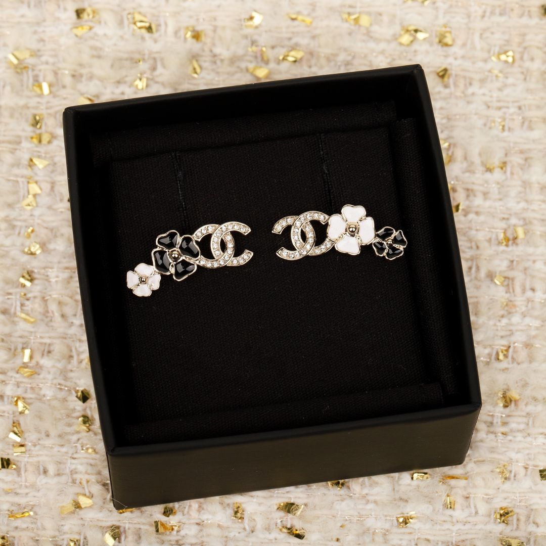 [Chanel][Camellia Double C Earrings] The latest stunning series for spring and summer is here! As always, first come, first served! Extremely beautiful camellia design! Super exquisite and high-end! Black enamel with Swarovski crystal accents, classic and elegant! It's the feeling of heartbeat, keeping it for myself first! The top choice for daily styling, a must-have item you absolutely cannot miss! The classic design is dominated by refinement and retro, with a modern sense of style filling every detail—not loud, but outstanding!