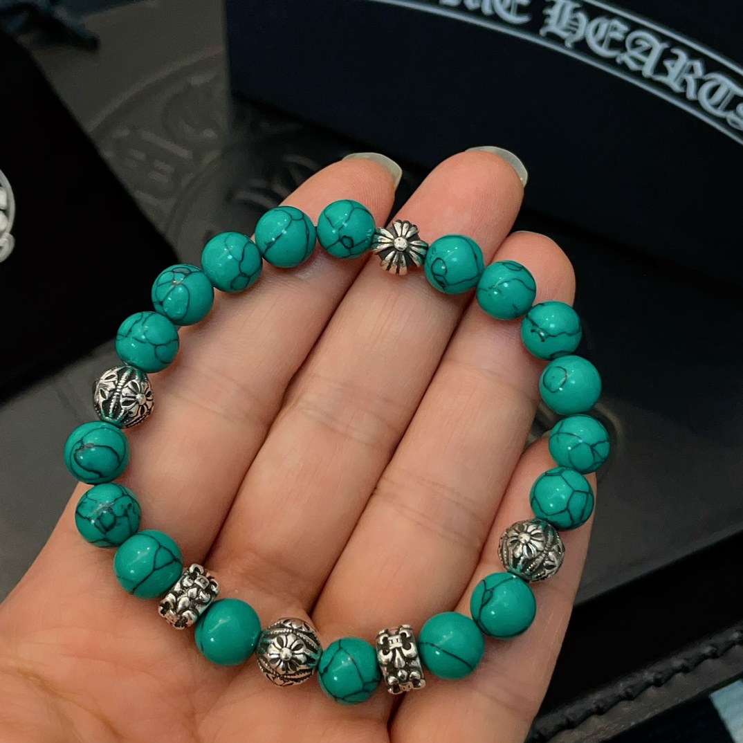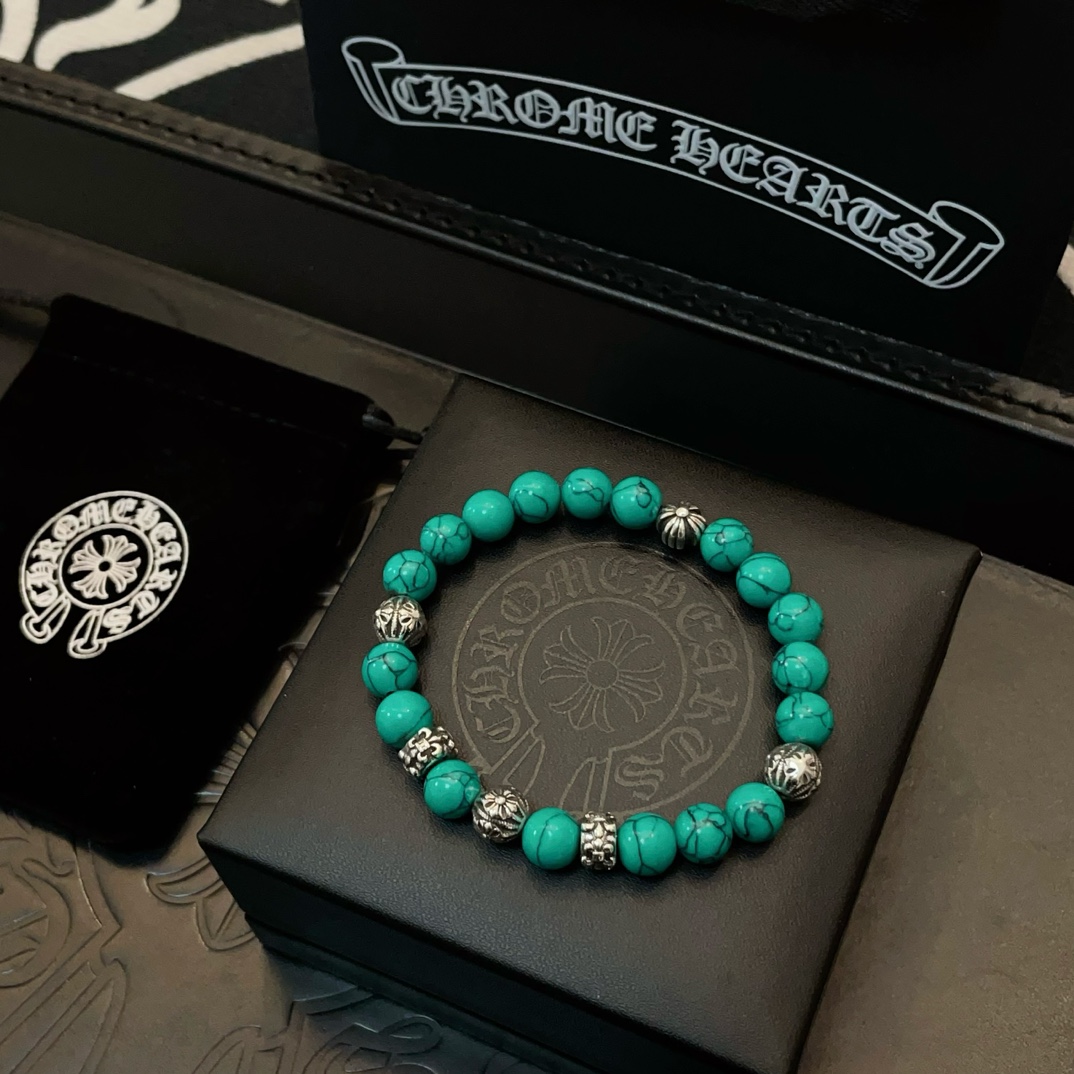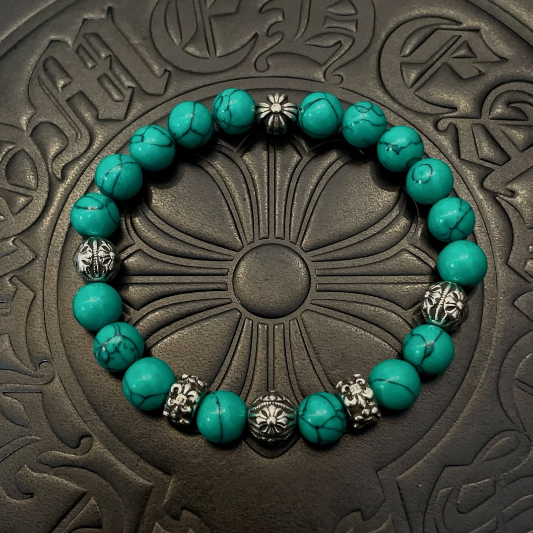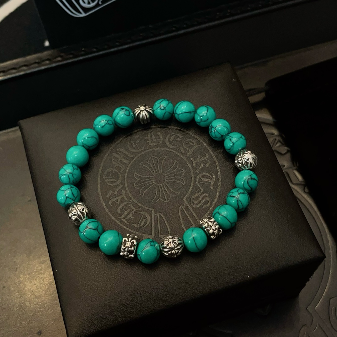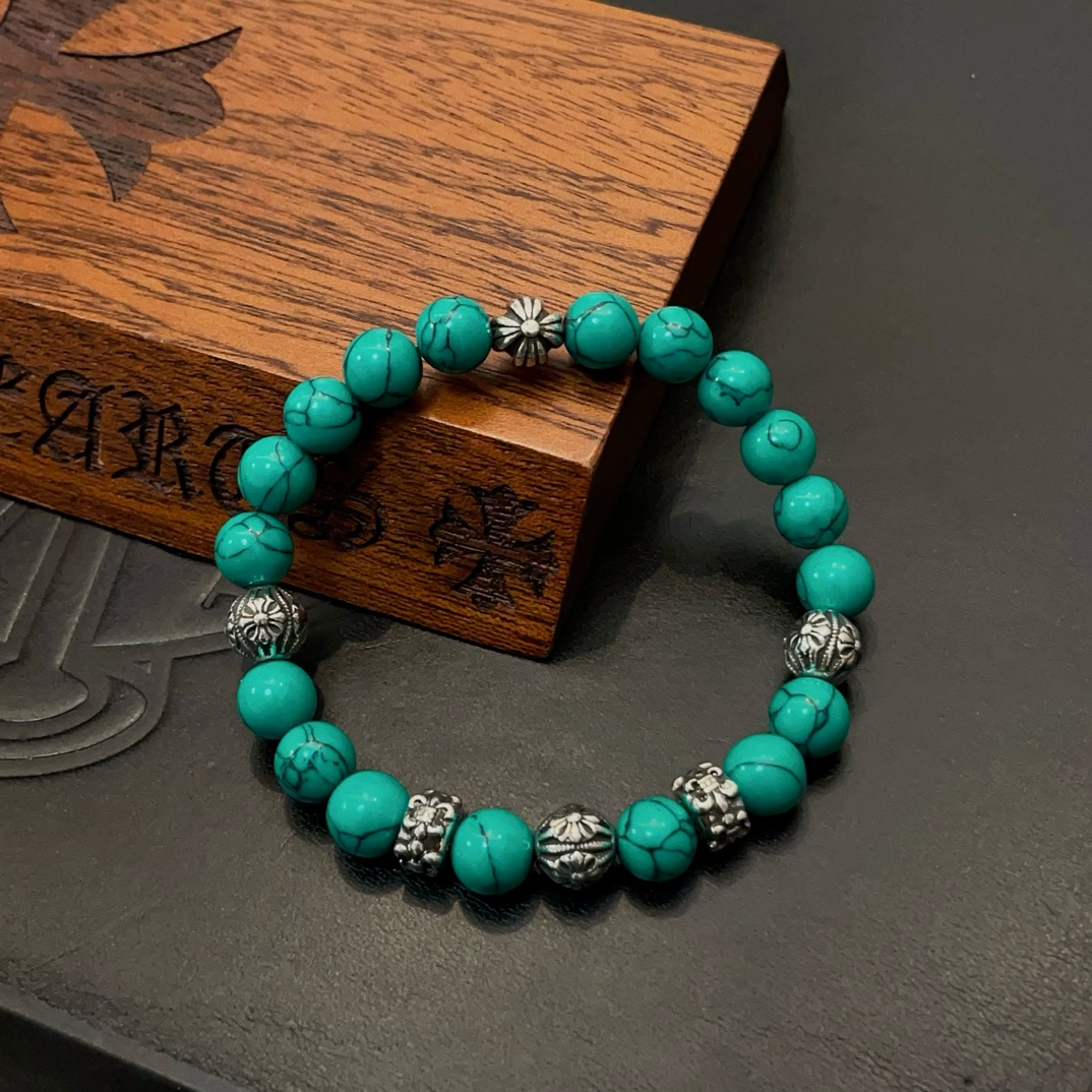 Chrome Hearts alloy bracelet with turquoise, cross design, retro style, high-quality craftsmanship.