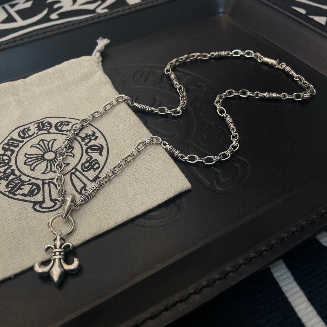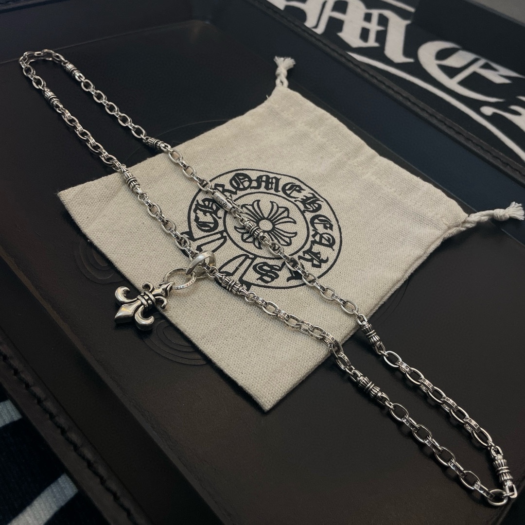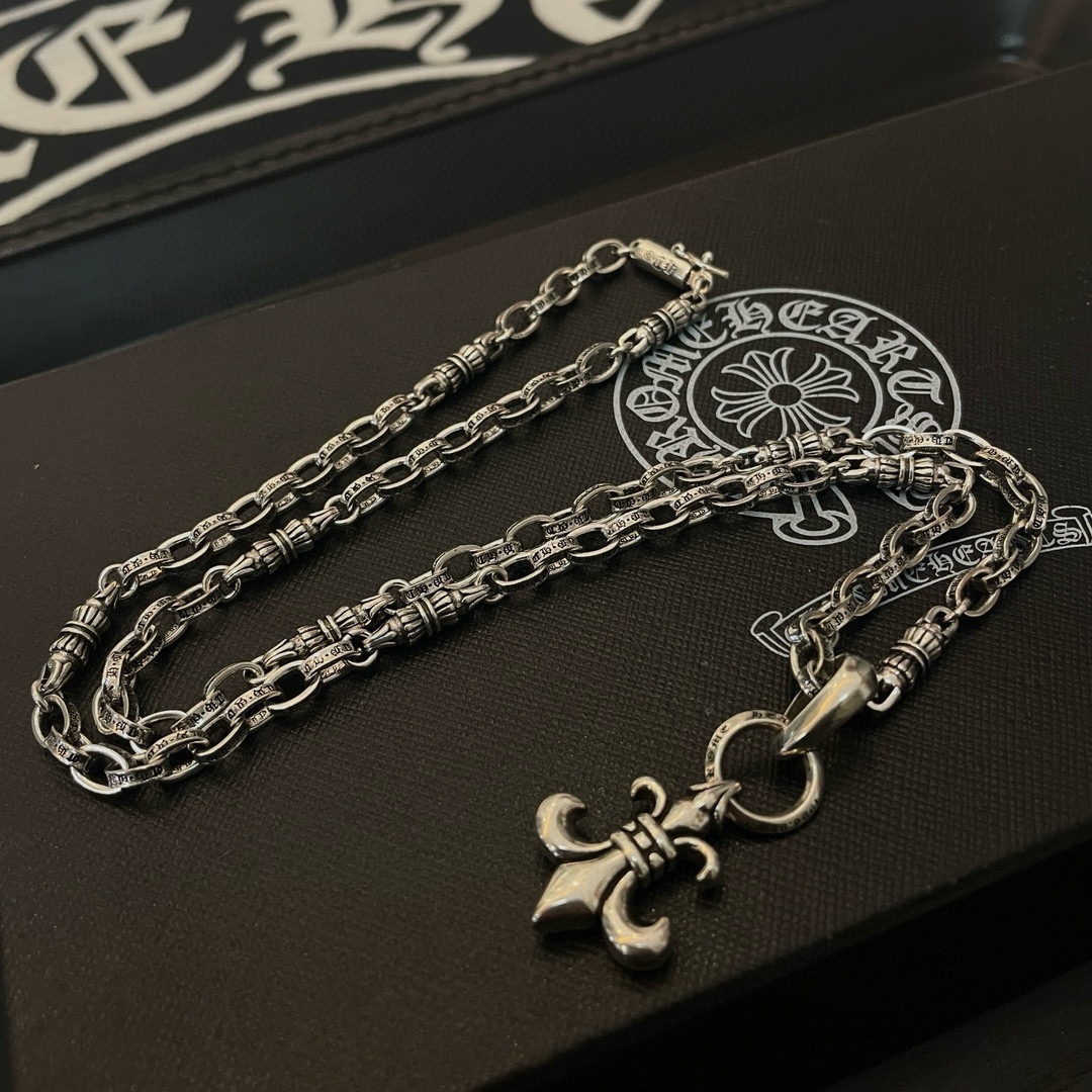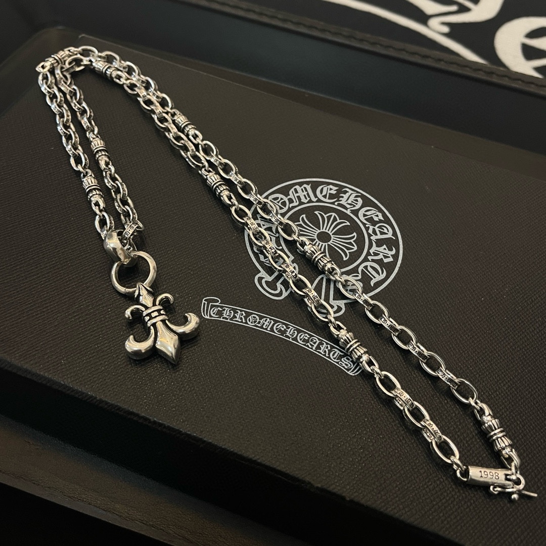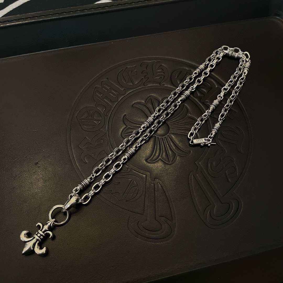 New [Counter Quality] Chrome Hearts Flower Ball Necklace, Scout Flower Pendant. Embossed and concave designs with different pattern styles present a unique look. The cross and scout flower are the essence of Chrome Hearts, making it more enduring. Genuine version of Chrome Hearts, different from ordinary lightweight versions on the market. Matches the quality of the original, check the details of the lettering, retro antique gray oxidation level. Exquisite version!!! Handcrafted ~ Genuine mold opening. Must-have for fashion trends, suitable for both men and women, matching couple's style, official website original version, rock punk Thai silver style, retro elements, versatile and trendy!