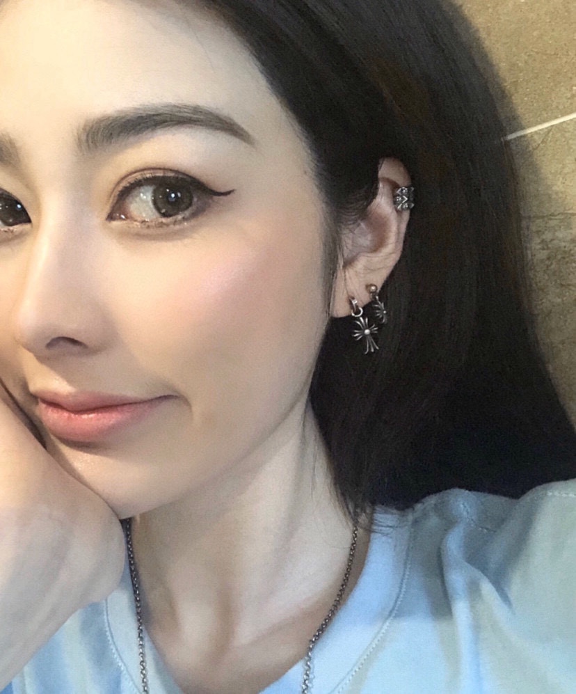 New [Counter Quality] Chrome Hearts Classic Retro Cross Earrings. Embossed design with different pattern styles, presenting a unique look. The cross and scout flower are the symbols of Chrome Hearts, making it more enduring. Genuine replica Chrome Hearts necklace. Different from ordinary lightweight versions on the market, it matches the quality of the original. Check the engraving details and the level of retro gray oxidation. Precision version!!! Handcrafted ~ Genuine mold opening. A must-have for fashion trends, suitable for both men and women. Couple's matching style, official website original version. Rock punk Thai silver style, retro elements, trendy and versatile!