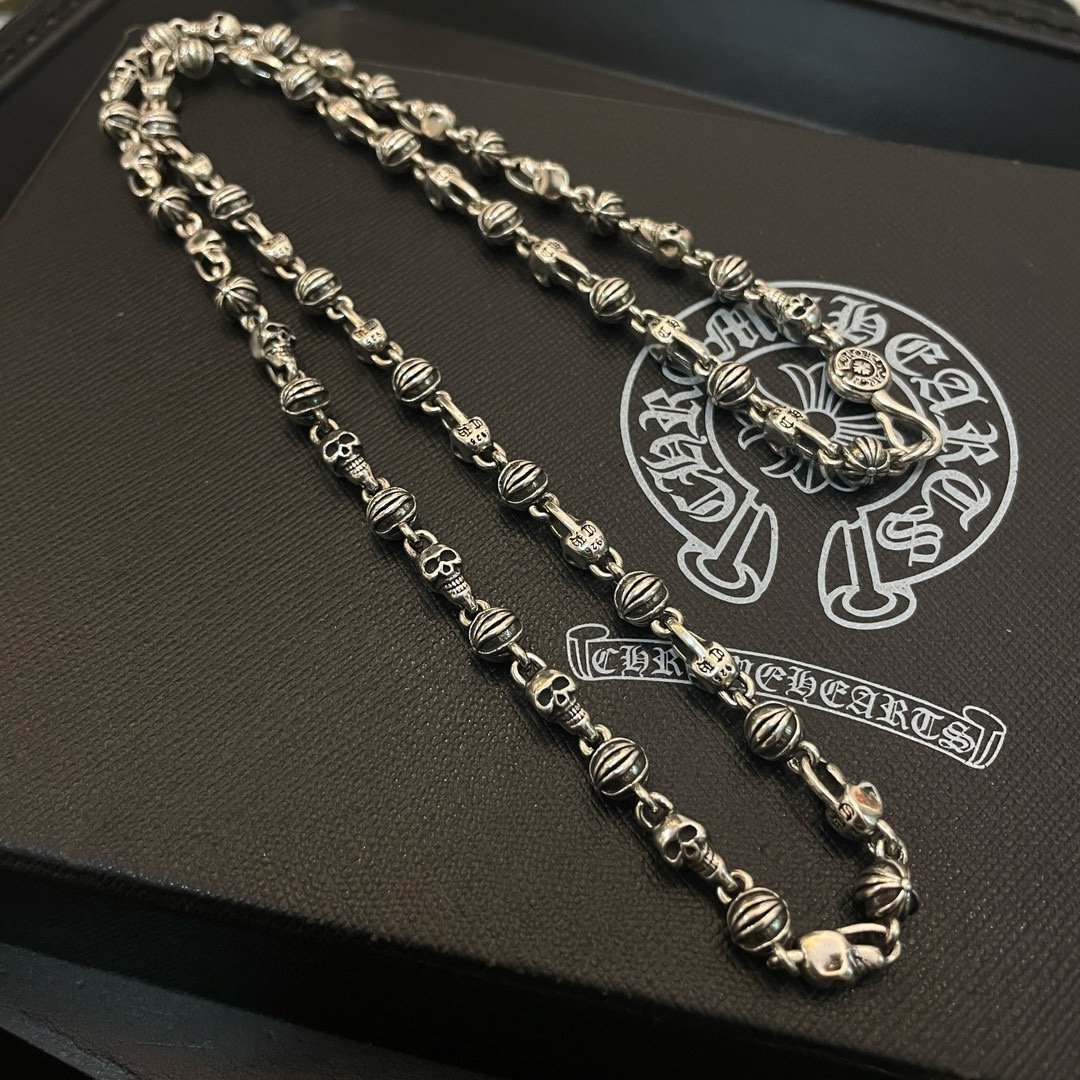 New [Counter Quality] Chrome Hearts Classic Retro Cross Flower Bead Necklace Popular on Kuaishou/Ins/Xiaohongshu Embossed Design Different Pattern Design Styles Present a Unique Look Cross Scout Flower is the Signature of Chrome Hearts Hence More Enduring Authentic Version Chrome Hearts Different from Ordinary Light Versions on the Market Aligned Version Benchmark Quality Check Character Imprint Details Retro Antiqued Gray Oxidation Level. Precision Version!!! Handcrafted ~ Authentic Mold Opening Essential for Fashion Trends Can Be Worn by Both Men and Women Matching Couple Set Official Website Original Version Rock Punk Thai Silver Style Retro Elements Versatile Fashion!