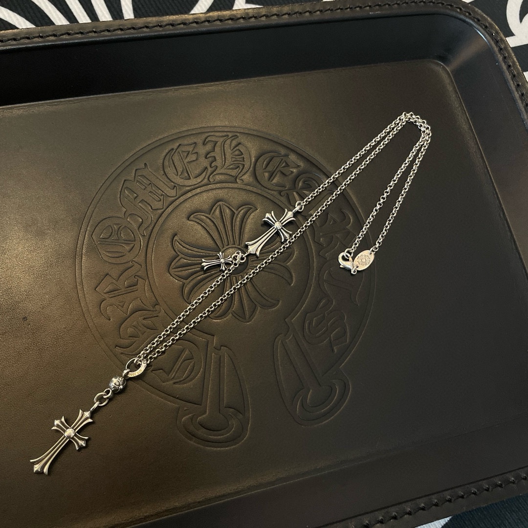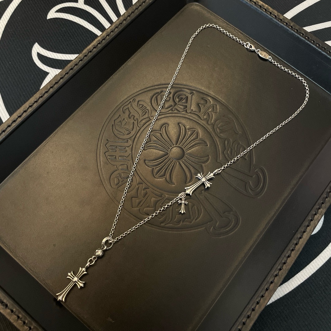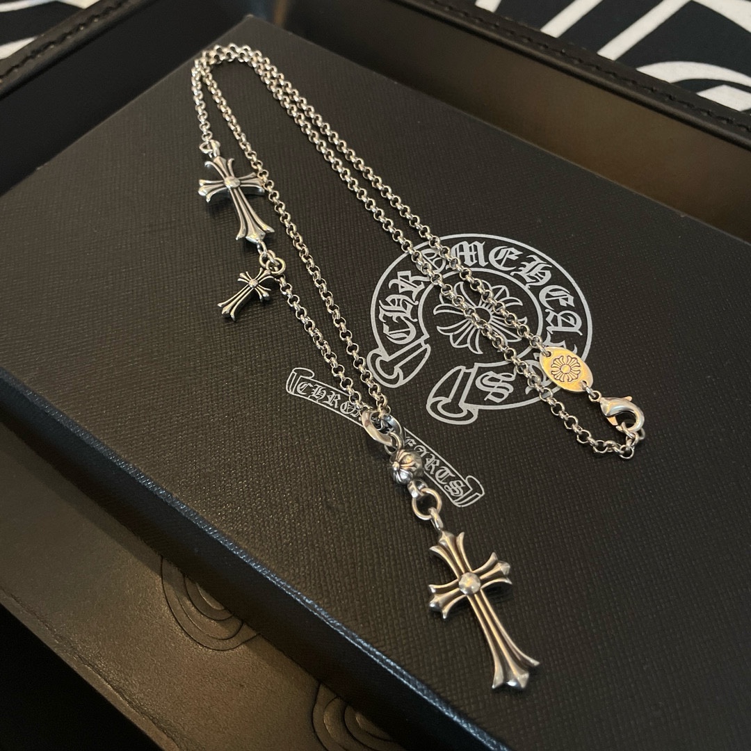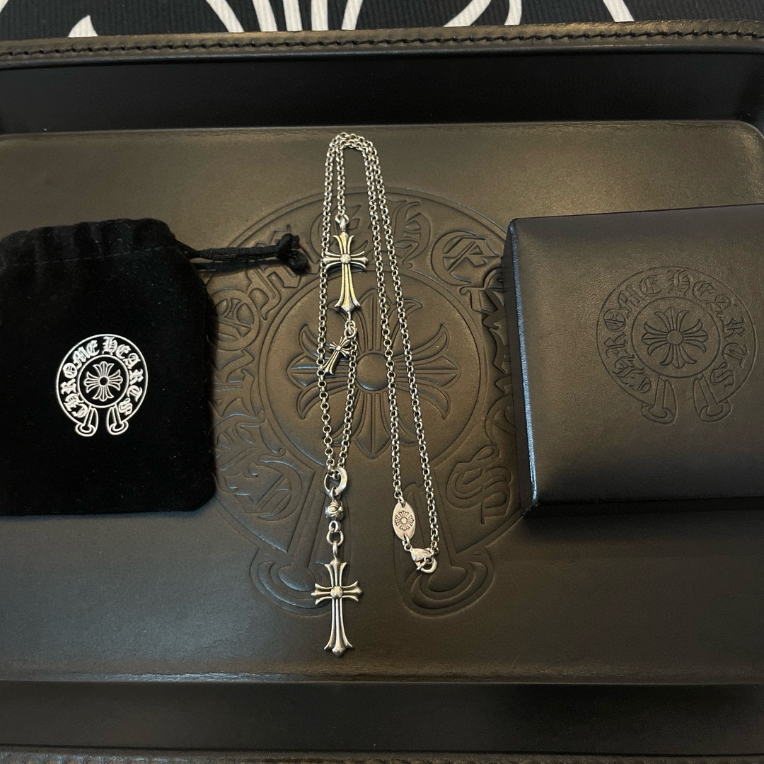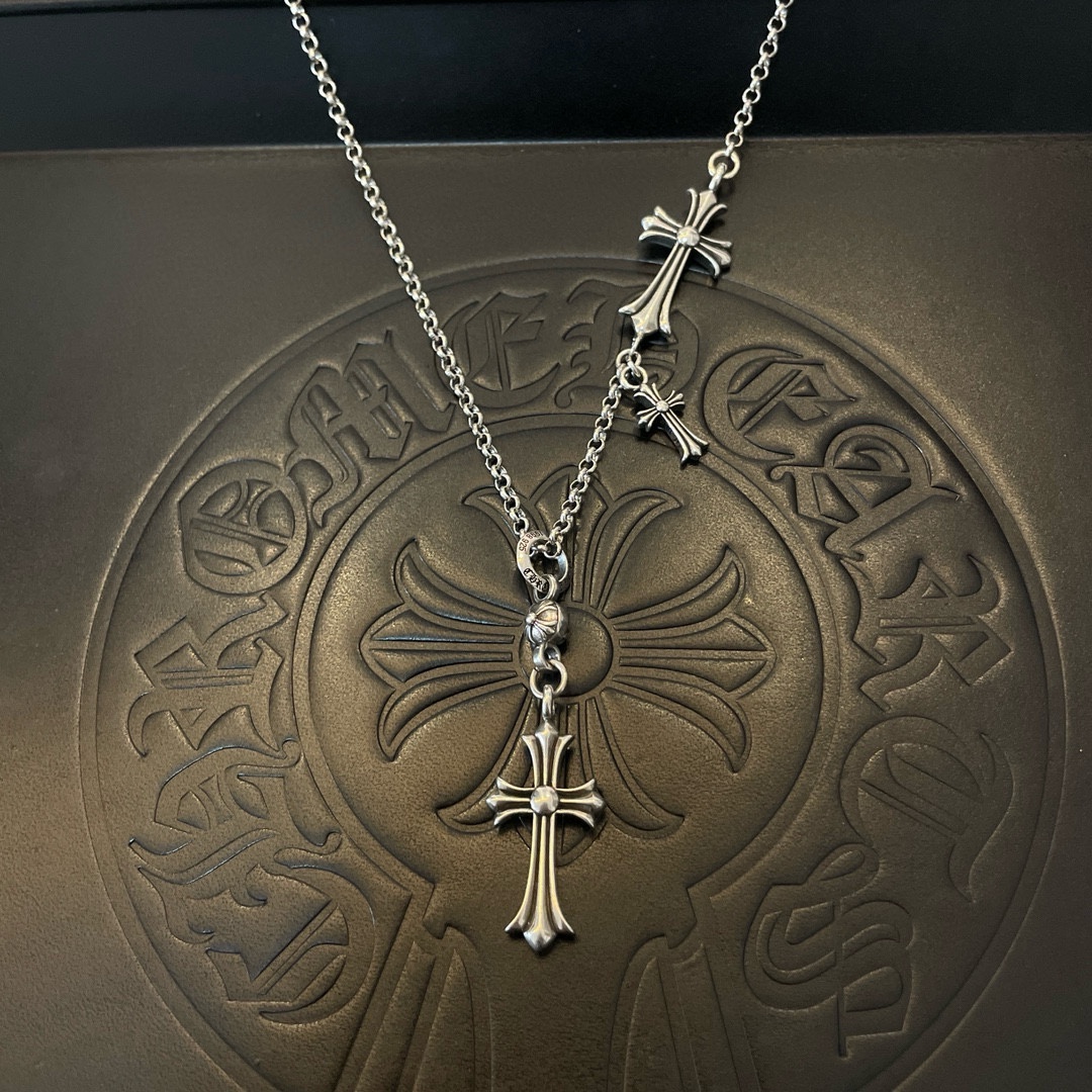 Chrome Hearts cross pendant necklace, classic retro design with unique patterns, distinguished craftsmanship, vintage finish.
