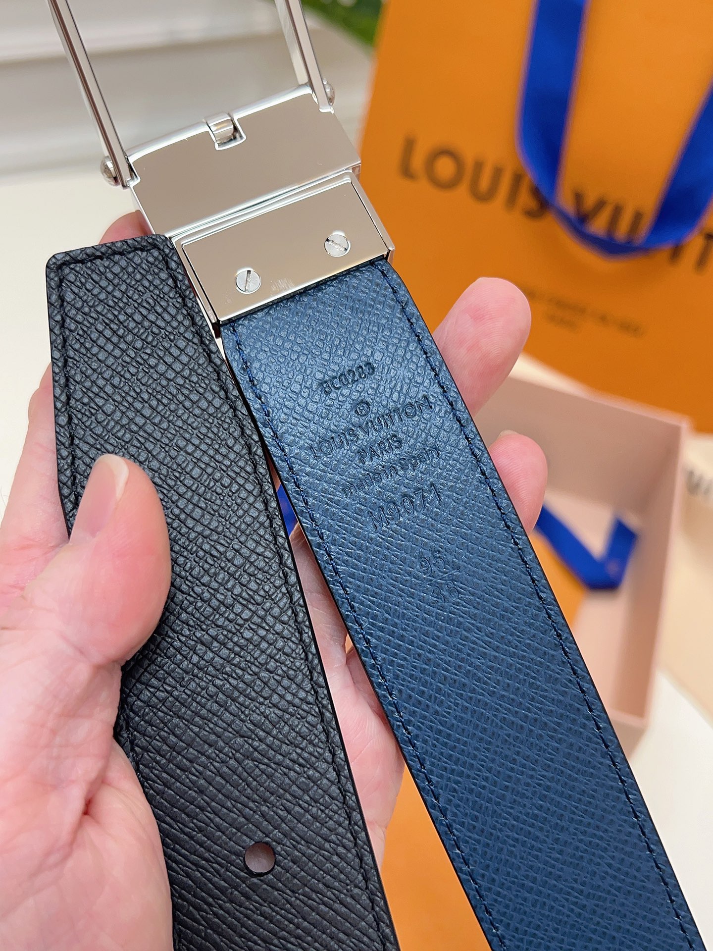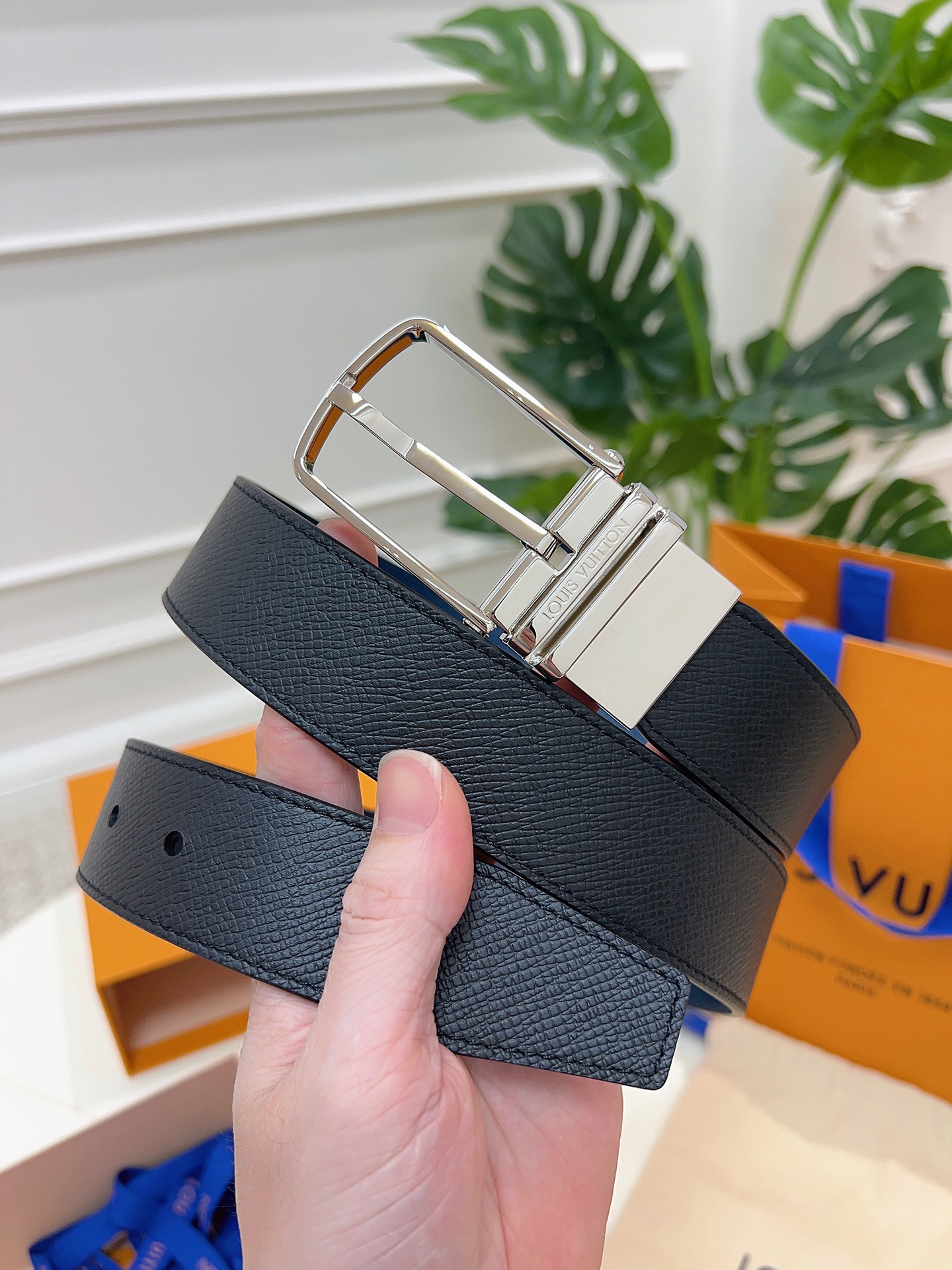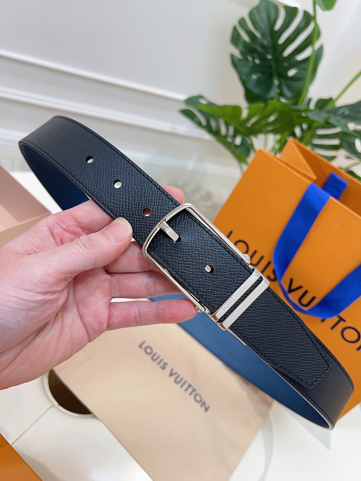 Classic LV belt with full texture, sleek metal buckle. Paired with suit pants for a sharp look, with jeans for a casual style, easily mastering a fashionable feel, it's a standout piece in your outfit. Purchased version