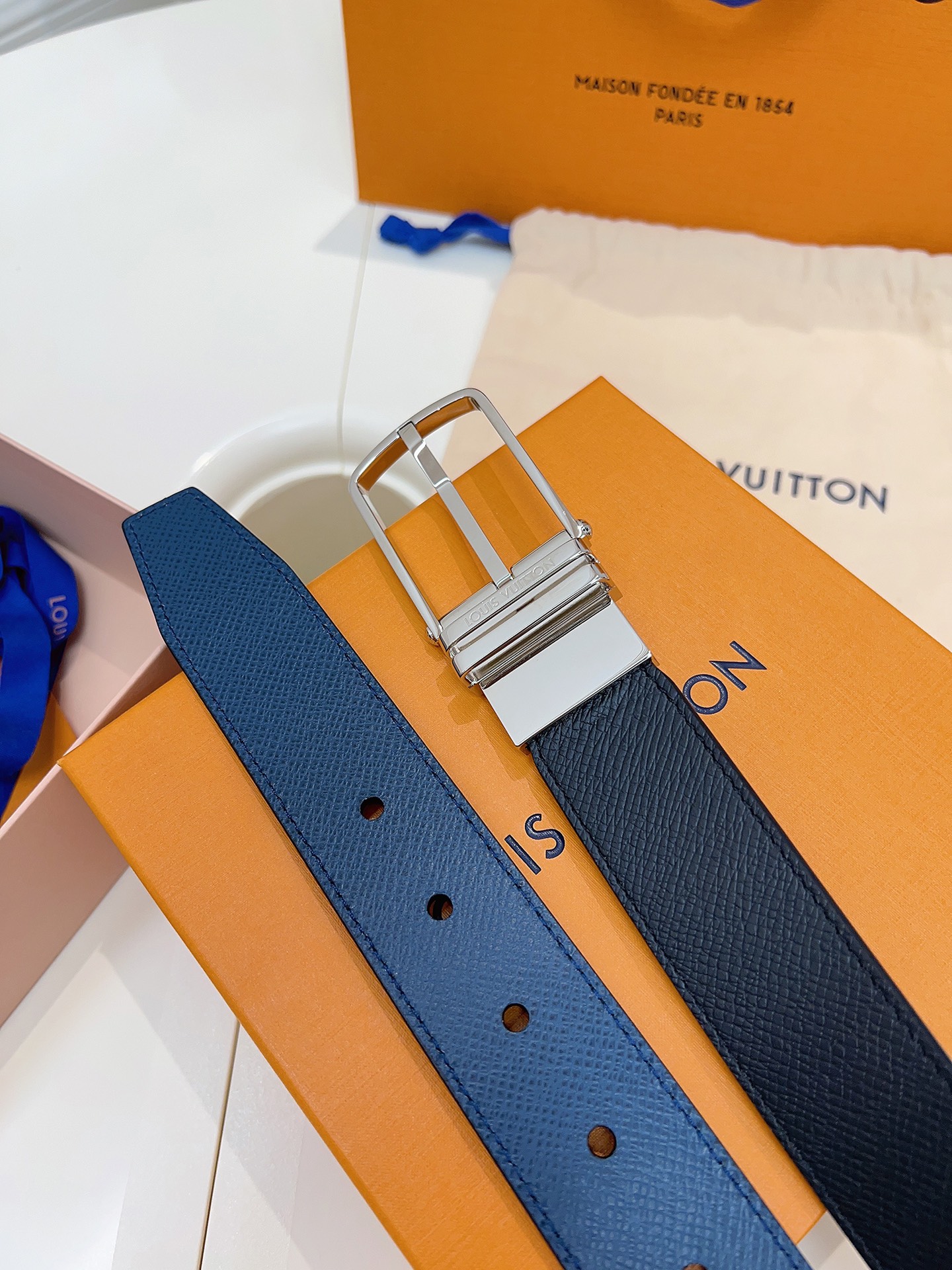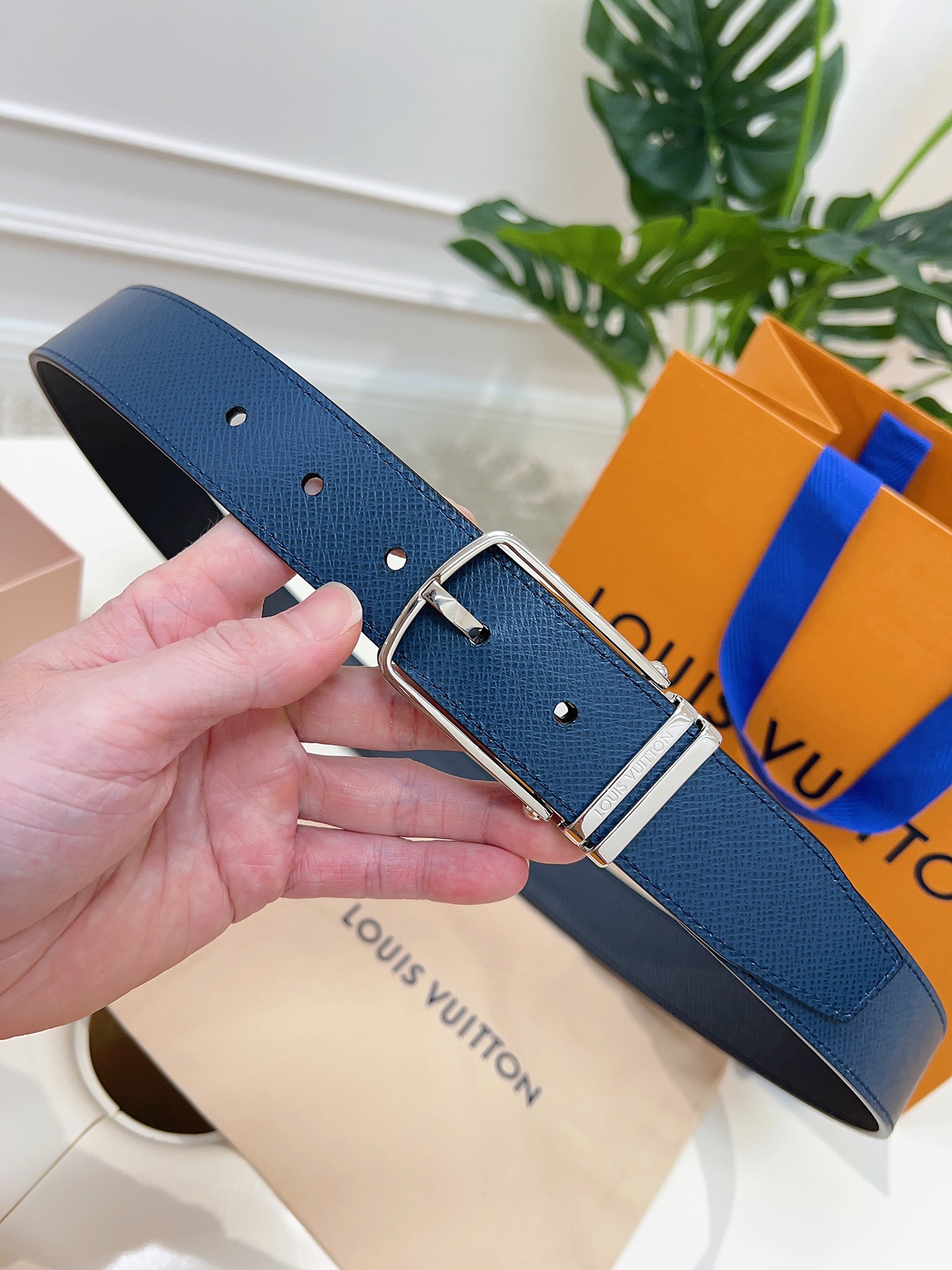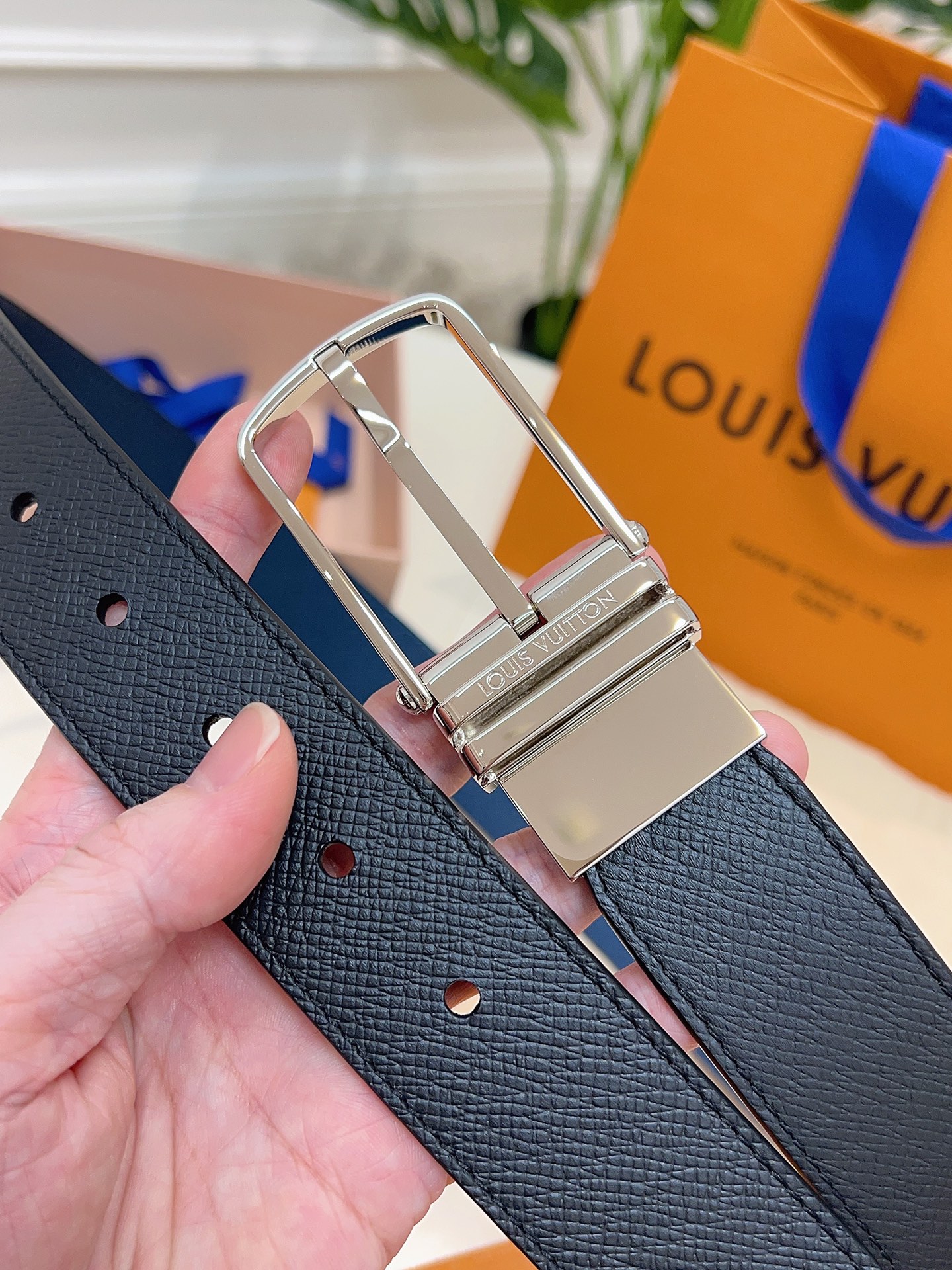 Classic LV belt with full texture, sleek metal buckle. Paired with suit pants for a sharp look, with jeans for a casual style, easily mastering a fashionable feel, it's a standout piece in your outfit. Purchased version