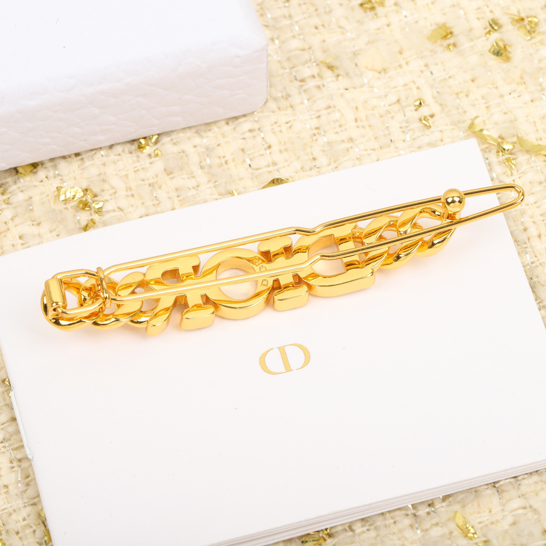 Dior chain letter hair clip: minimalist, elegant design with classic logo. Adds a fairy-like charm to your style, highly recommended for a youthful look.