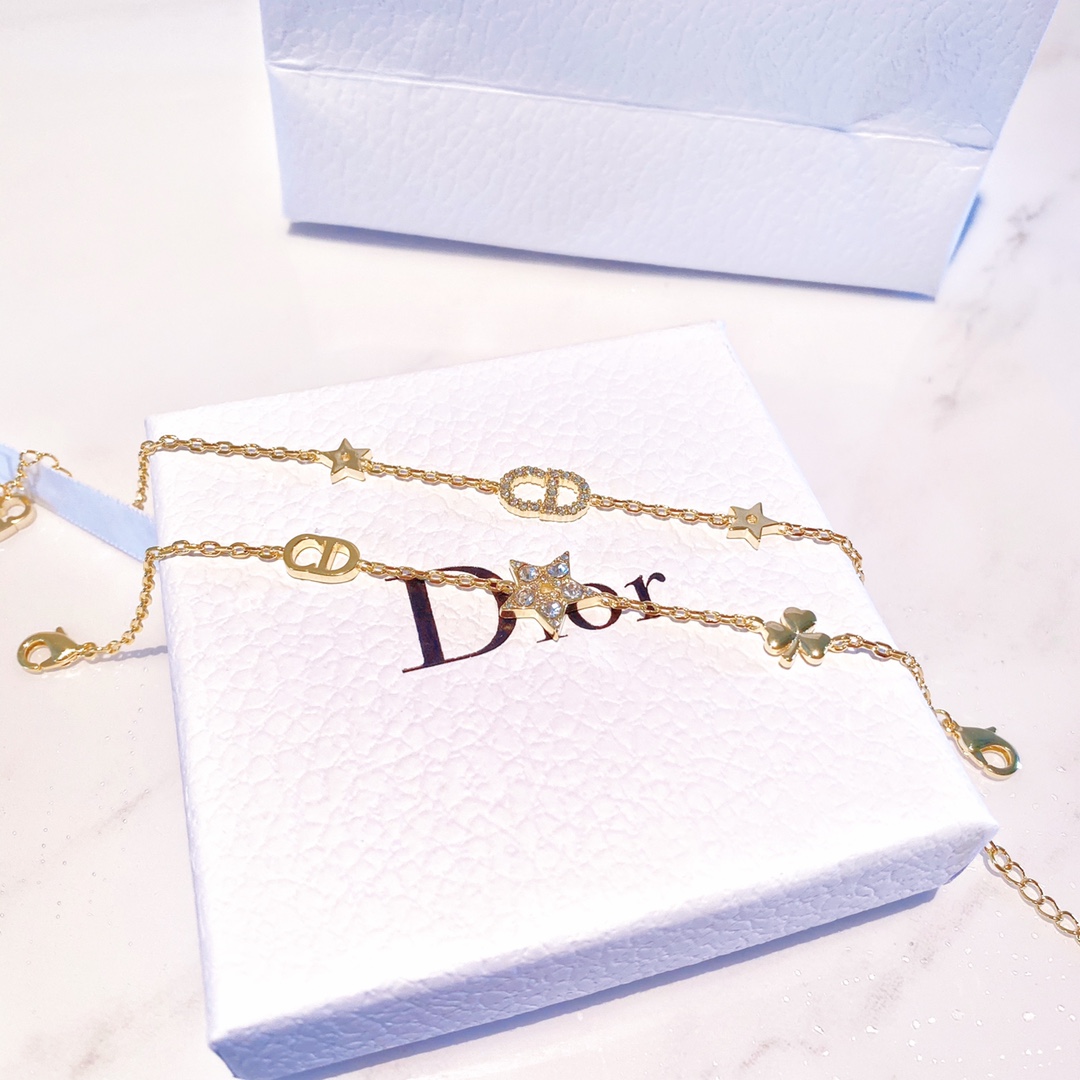 DIOR double-layer bracelet, the latest counter style! A set of two bracelets can be worn separately or as bestie bracelets, one each! It's simply too cost-effective! Super ethereal, one Lucky Star bracelet, one CD bracelet, gold color very brightening, pairs perfectly with dresses or T-shirts! Comes with official counter gift box packaging!