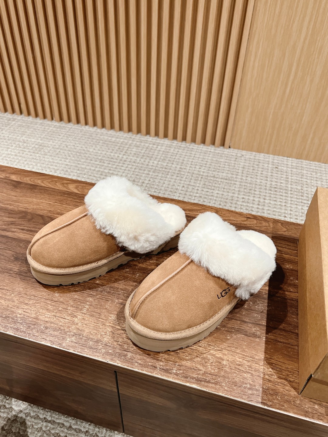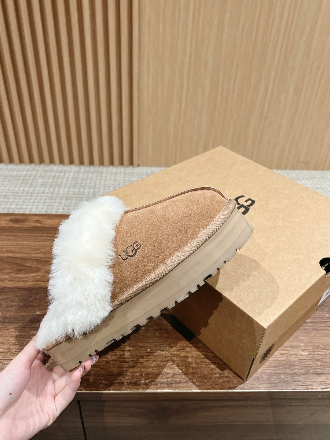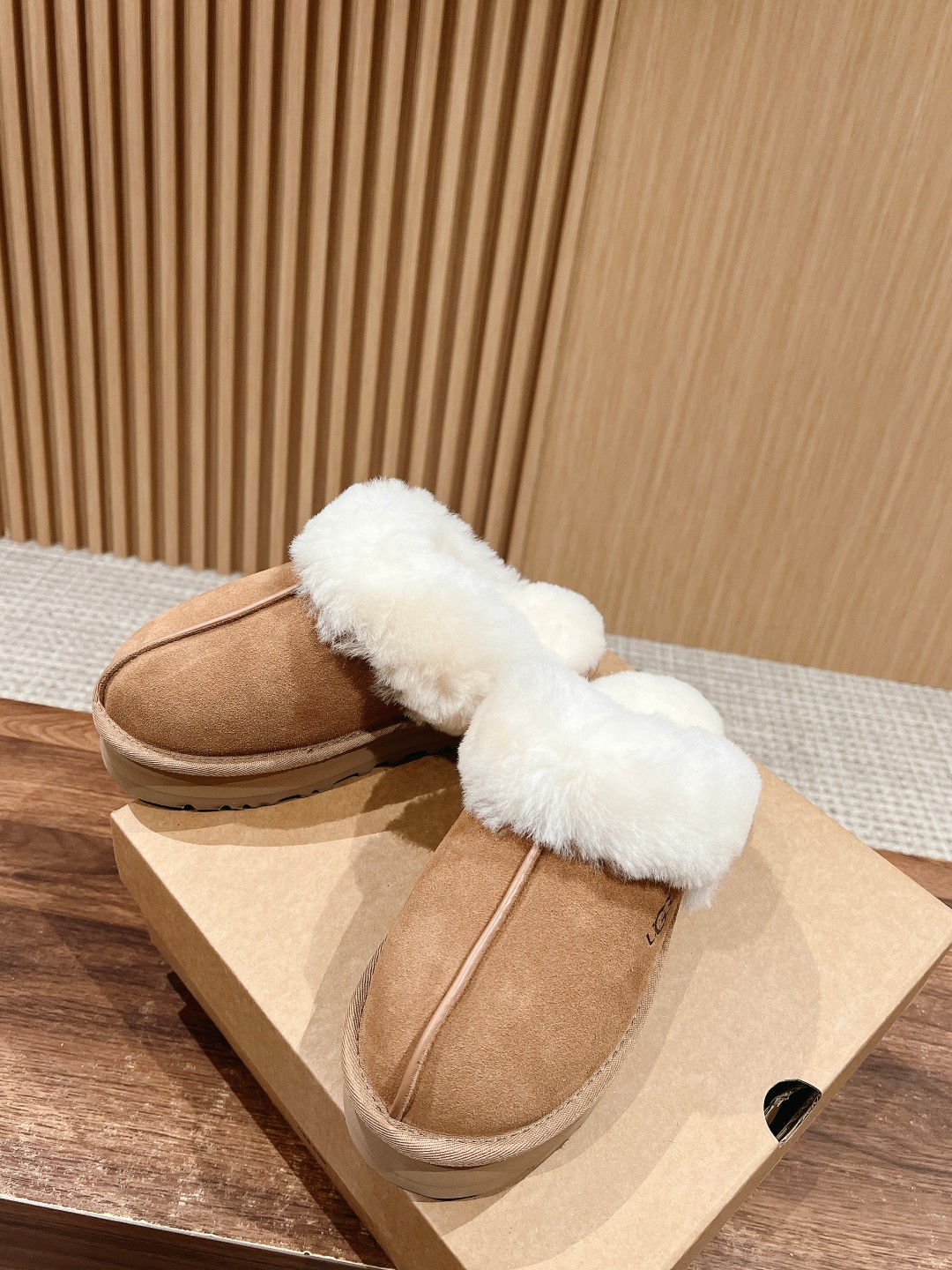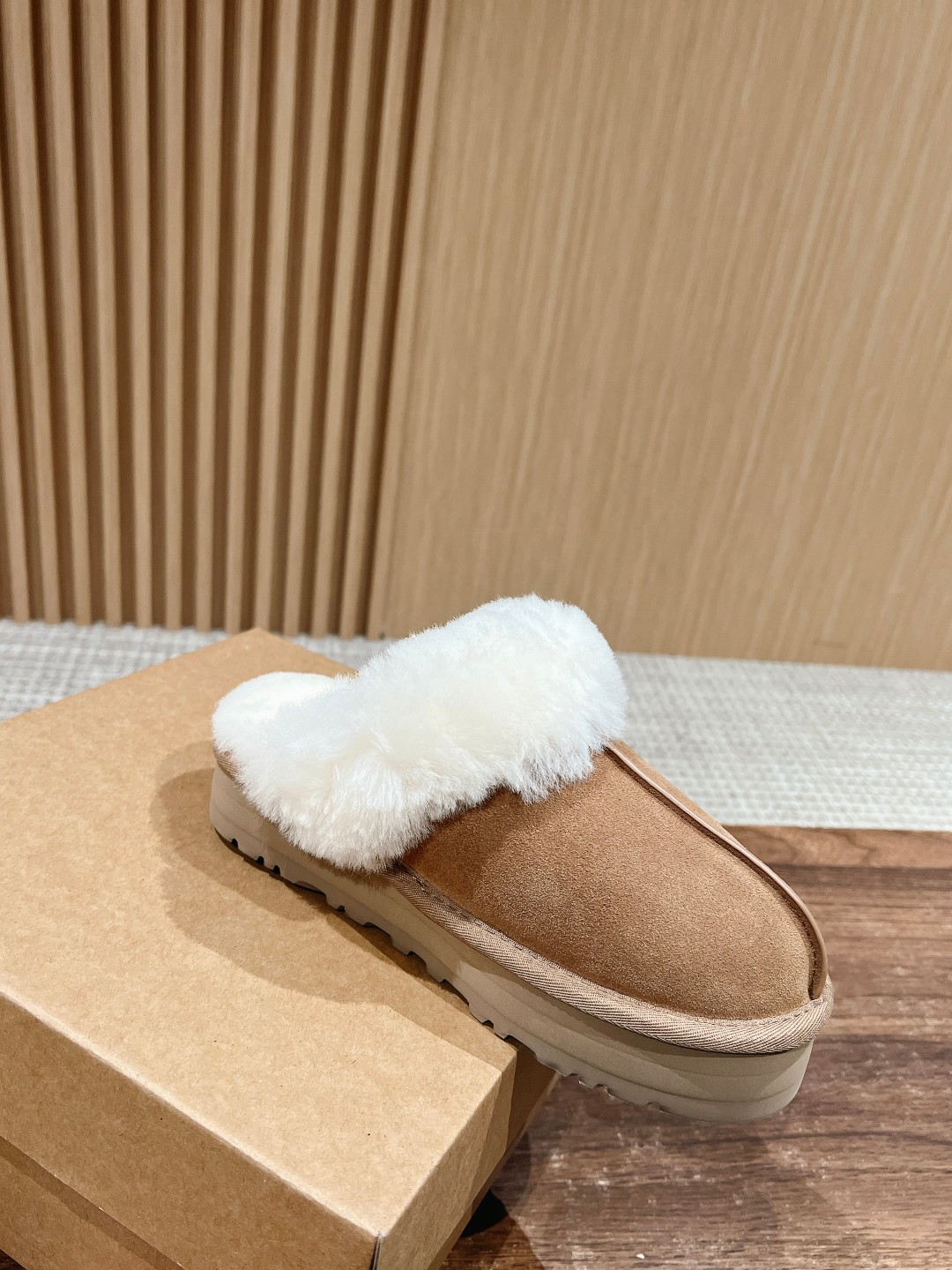 Dongguan UGG fluffy thick sole slippers, Australian sheepskin, 5cm sole, sizes 35-40.