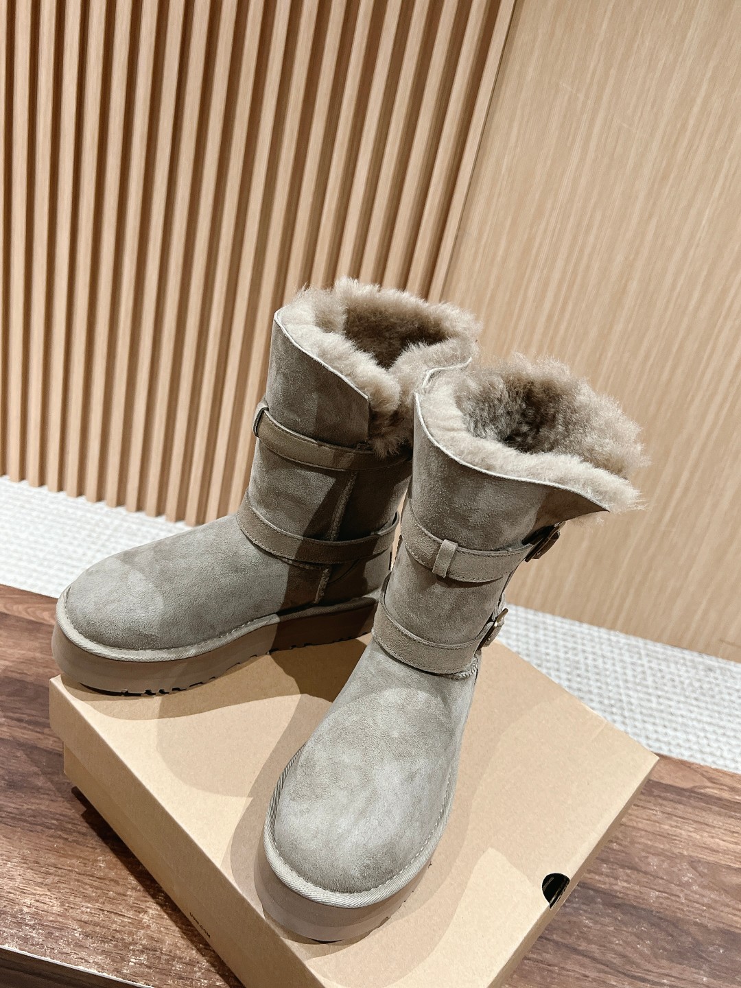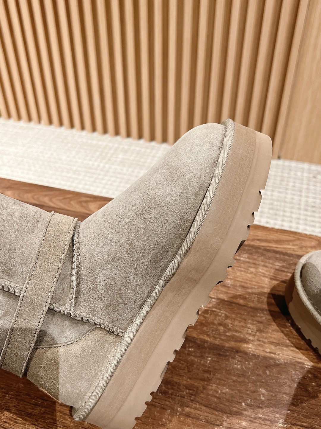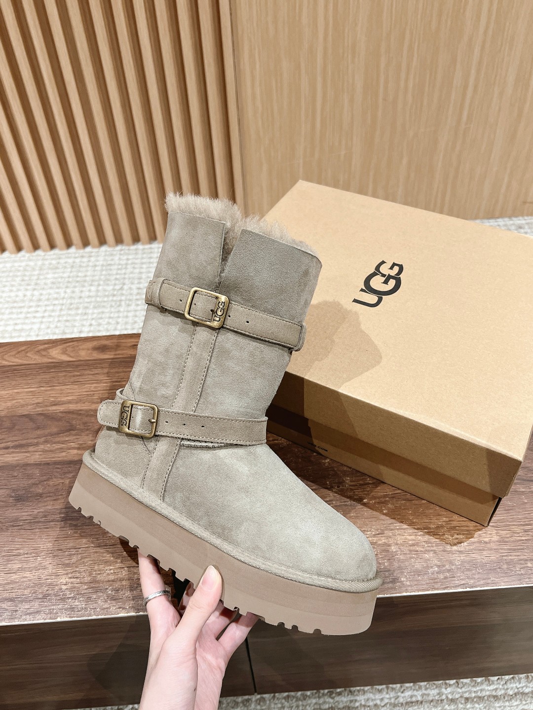 Can't help but share a spoiler; seeing all sorts of versions flooding the market, the exclusive custom color-matched molded combination sole is about to be released... This UGG platform short boot, the authentic version is not made with integrated fur and leather; the material is cow suede bonded with knitted wool. As the name suggests, basically all UGGs on the market use integrated fur and leather because that makes it easier to produce shoe covers directly, with lower cost and faster production! However, the downside is that the shoes are very prone to deformation and losing shape; if worn daily, they can become severely deformed within a week. The authentic version of this UGG is made using the methods for fashion shoes. The cow suede bonded with wool material is used for full coverage, then the upper is attached, involving many processes: adding toe stiffeners, then shaping fabric, and then going through the "steamer" for upper shaping—these detailed steps ensure the finished shoes are not easily deformed! Our UGGs strictly follow the authentic material and process workflow... Feel free to compare. Size: 35-39 (40 custom-made, no returns or exchanges)