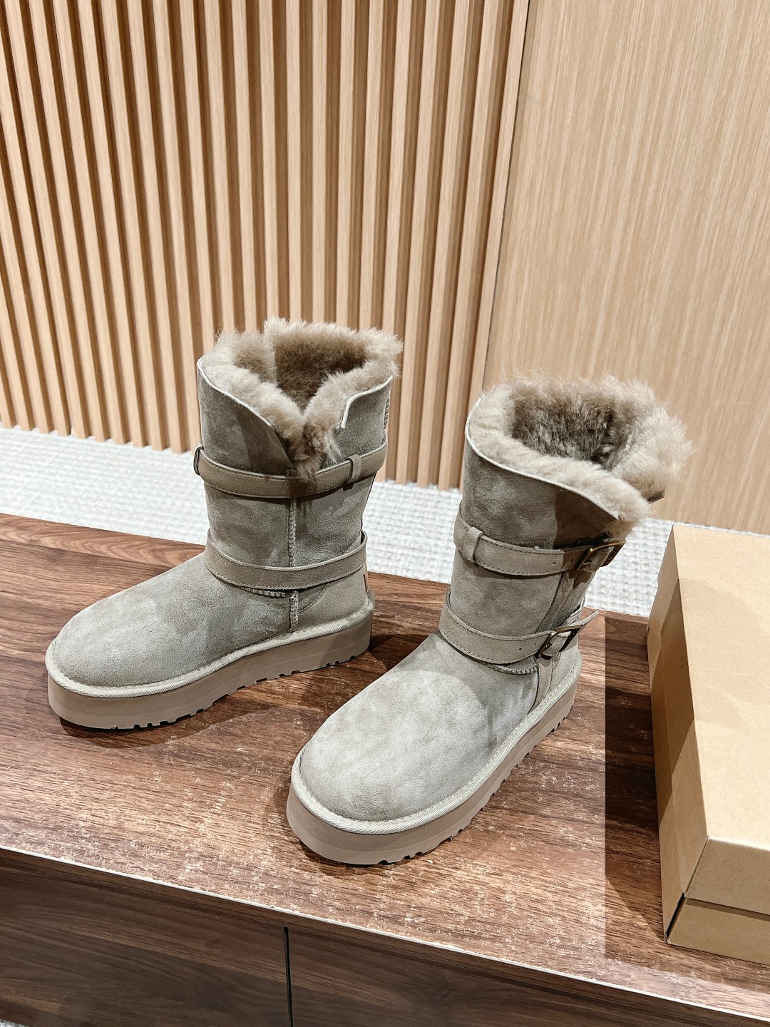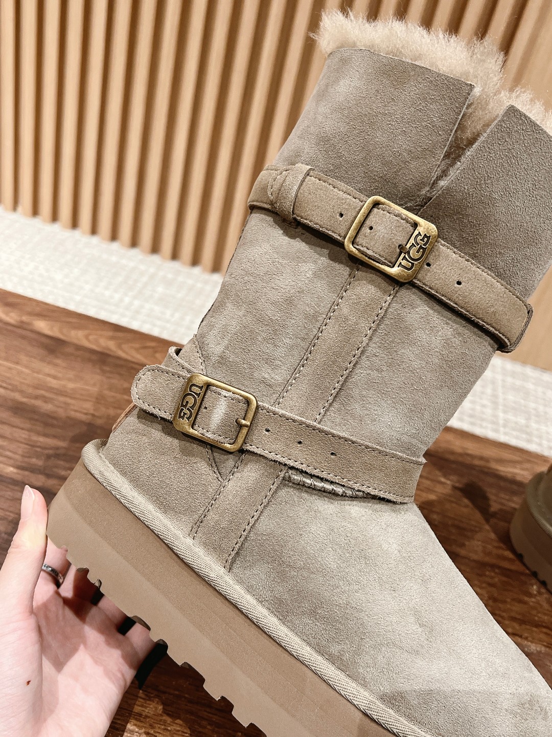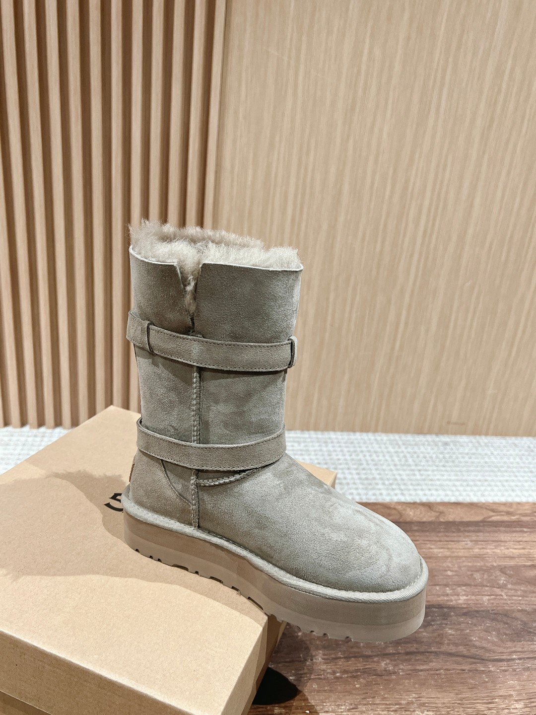 Can't help but share a spoiler; seeing all sorts of versions flooding the market, the exclusive custom color-matched molded combination sole is about to be released... This UGG platform short boot, the authentic version is not made with integrated fur and leather; the material is cow suede bonded with knitted wool. As the name suggests, basically all UGGs on the market use integrated fur and leather because that makes it easier to produce shoe covers directly, with lower cost and faster production! However, the downside is that the shoes are very prone to deformation and losing shape; if worn daily, they can become severely deformed within a week. The authentic version of this UGG is made using the methods for fashion shoes. The cow suede bonded with wool material is used for full coverage, then the upper is attached, involving many processes: adding toe stiffeners, then shaping fabric, and then going through the "steamer" for upper shaping—these detailed steps ensure the finished shoes are not easily deformed! Our UGGs strictly follow the authentic material and process workflow... Feel free to compare. Size: 35-39 (40 custom-made, no returns or exchanges)