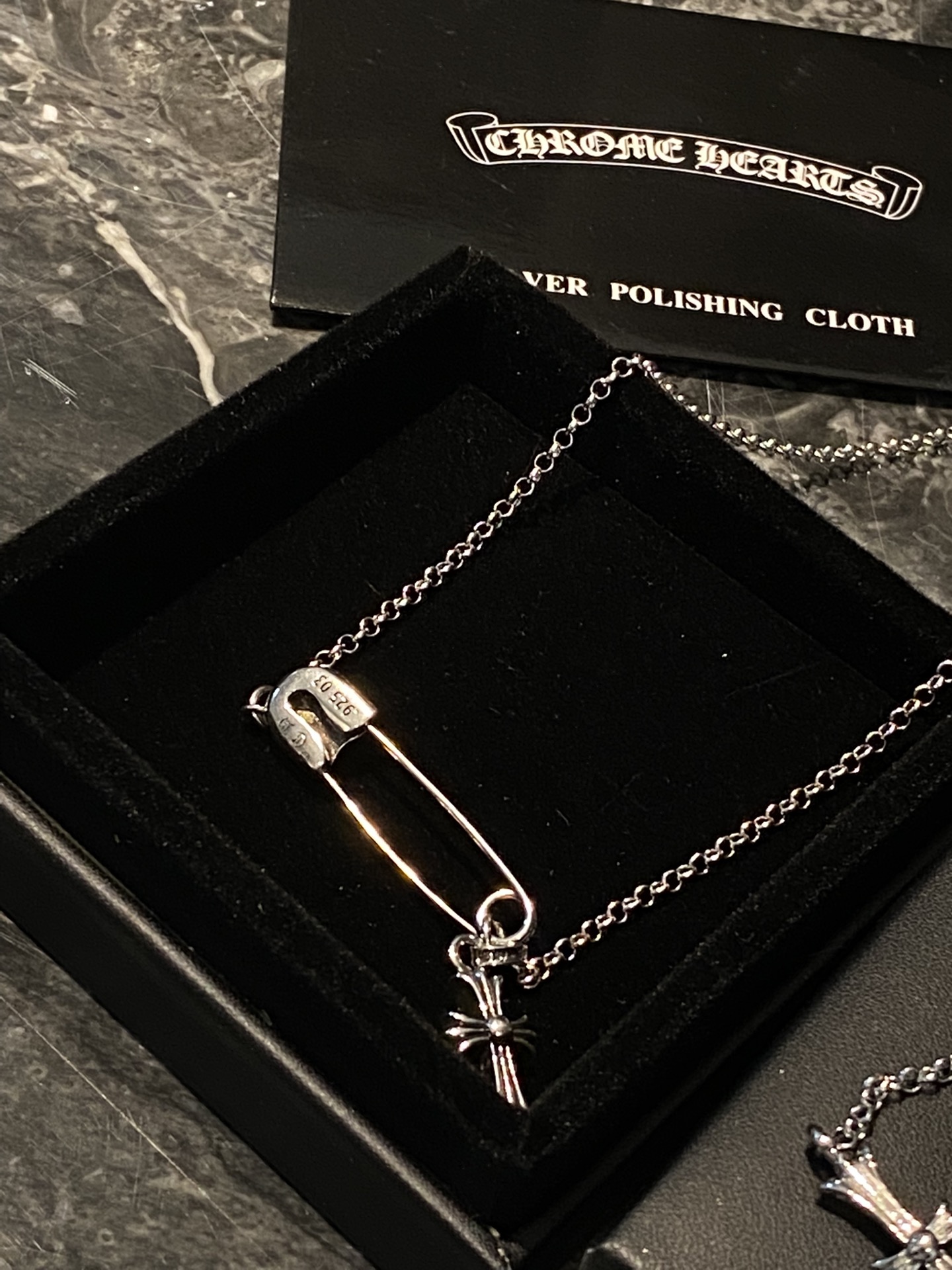 It's too much! How can a pin be so beautiful? I don't even want to praise it, it's absolutely amazing~ Paired with a cross, it's so exquisite~ Personality without being flashy, effortless fashion, Chrome Hearts easily captures the small design sense.