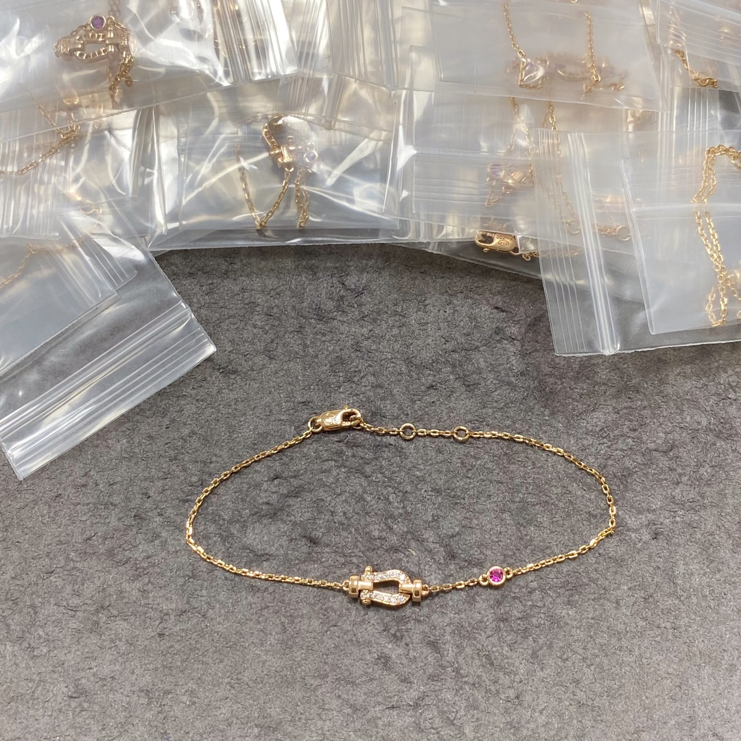 Fred Small Pink Diamond Buckle Horseshoe Bracelet