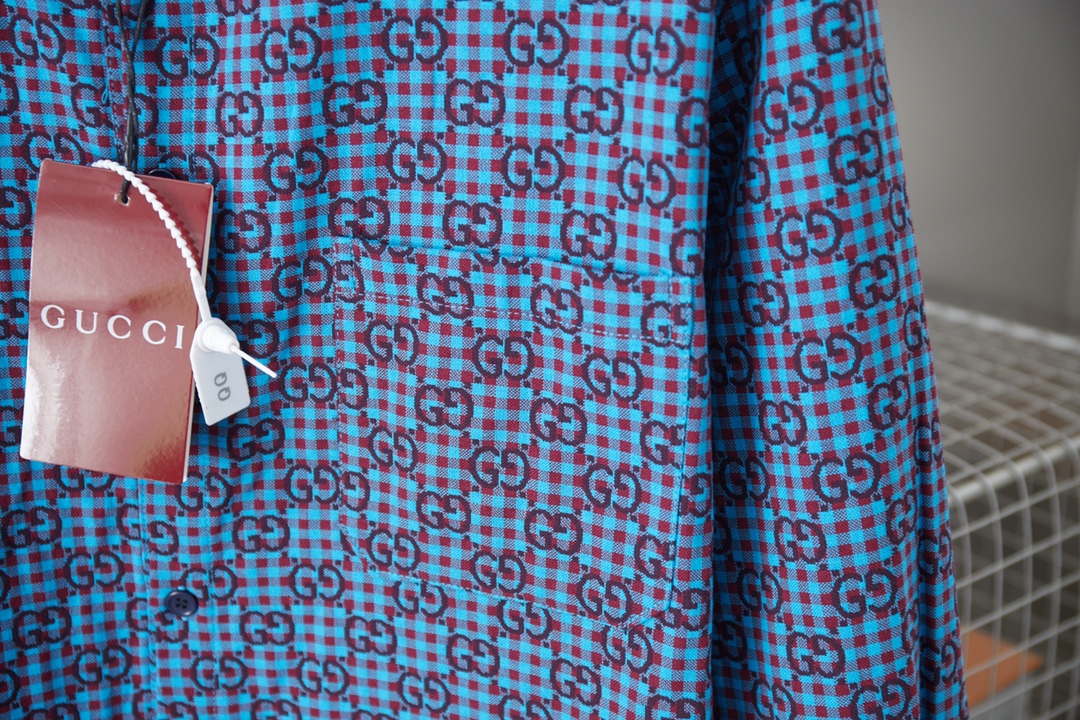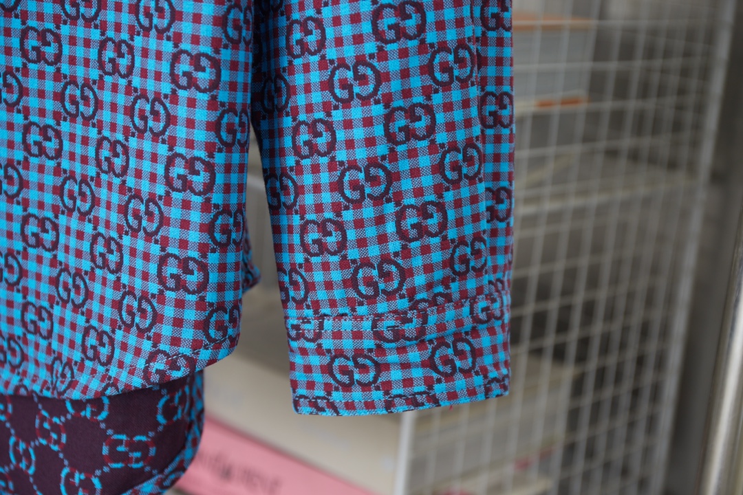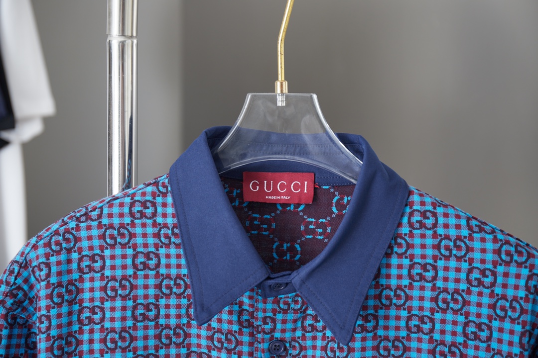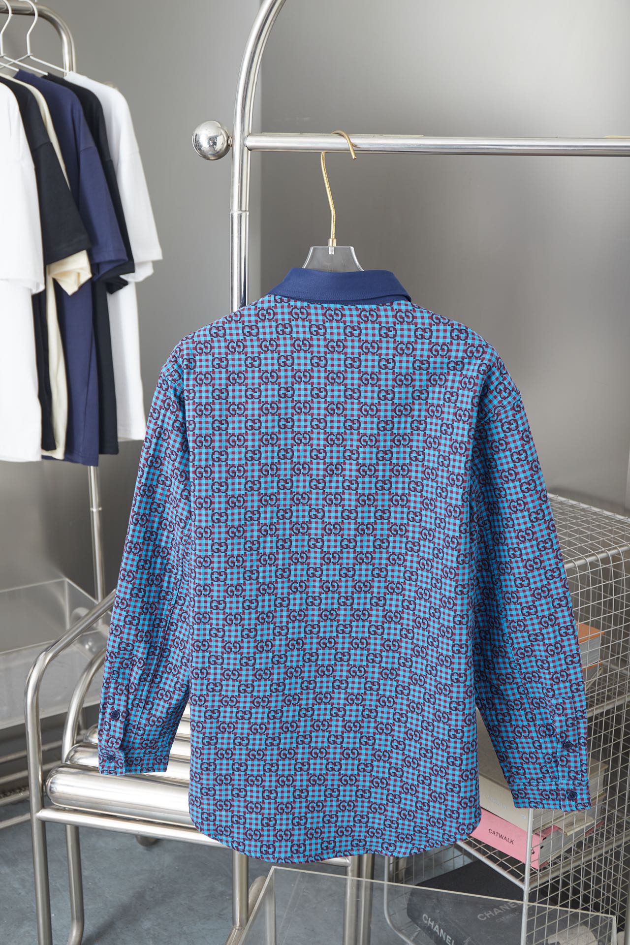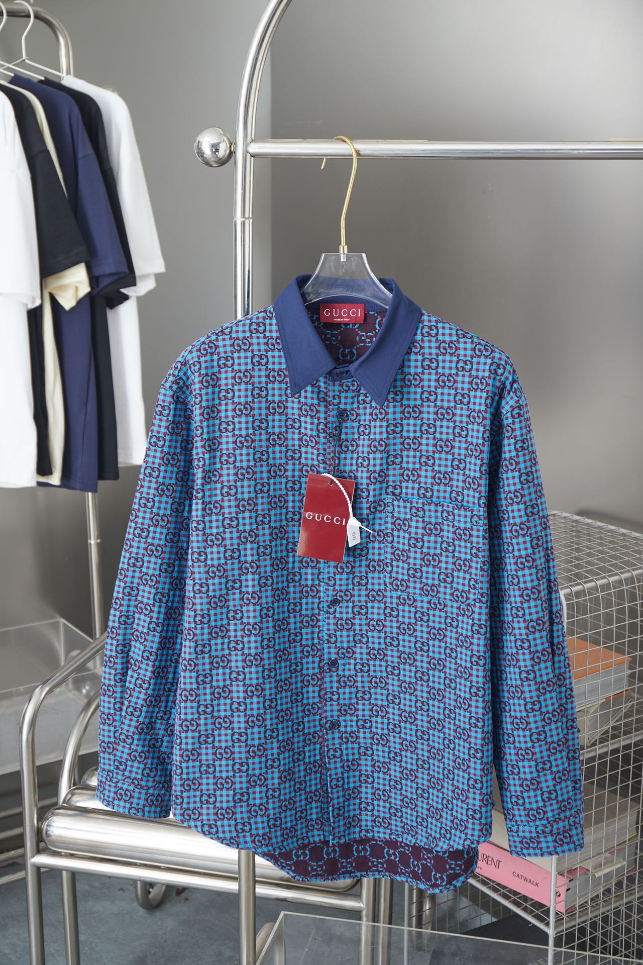 GU Ancient Family GC 24SS Small G Jacquade Linen Long Sleeve Shirt Light luxury essential for men's and women's daily commute wear. Correct version, freely compare. Detailed features: · Custom woven wool linen fabric, high-end texture, comfortable skin feel · Full-body laser alignment cutting, all checks aligned · Chest pocket design · Color-contrasting blue ribbed design · Collar and placket use imported resin composite adhesive interlining · Deep sea mother-of-pearl buttons used · Garment washed to reduce shrinkage rate · Full wheat clip special vehicle craftsmanship · Original main label, wash tag, button packaging Color: Green/Blue Size: XS/S/M/L