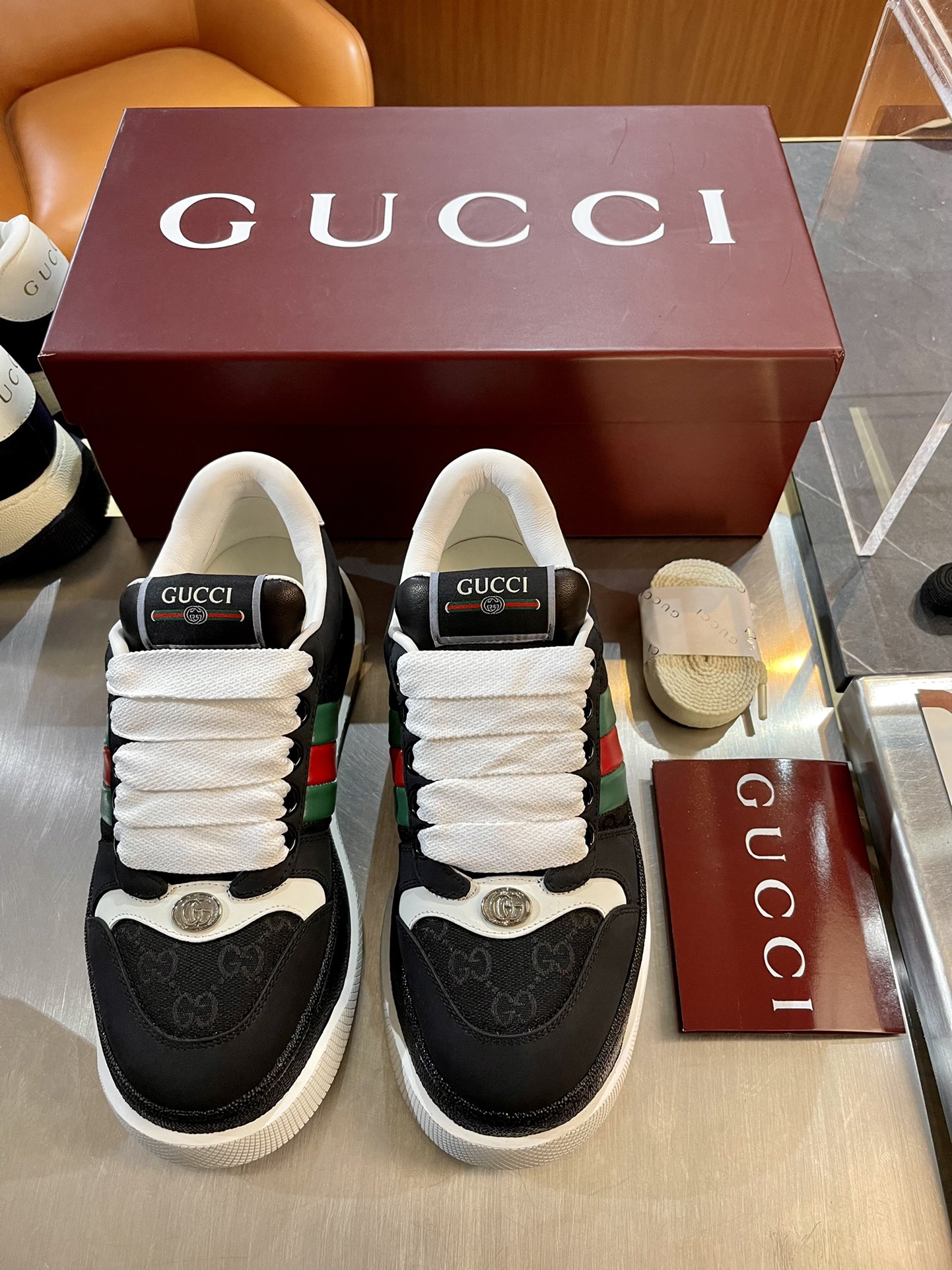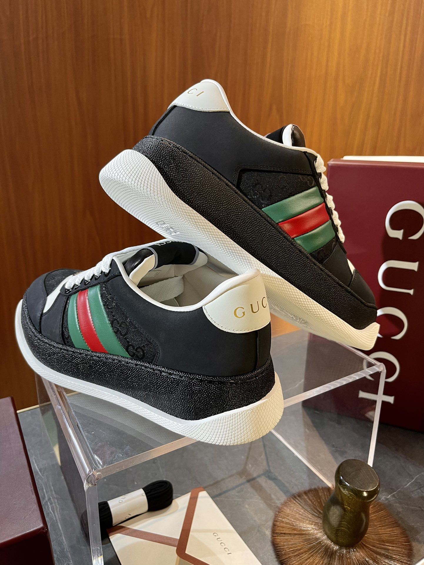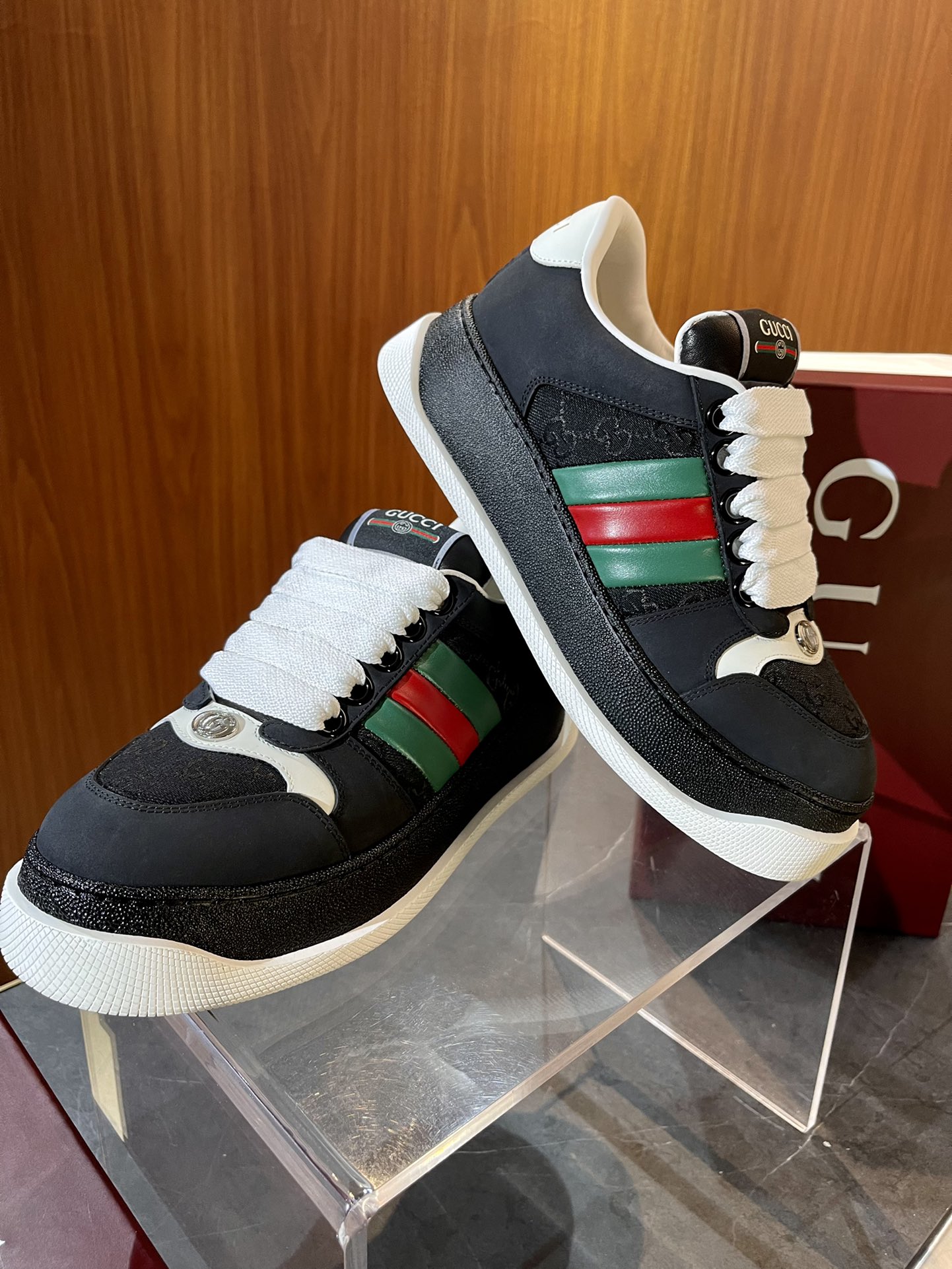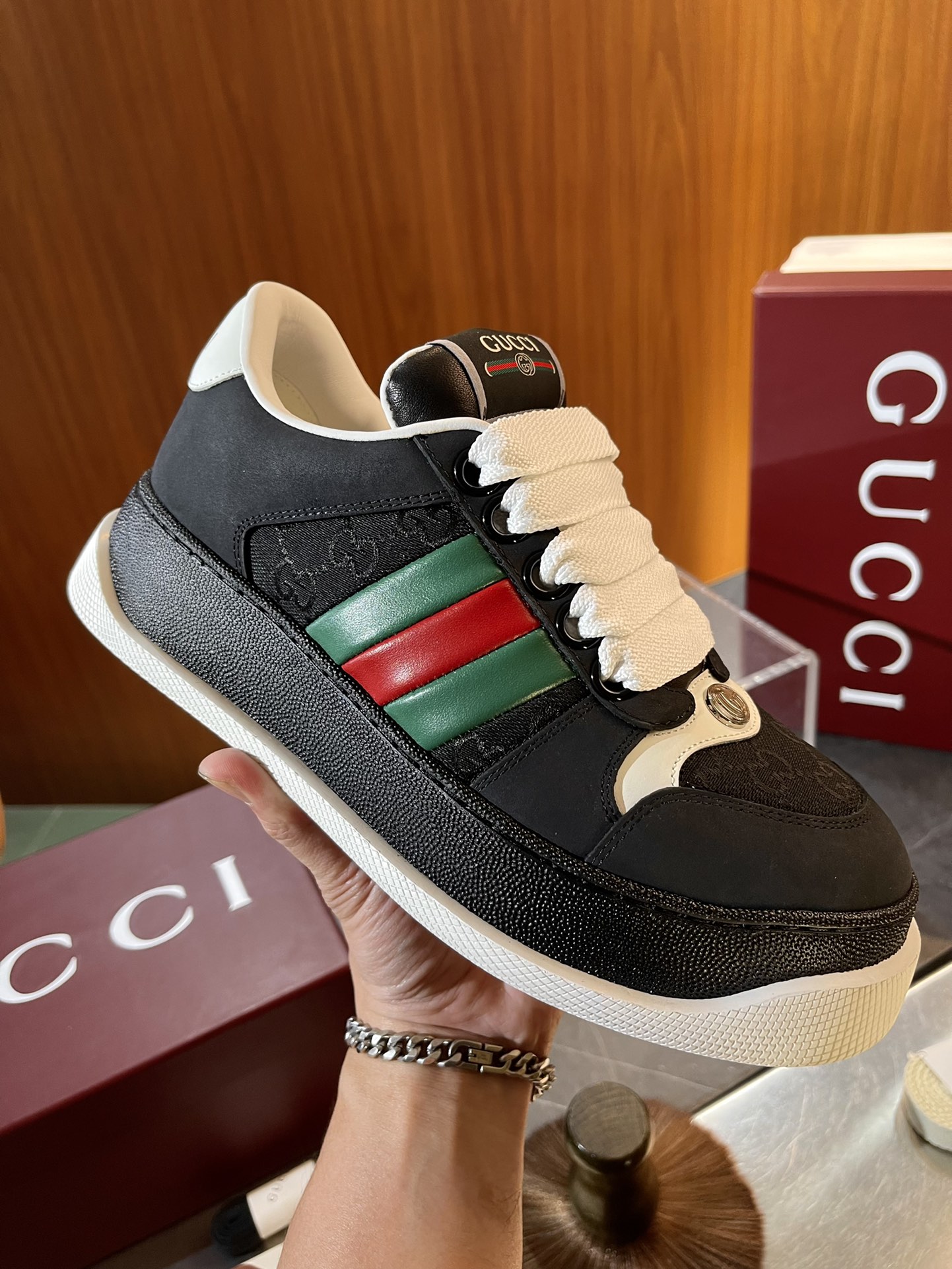 GUC Screener men's GG stripe thick sole sneakers. Sizes 39-45. Top grain leather. Gift box packaging.
