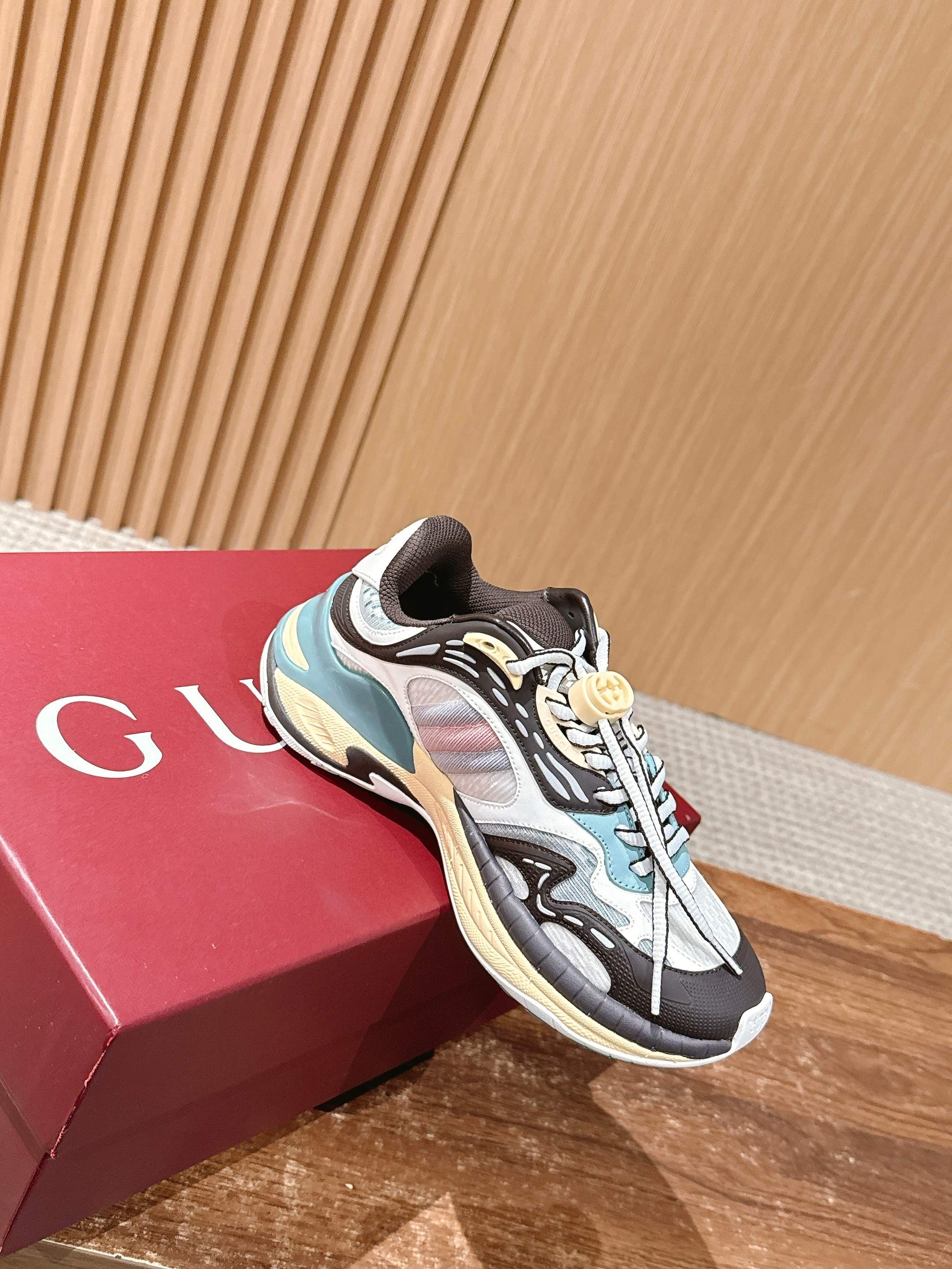 Original Title: [Top Version] Gucci 2.0# Gucci new unisex casual sneakers newly interpret the brand's iconic striped webbing element. These sneakers refresh the iconic details, using a thick EVA sole paired with a dynamic silhouette, providing stable and comfortable wear. Leather lining. GG reflective piping Padded webbing Decorated with GG EVA rubber sole . Lace-up closure, equipped with interlocking double G laces. Thick sole approximately 5 cm.