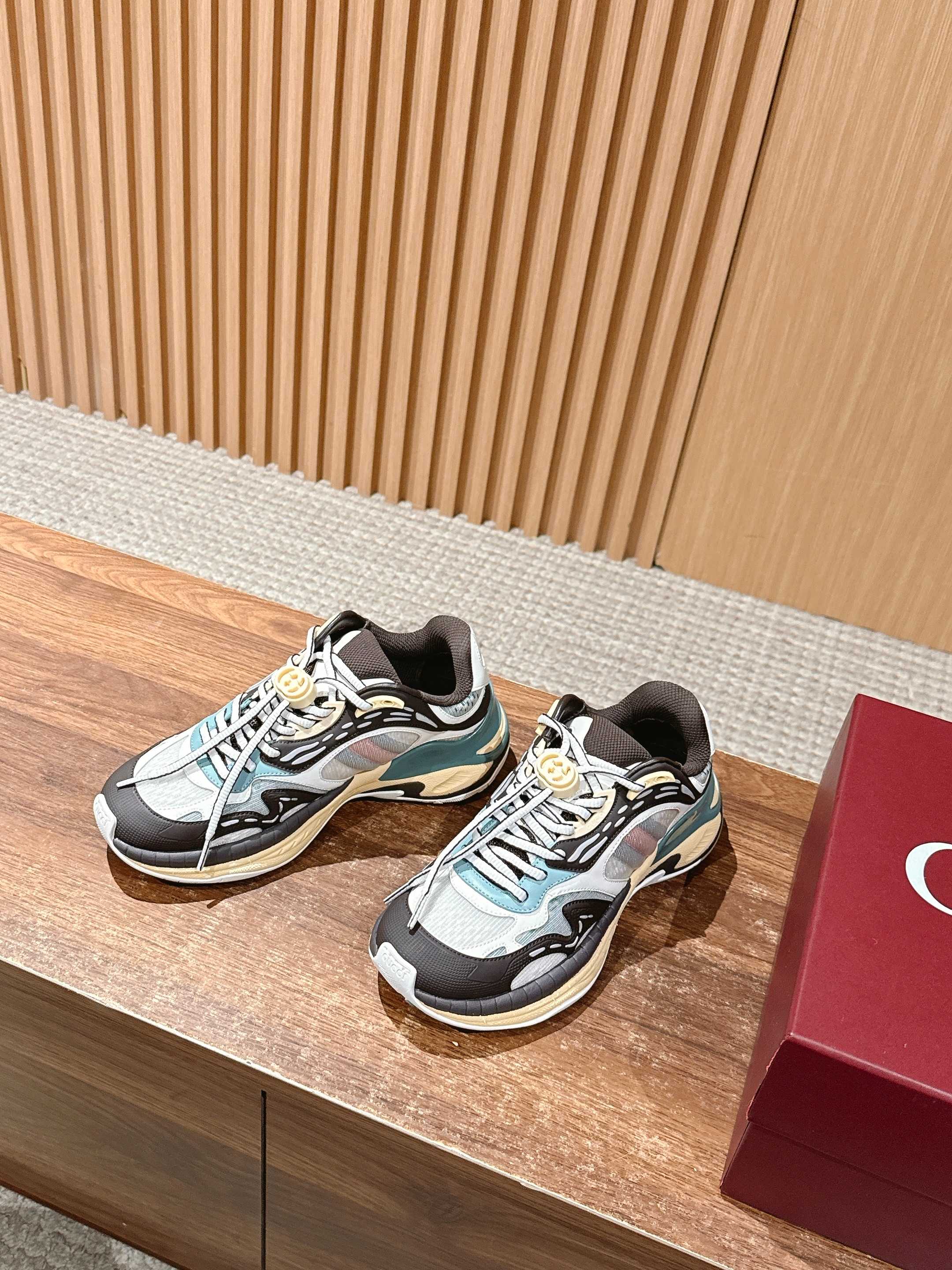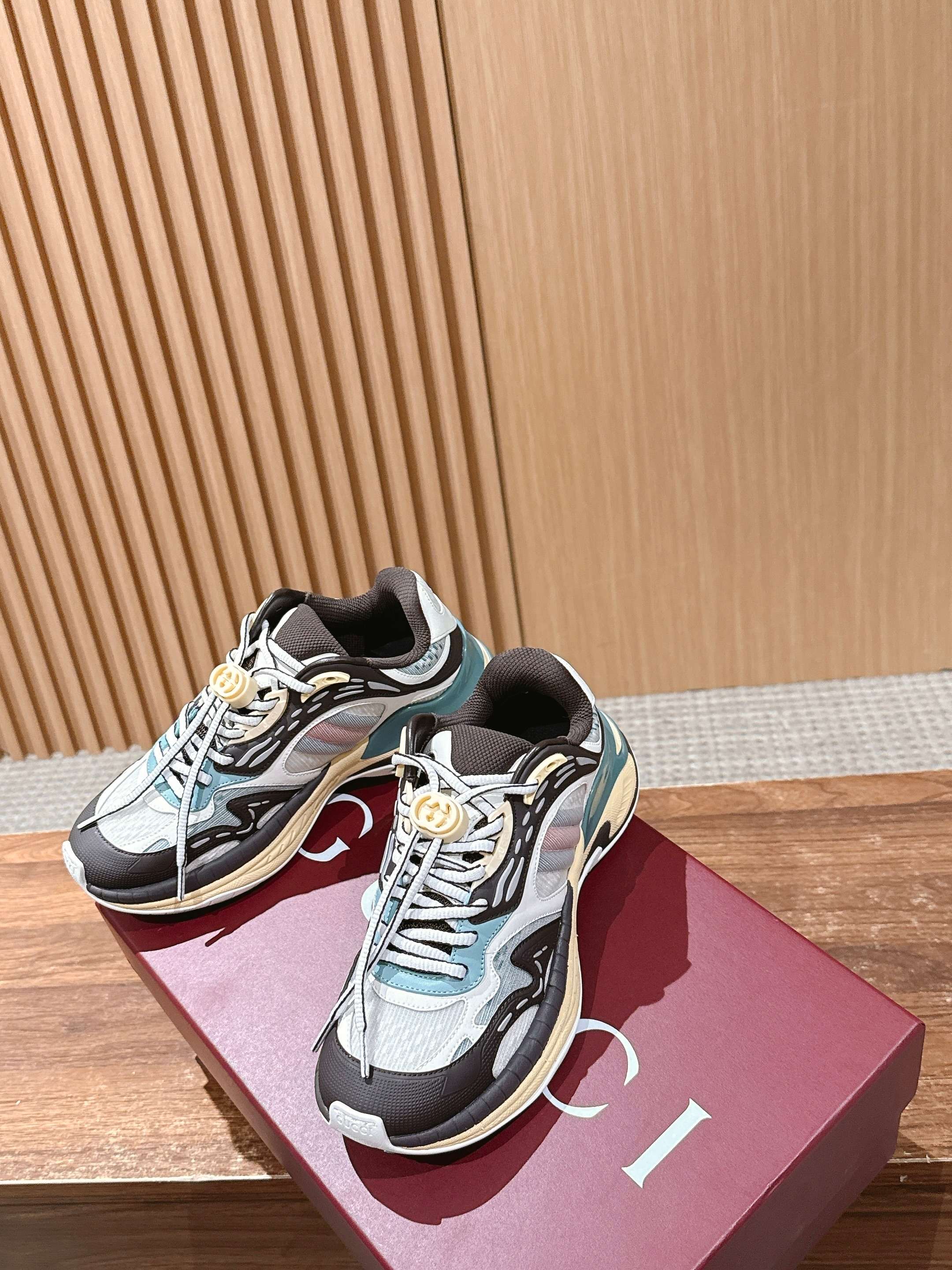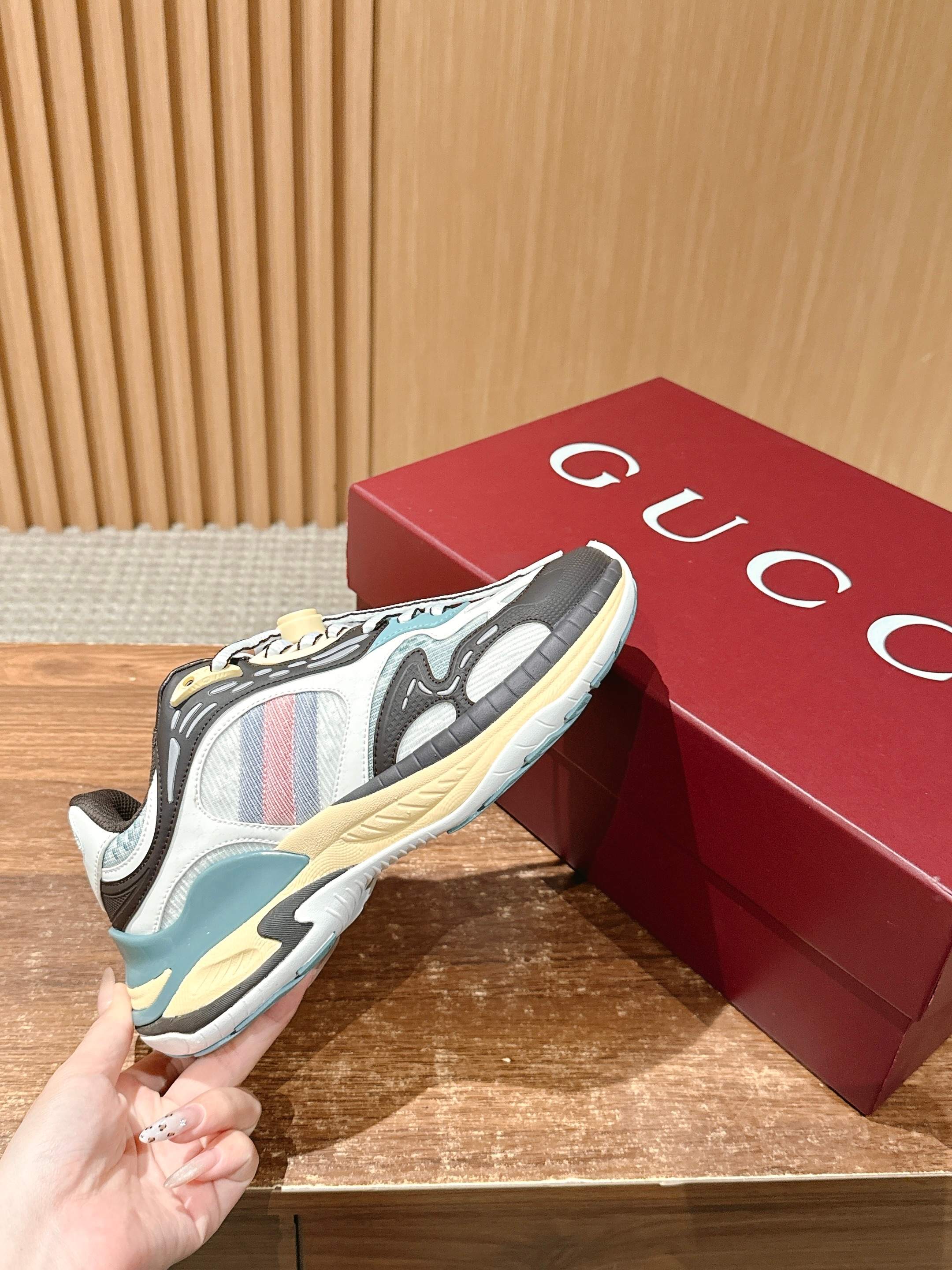 [Top Version] Gucci 2.0# Gucci new unisex casual sneakers newly interpret the brand's iconic striped webbing element. These sneakers refresh the iconic details, using a thick EVA sole paired with a dynamic silhouette, providing stable and comfortable wear. Leather lining. GG reflective piping Padded webbing Decorated with GG EVA rubber sole . Lace-up closure, equipped with interlocking double G laces. Thick sole approximately 5 cm.