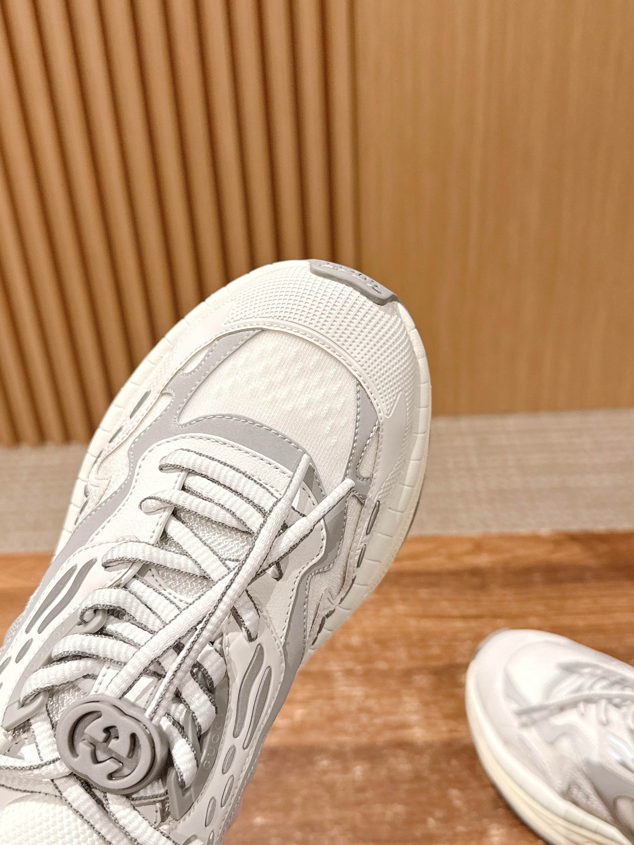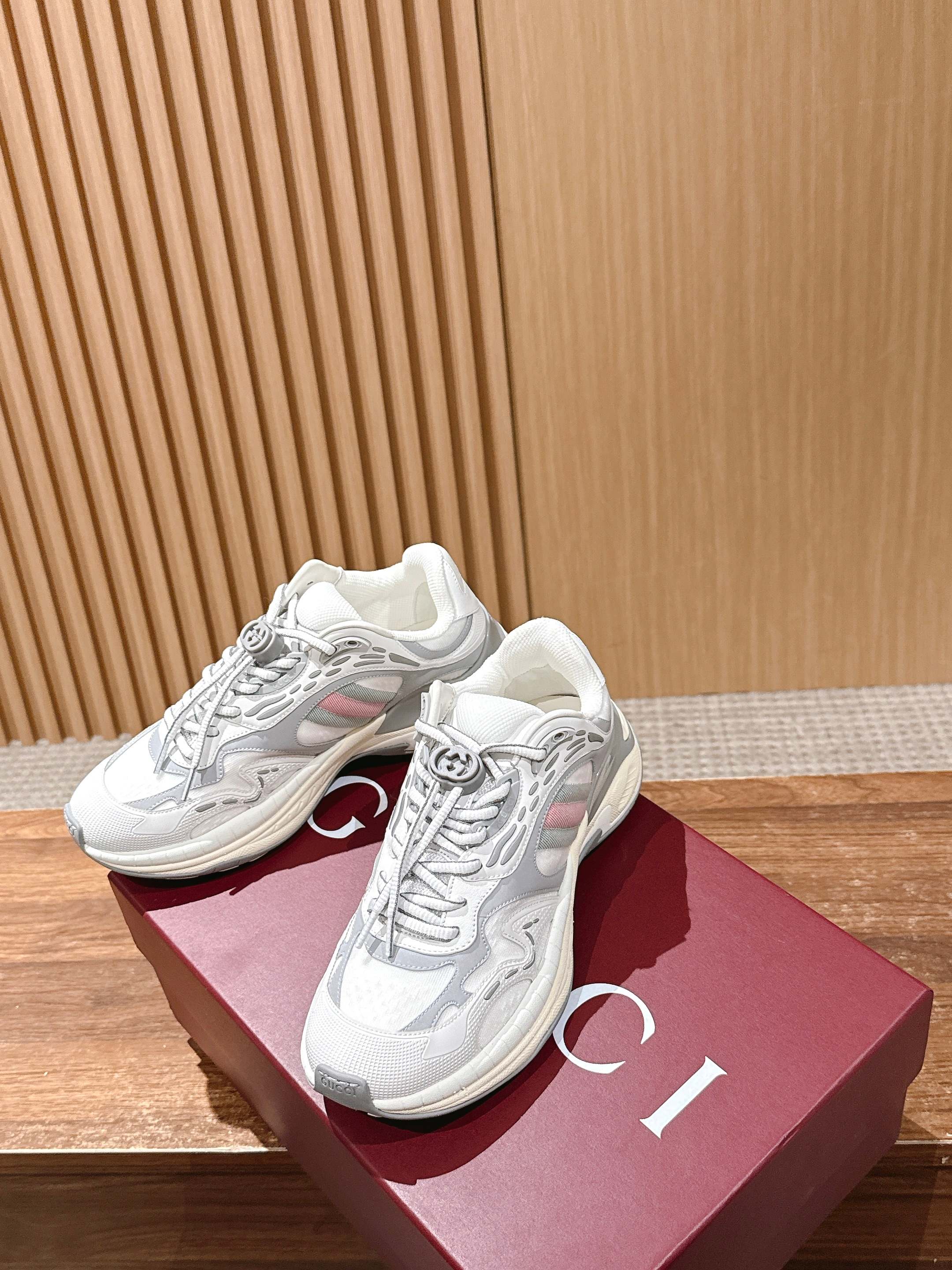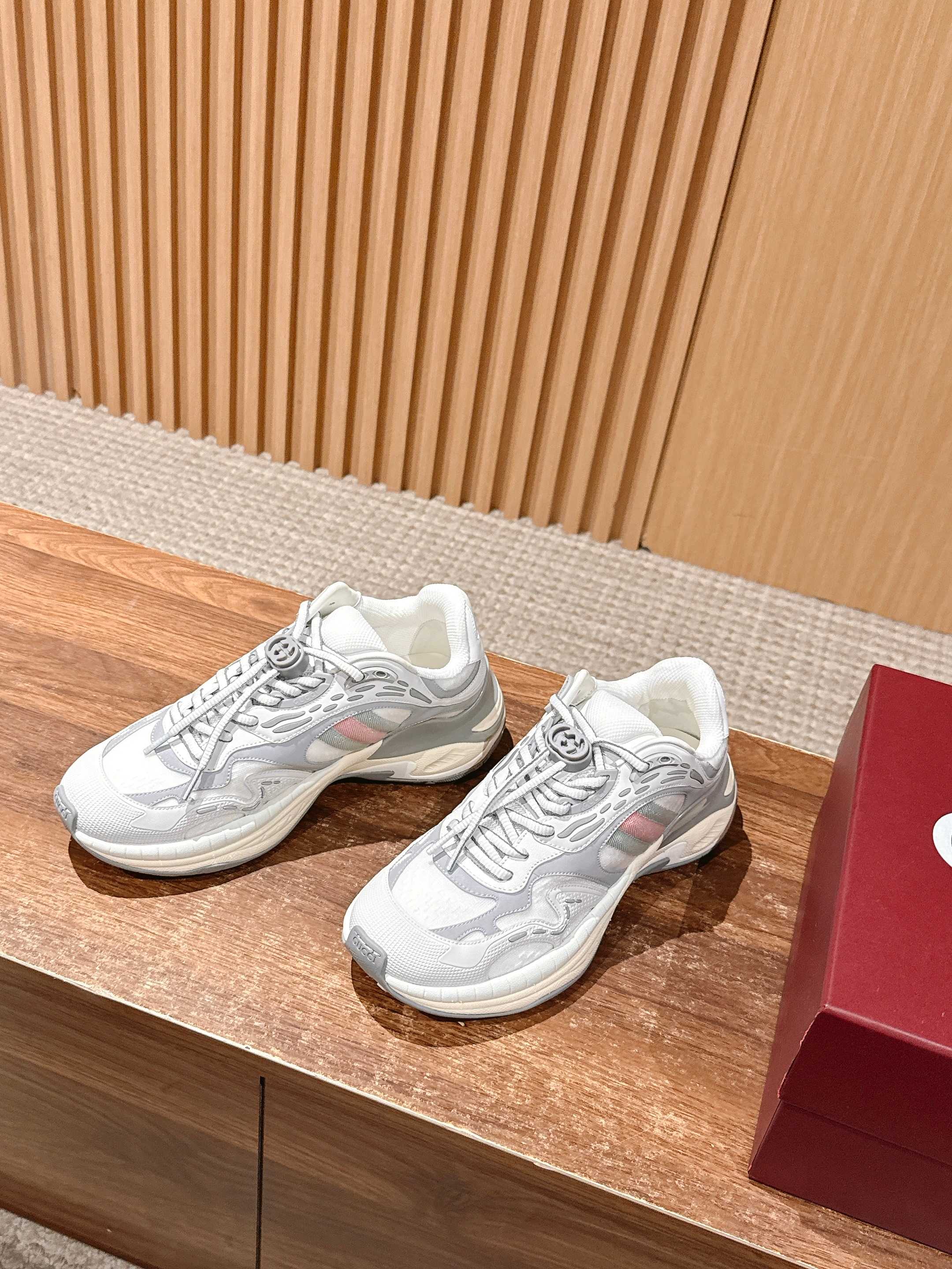 [Top Version] Gucci 2.0# Gucci new unisex casual sneakers newly interpret the brand's iconic striped woven tape element. These sneakers refresh and reinterpret iconic details, using a thick EVA sole paired with a dynamic silhouette to provide a stable and comfortable wearing experience. Leather lining. GG reflective piping. Padded woven tape. Decorated with GG. EVA rubber sole. Lace-up fastening, equipped with interlocking double G laces. Thick sole approximately 5 cm.