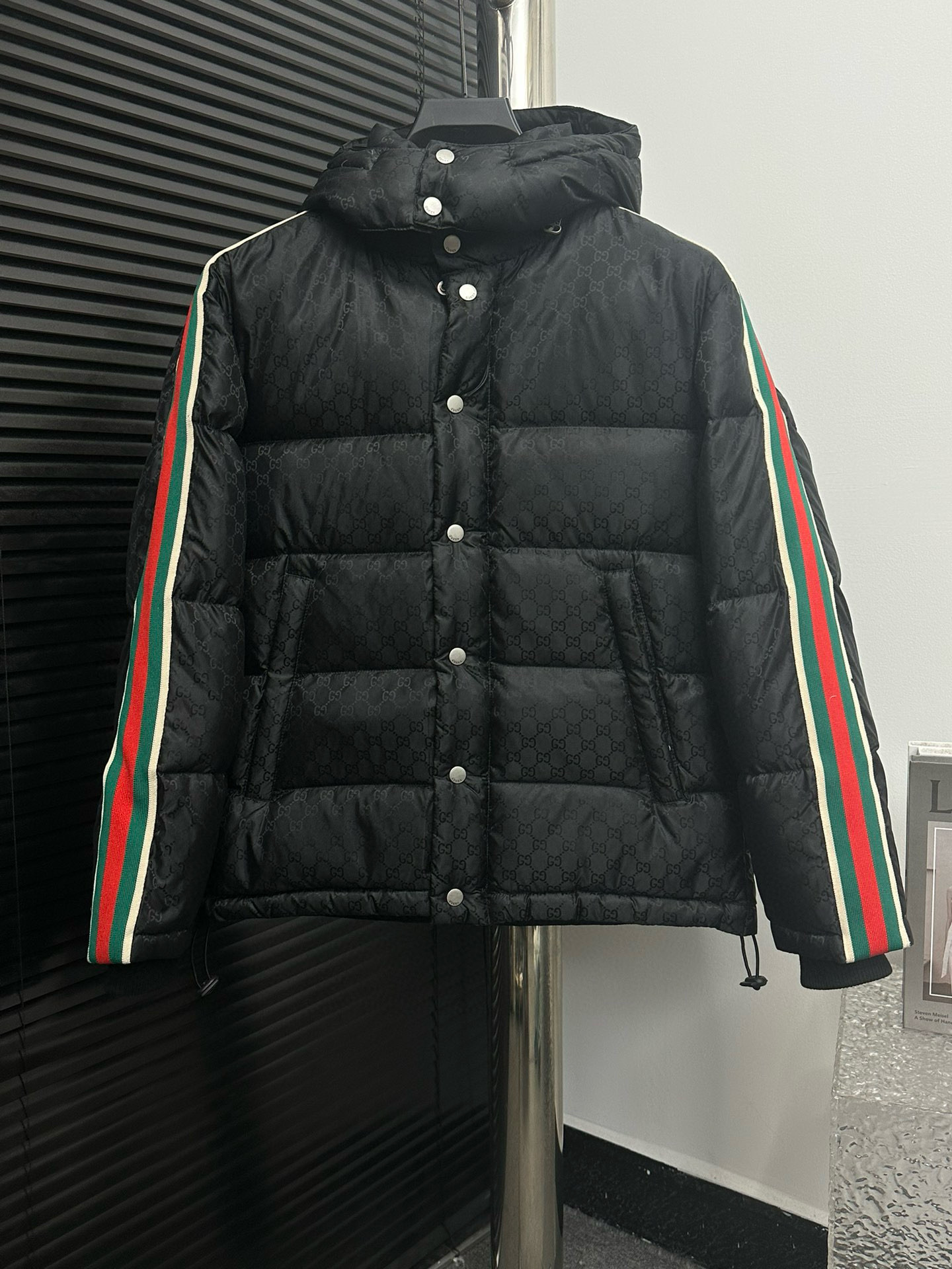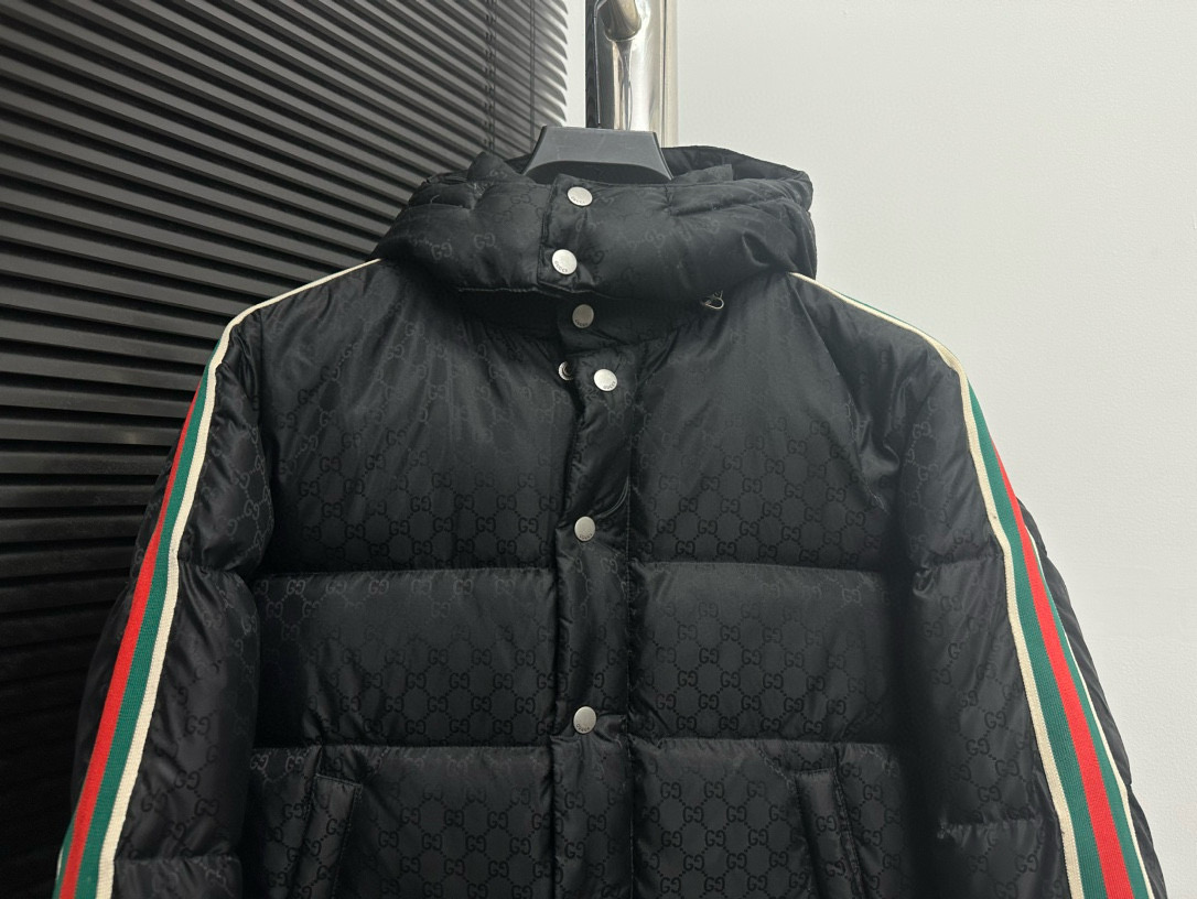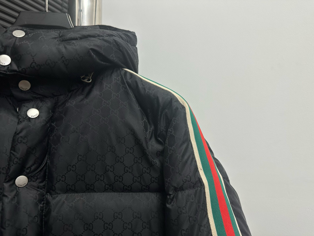 GUCCI Gucci 2023 Color Block Splicing Webbing Down Jacket Original Single Panoramic High-Definition Digital Direct Printing Logo Design Custom Original 100% Polyester Fabric Filled with Top National Standard Pure 90 White Duck Down Full Down Fill Quality Withstands Any Form of Inspection All Undergo Strict Selection Processes Its Fluffiness and Resilience Are Extremely Superior Cold Resistance Performance Is Undoubtedly! Custom Original Metal Zipper Fashion Versatile Wearing Elegant and Handsome Full of Personality Refreshing Visual Effect! Cold Resistance Artifact! Available Now Counter Sizes: 46-52