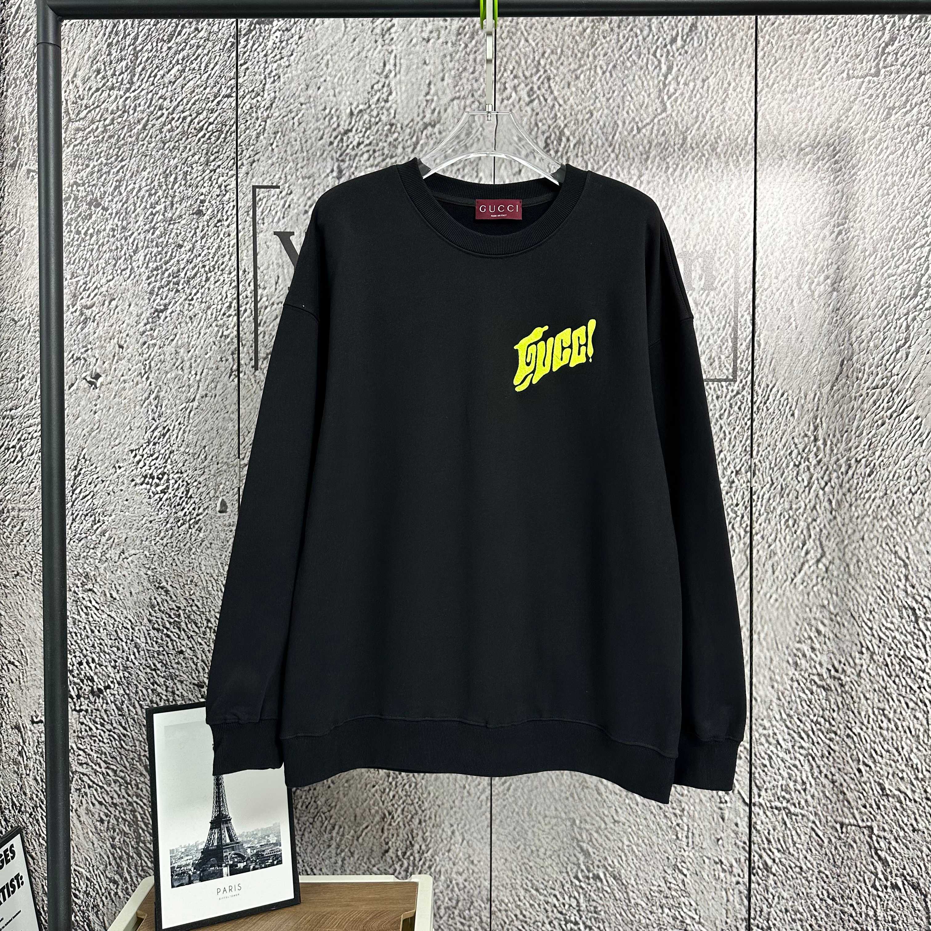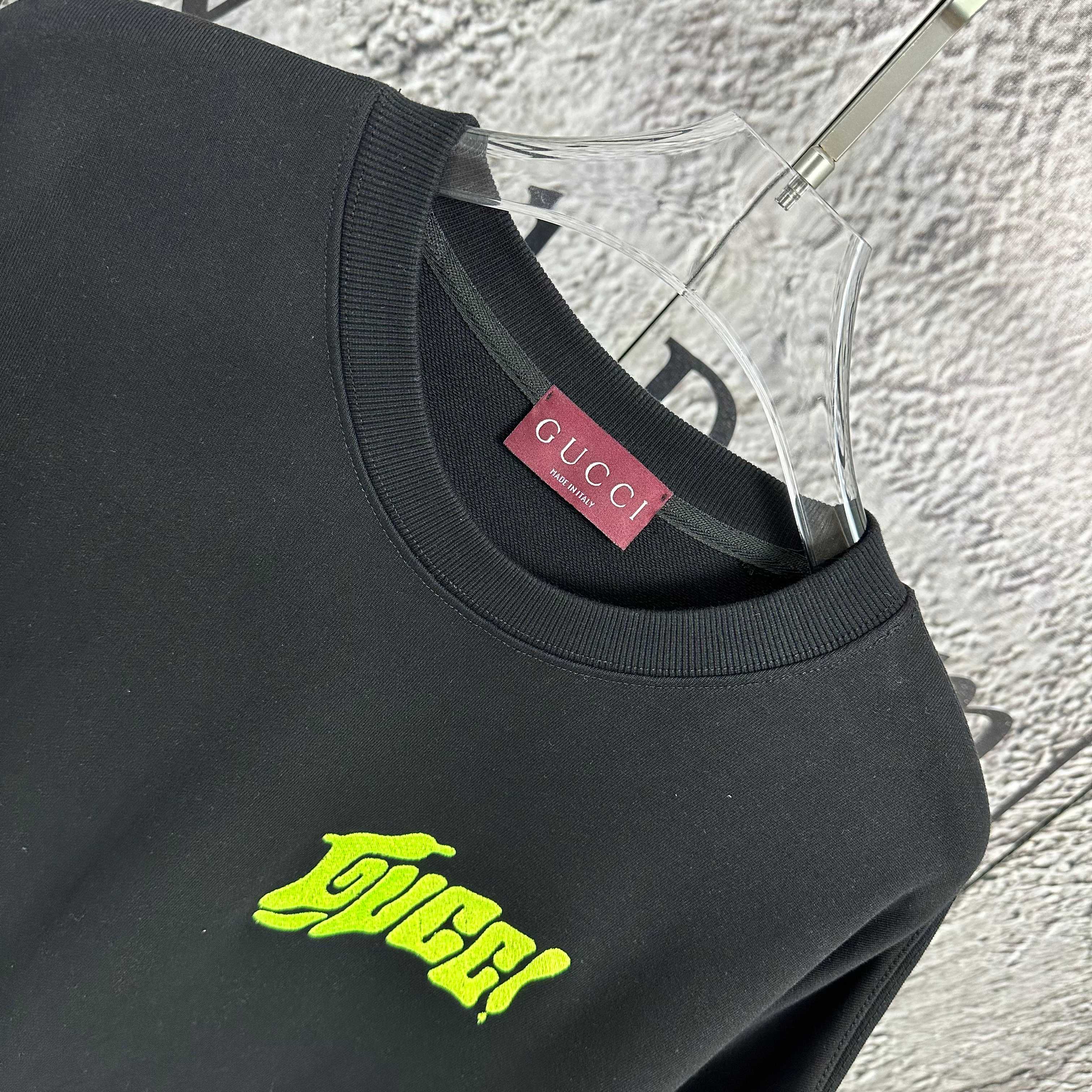 New Gucci 2025 Autumn and Winter New Round Neck Sweatshirt 420g Pure Cotton Loop Embroidery Print Unisex Sizes: XS S M L Colors: White Apricot Black