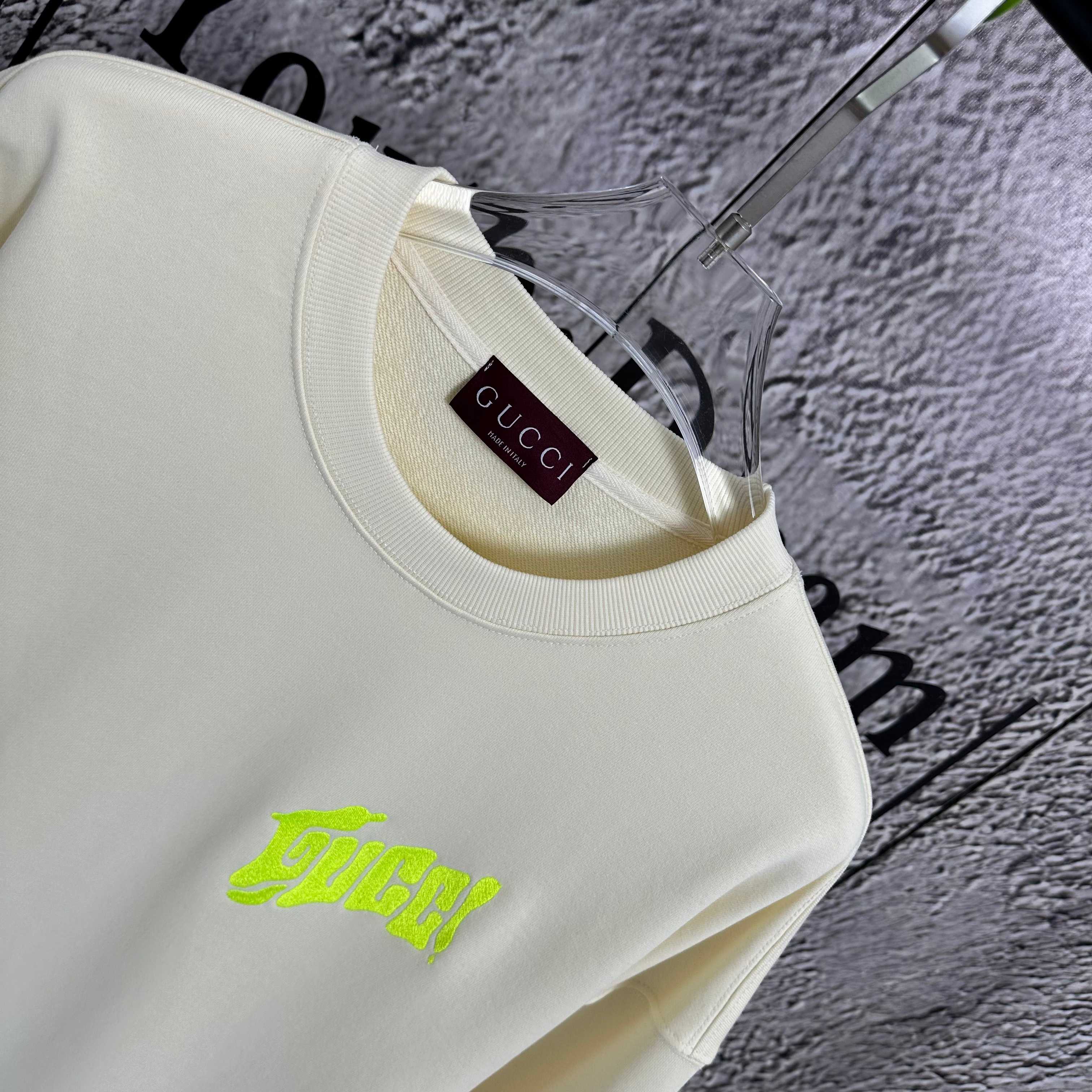 New Gucci 2025 autumn and winter new round neck sweatshirt 420g pure cotton terry embroidery printing Unisex Sizes: XS S M L Colors: White Apricot Black