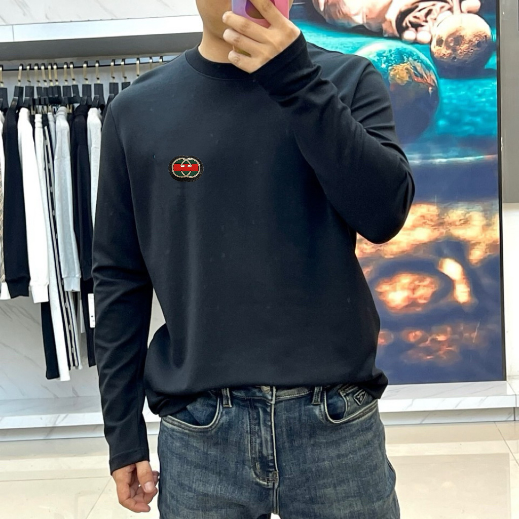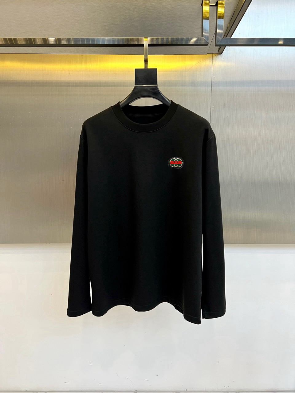 Gucci 2025 Fall/Winter Long Sleeve T-Shirt. 100% premium cotton, 280g fabric. Soft, breathable, wrinkle-resistant. Original logo. Minimalist design for casual or business wear.
