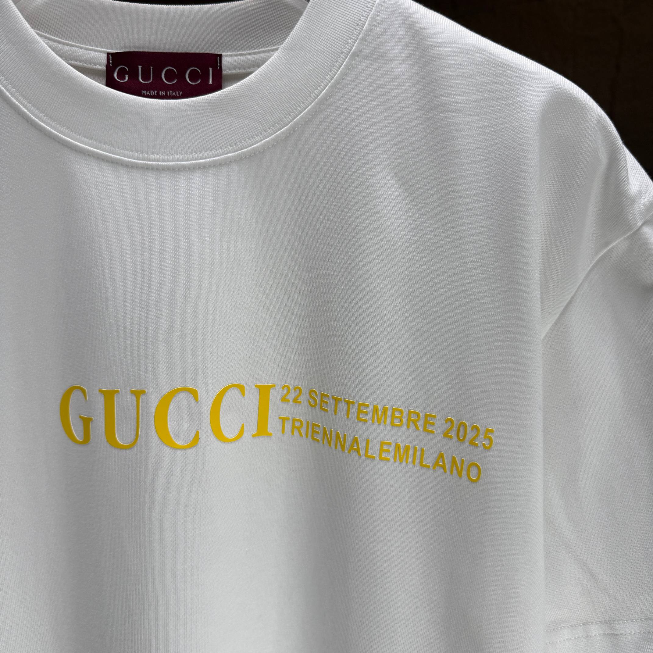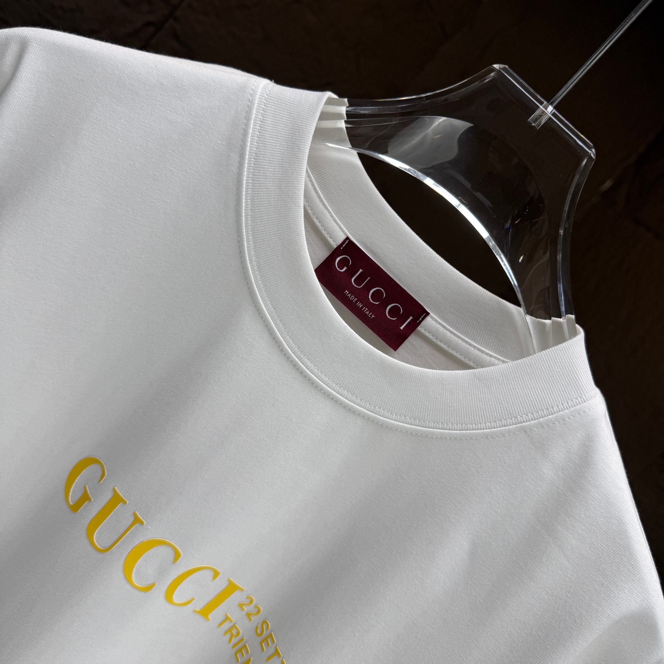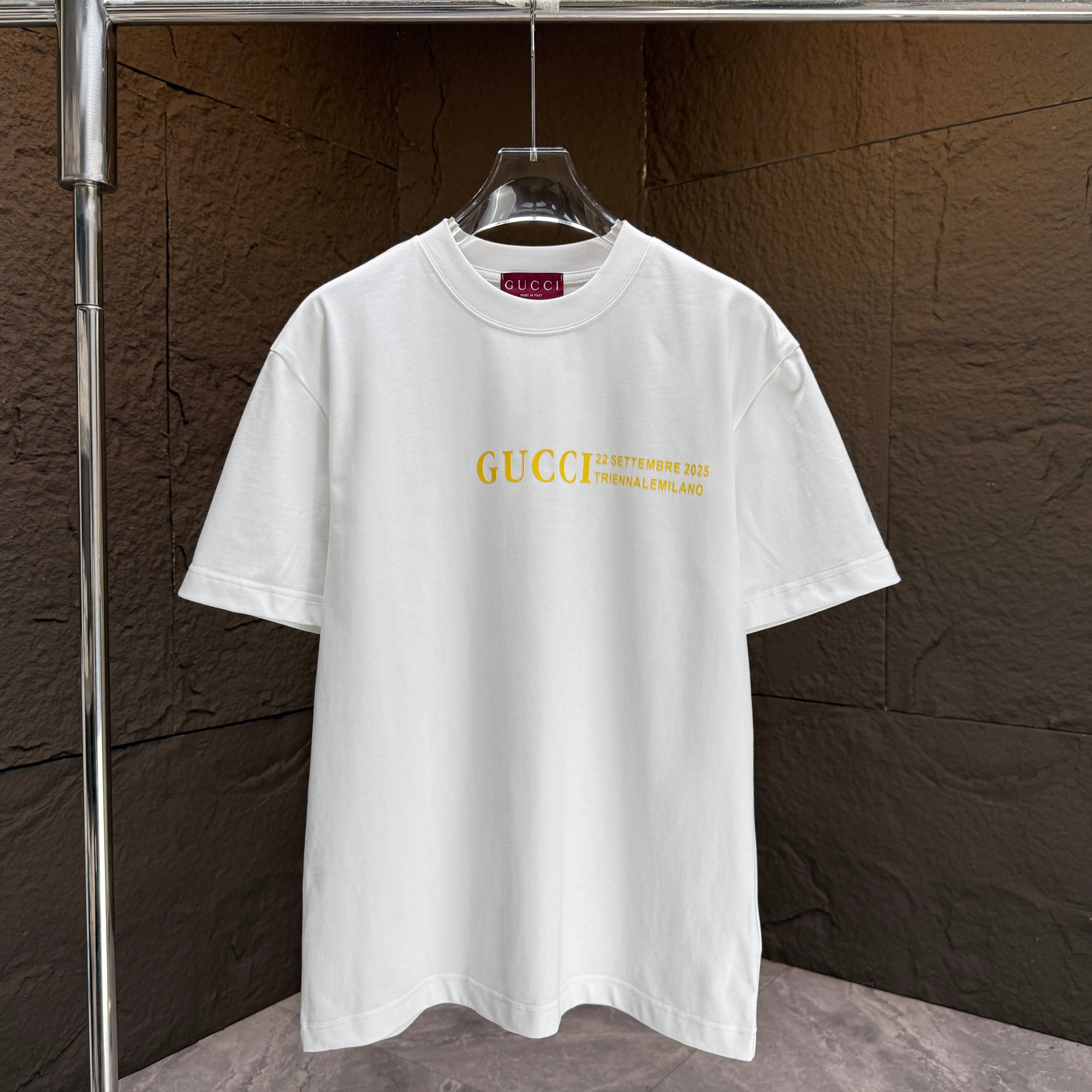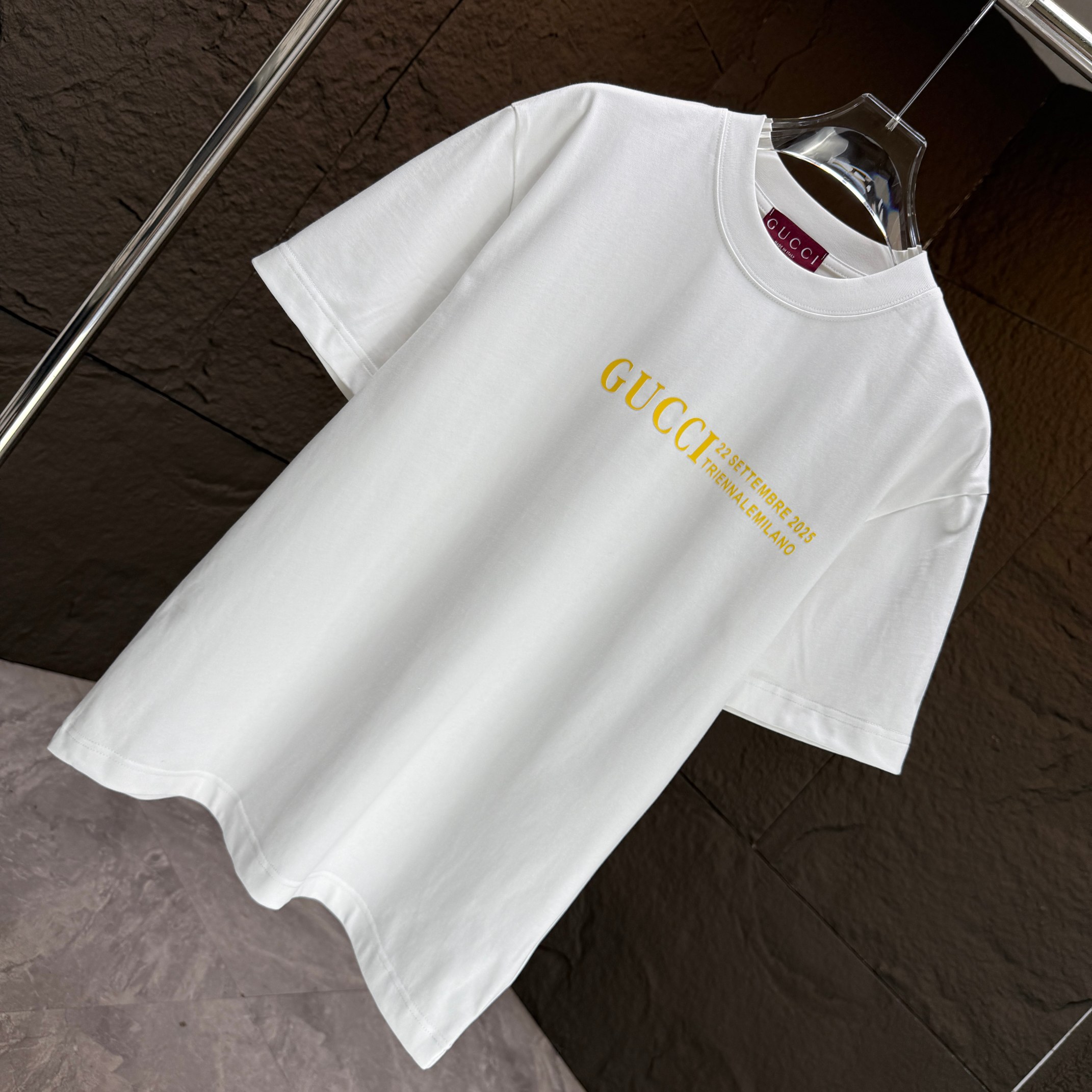 GUCCI* Gucci* 2025 Autumn and Winter New Short Sleeve T-shirt Custom pure cotton letter logo 3D silicone Colors: Black White Night Blue Chocolate Sizes: S M L XL XXL