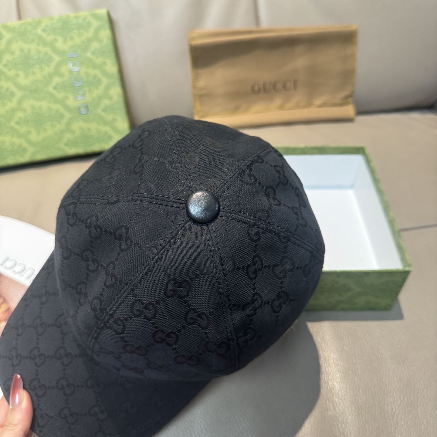 Gucci baseball cap with GG webbing, original fabric and leather, adjustable, unisex.