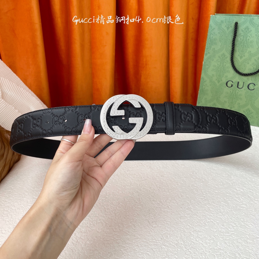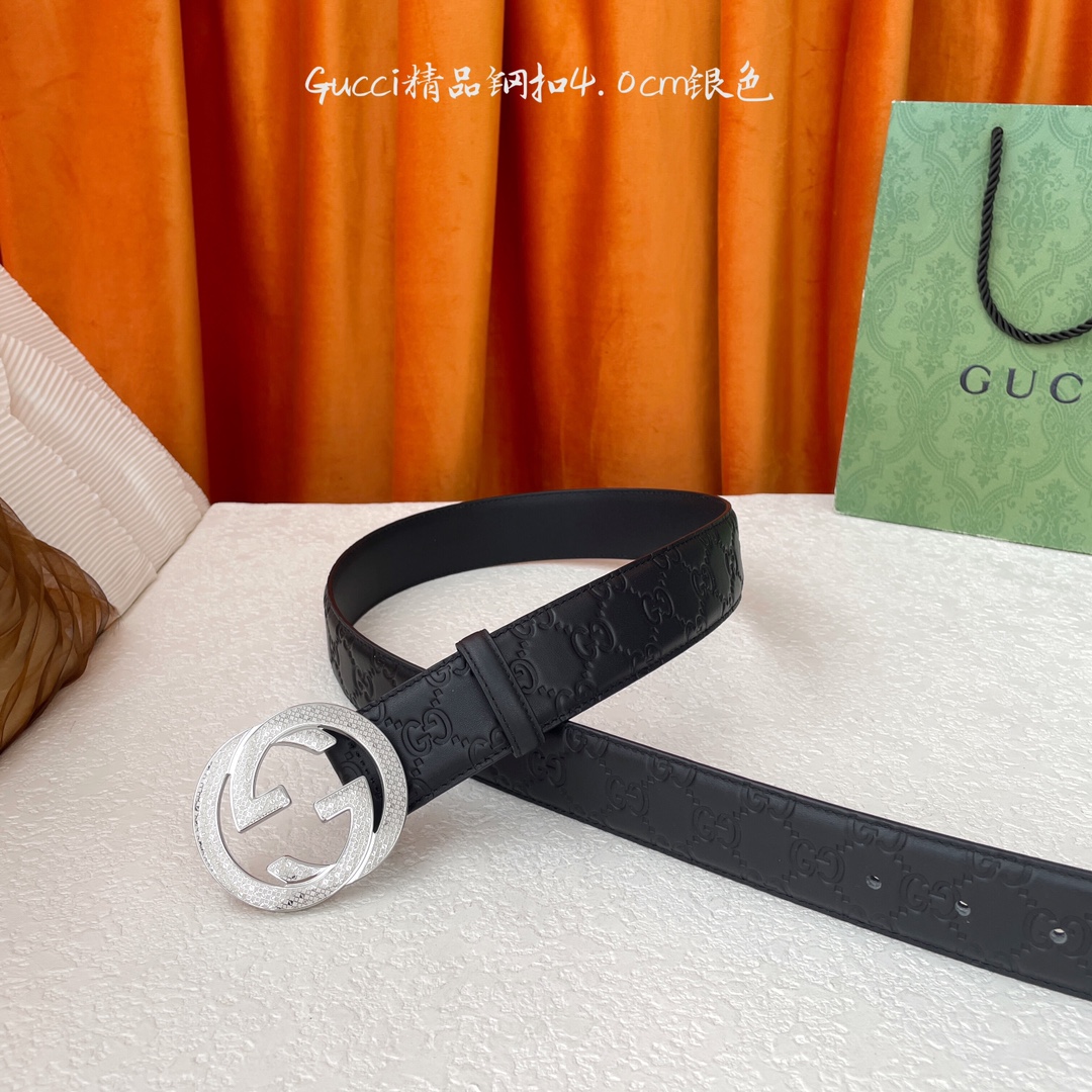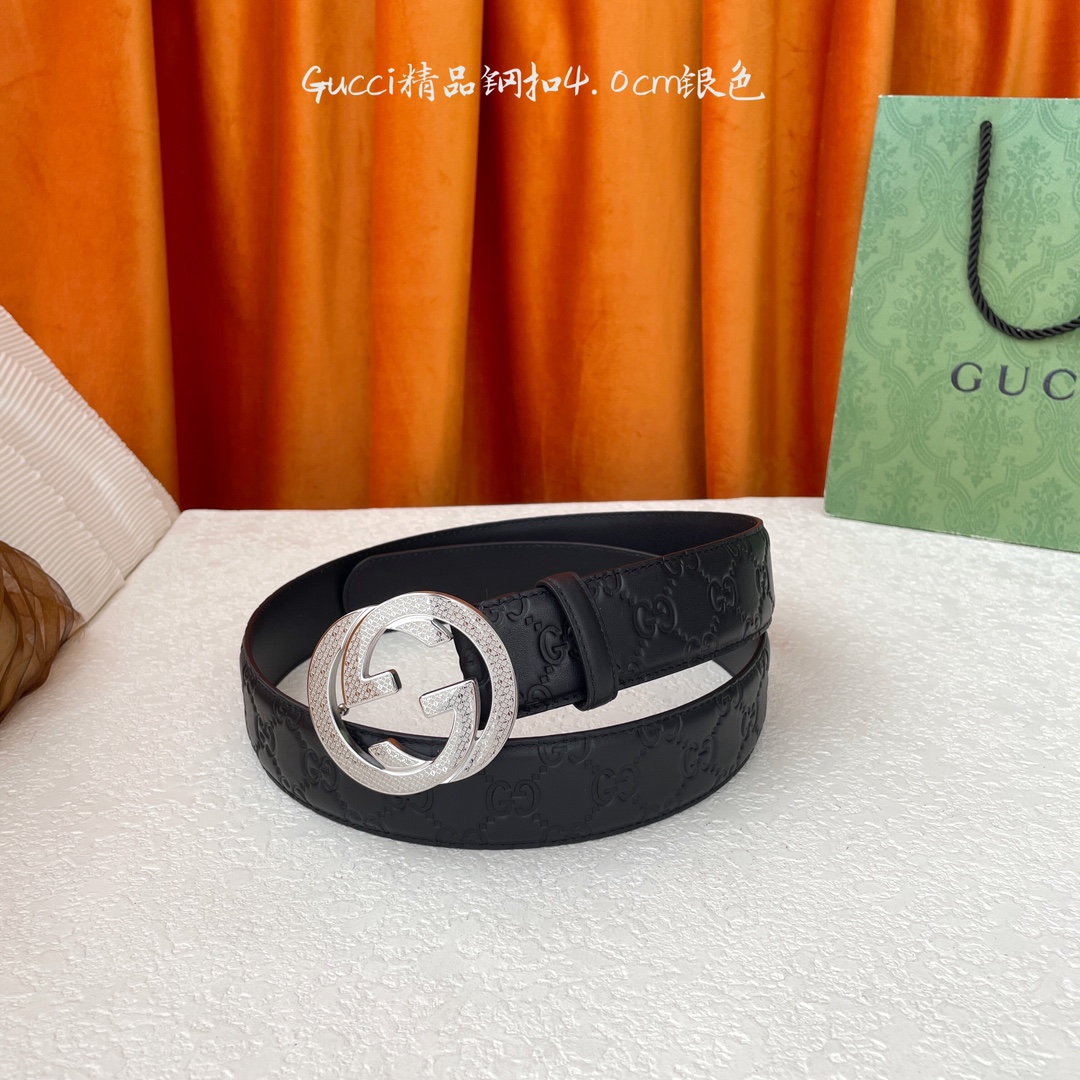Gucci classic imported embossed leather with original sole, premium steel buckle, 4.0 cm width. Timeless and stylish design.