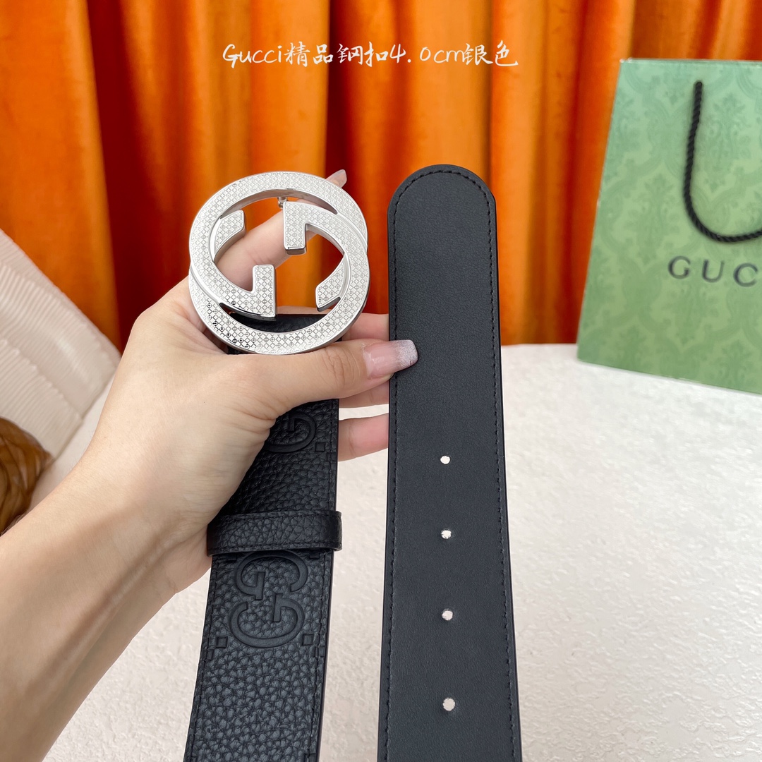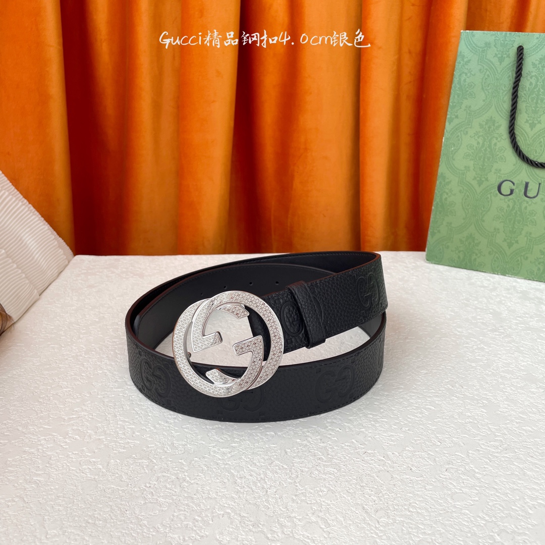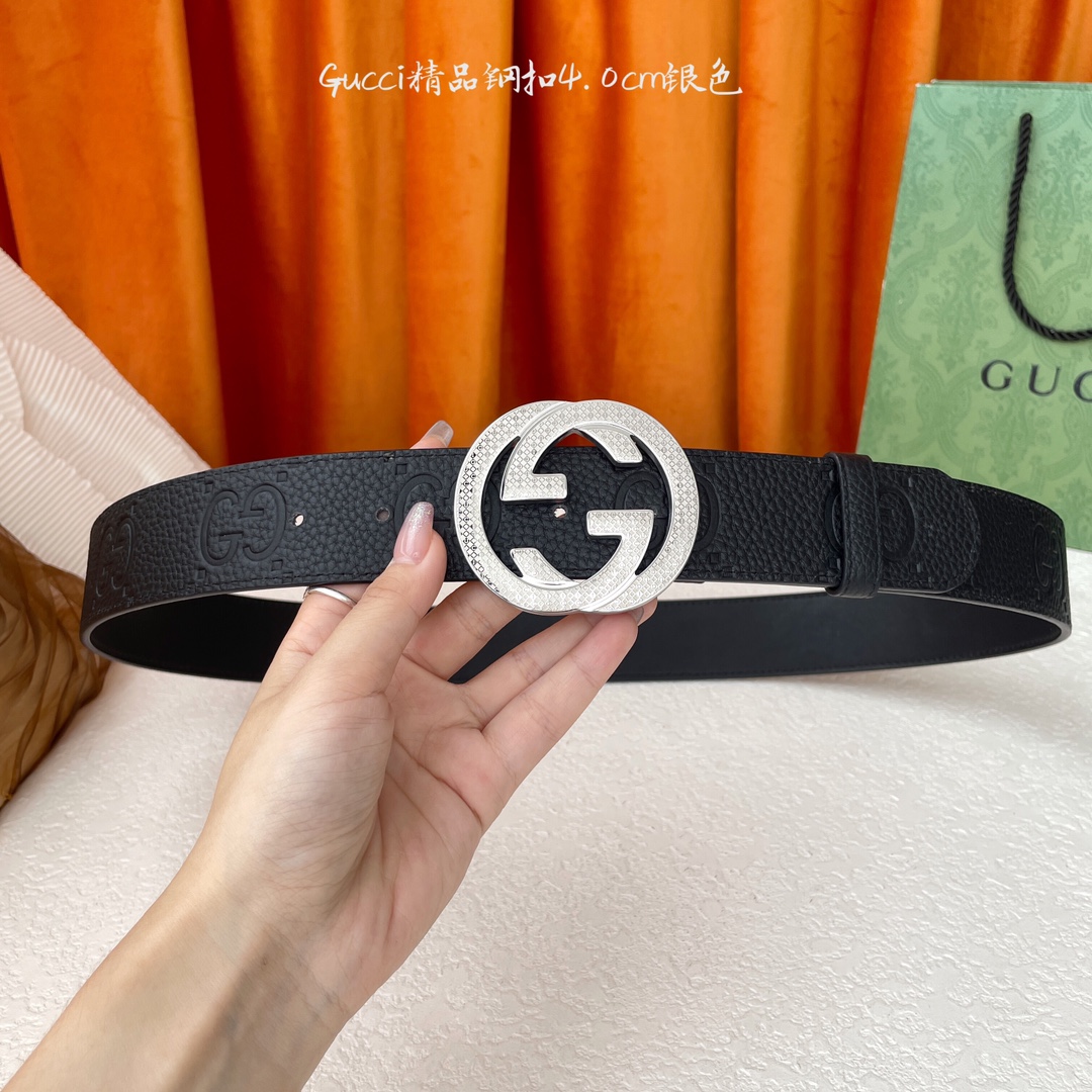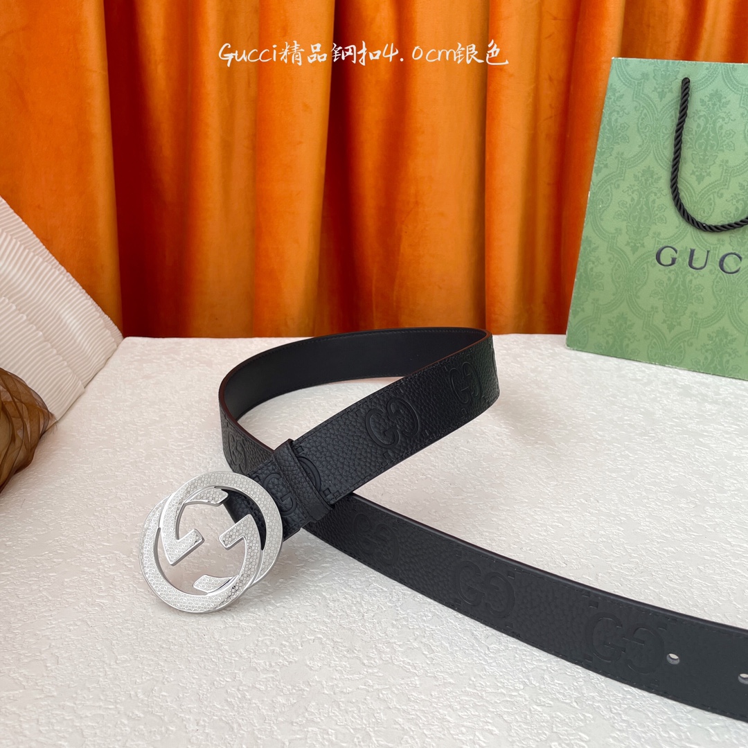 Gucci classic imported embossed leather with original sole, premium steel buckle, 4.0 cm width. Timeless and stylish design.