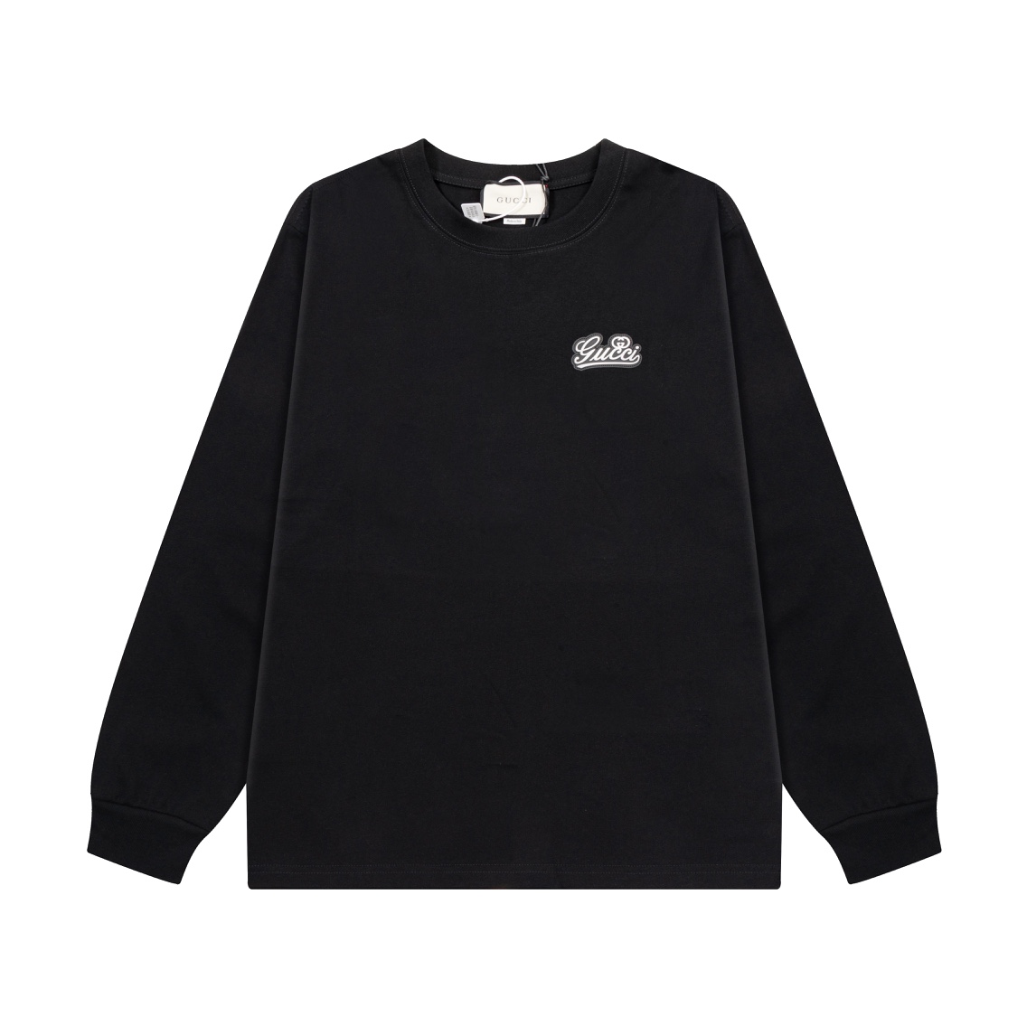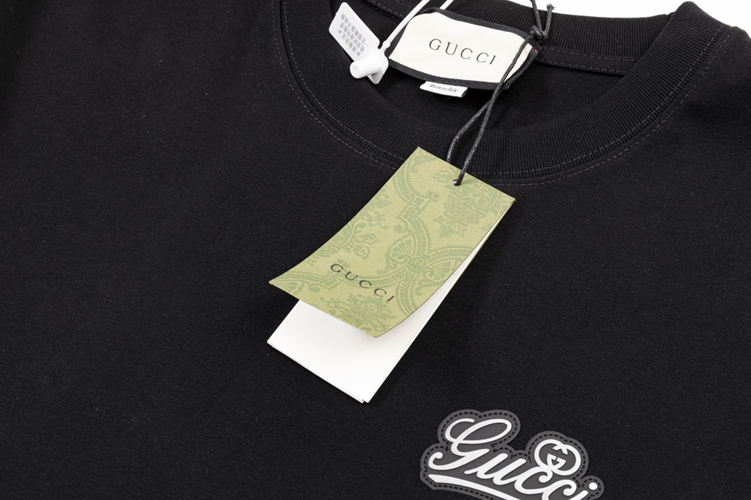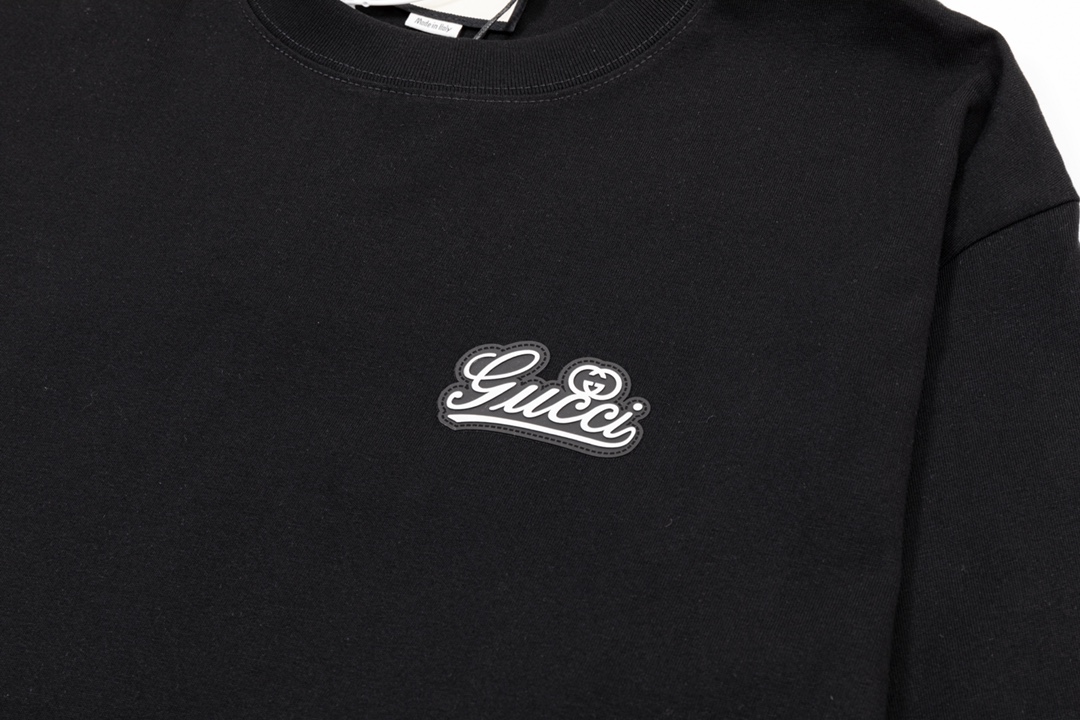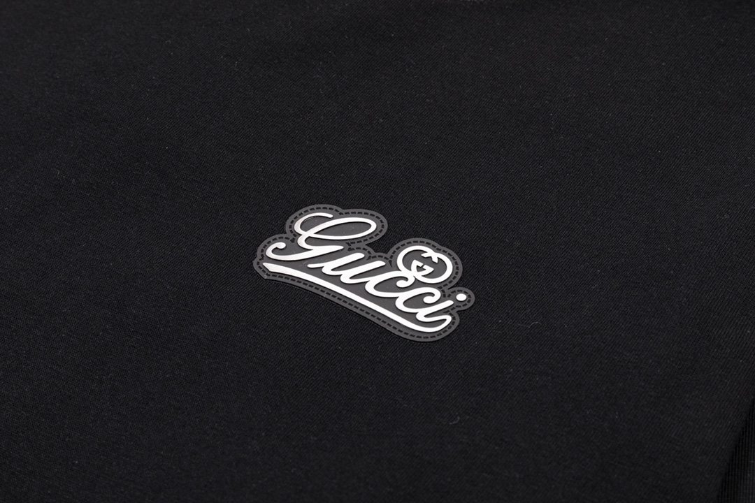 Gucci logo, relaxed fit, 26s combed cotton, 280gsm, 1x1 rib, enzyme wash. Colors: Black. Sizes: S-XXL.