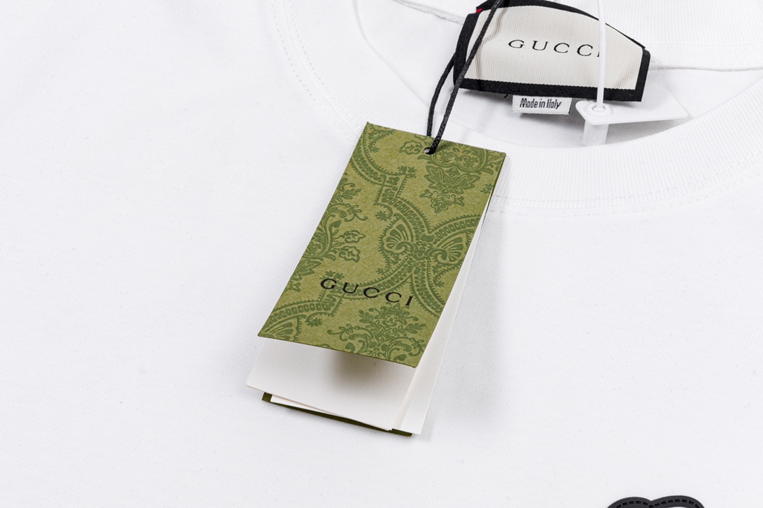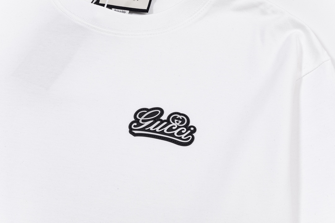 Gucci logo, relaxed fit, 26s combed cotton, 280gsm, 1x1 Sorona rib, enzyme washed. Color: White. Size: S-XXL.