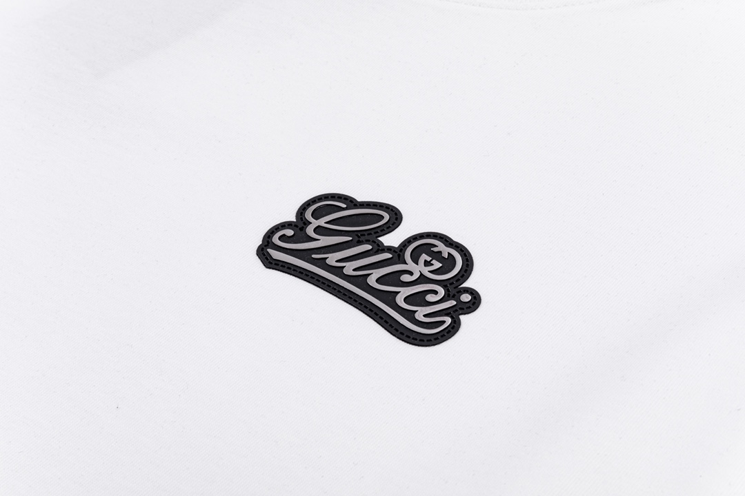 Gucci Logo is fashionable and elegant, with a dropped shoulder cut. The fabric is made of 26s double yarn combed cotton compact spun yarn, with a weight of 280g, paired with 1x1 Solona ribbing. The fabric is enzyme-washed, and the fit is relaxed.
