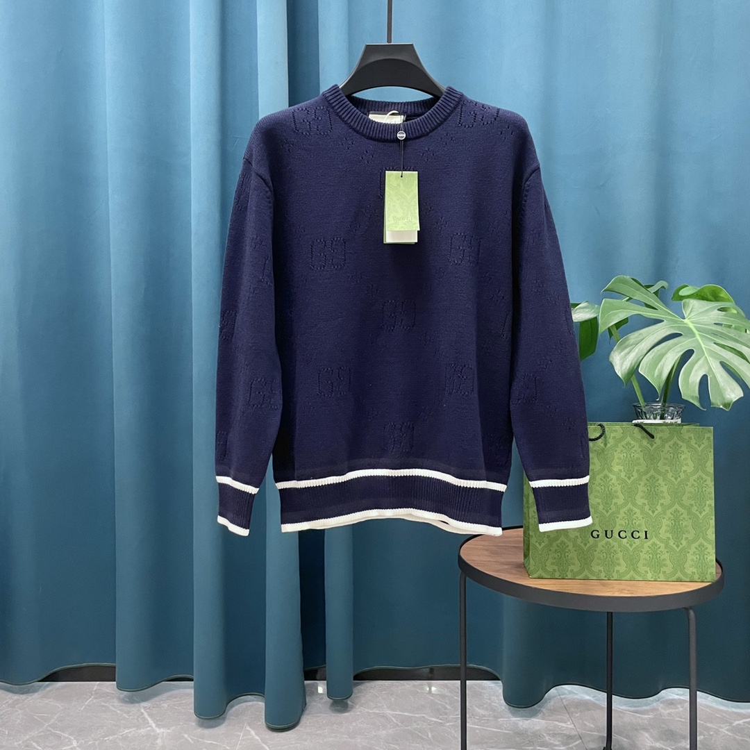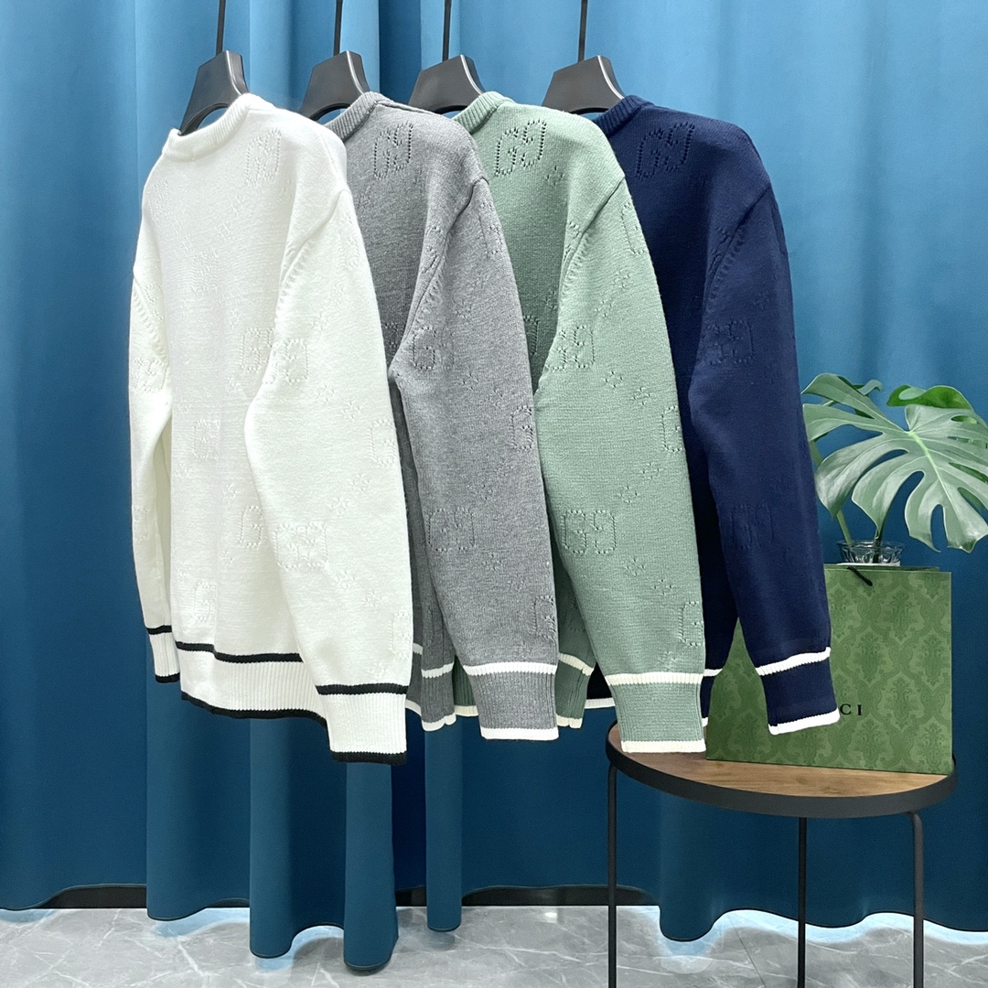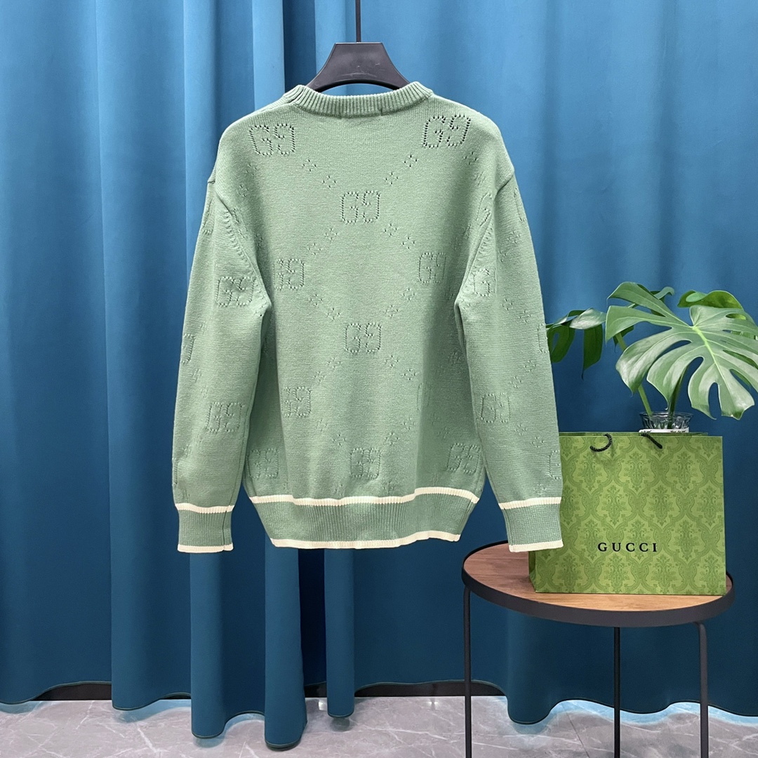 Gucci new hollow jacquard letter wool knit sweater. Unisex, 500g heavyweight. High-quality wool blend, soft and skin-friendly. Sizes S M L XL.