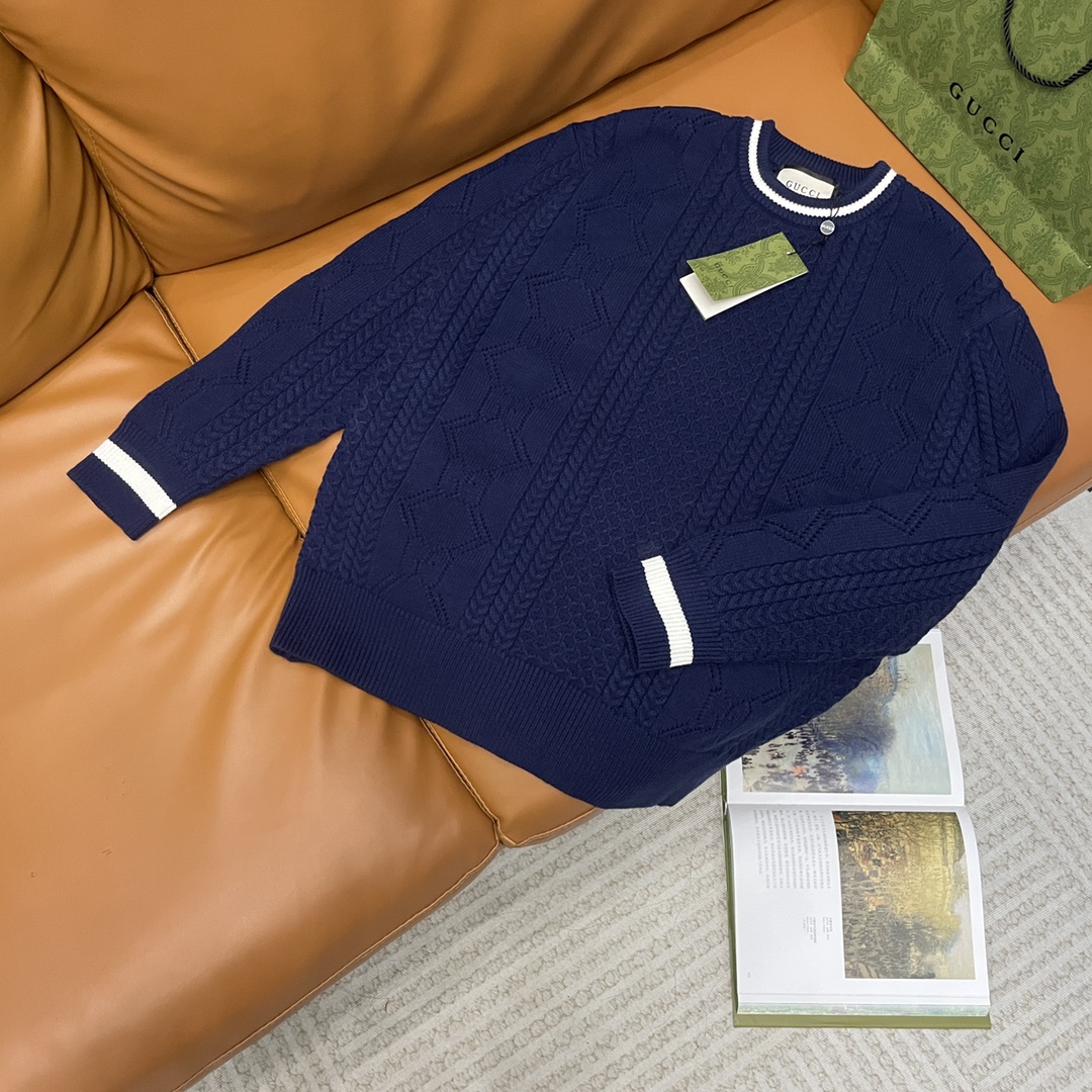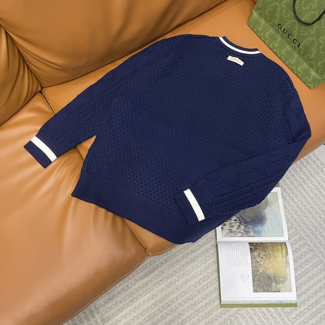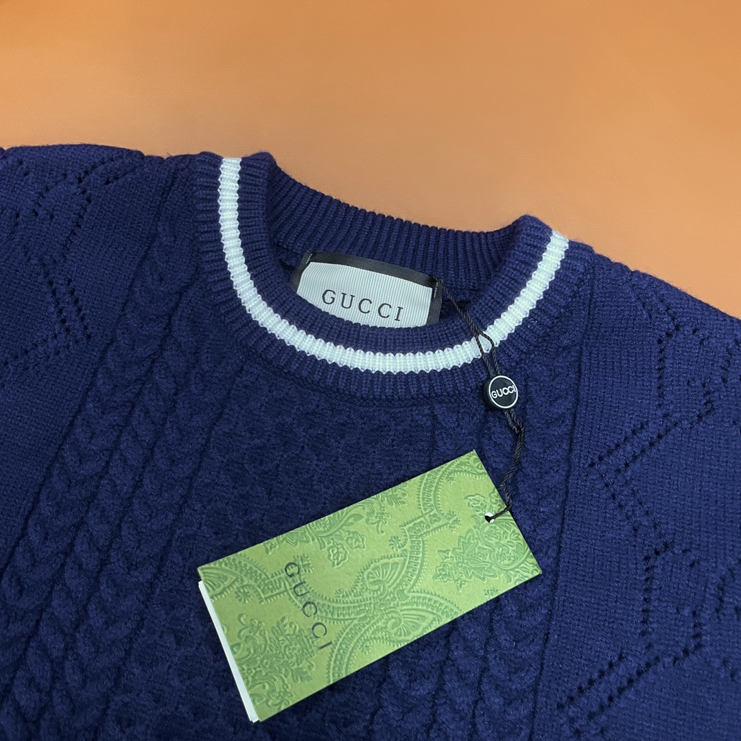 Gucci new patterned wool sweater, unisex, heavy 500g, high-quality materials and craftsmanship.