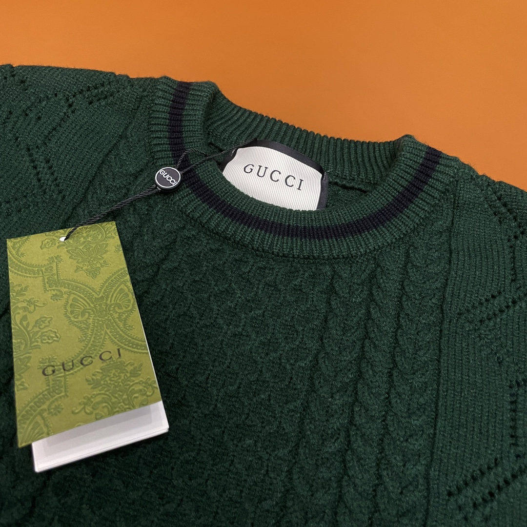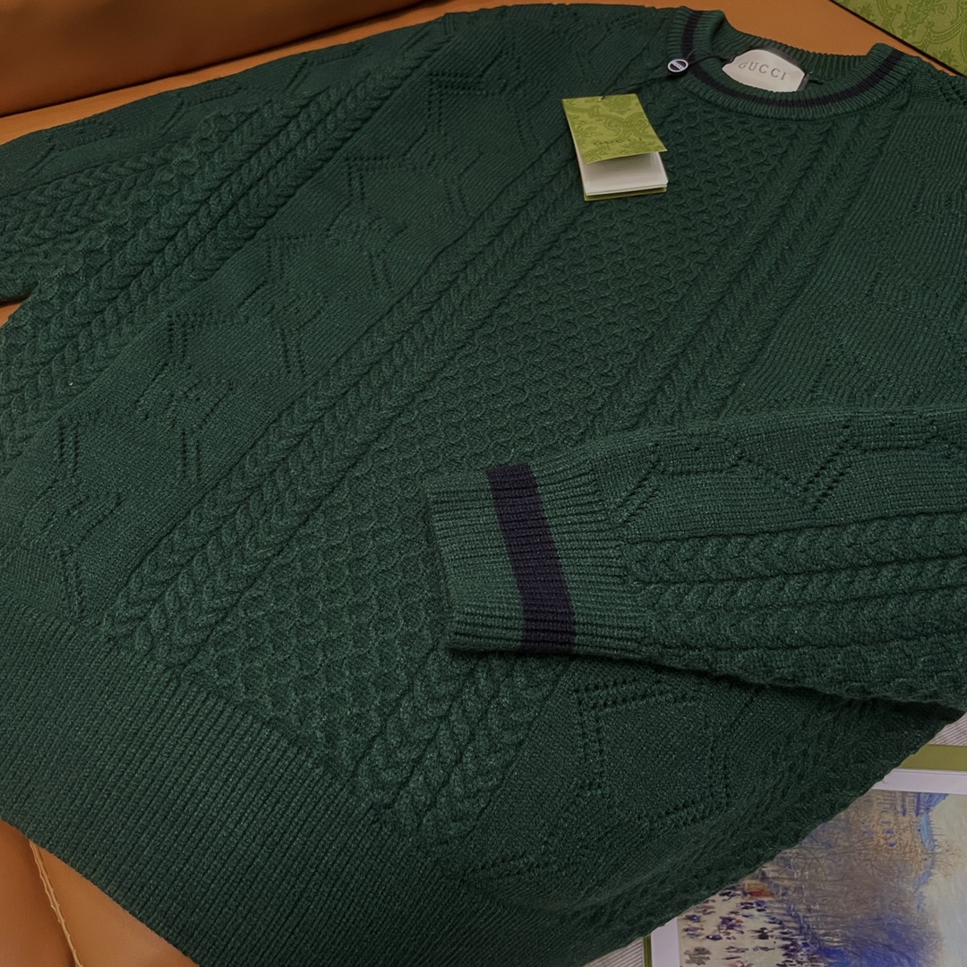 Heavyweight high version) Gucci➡️ New Jacquard Wool Knit Sweater OS Fit 🔥 Unisex Entire garment weighs 500 grams, heavyweight, crushes market commodities Fabric knitted using 7-gauge imported machine, uses wool-blend yarn, yarn-dyed. The new season's main focus—whether color, craftsmanship, or elements—is quite stunning. High-level craftsmanship, customer-supplied imported sweater fabric, excellent skin-friendliness, details extremely perfect and flawless. Sizes: S M L XL