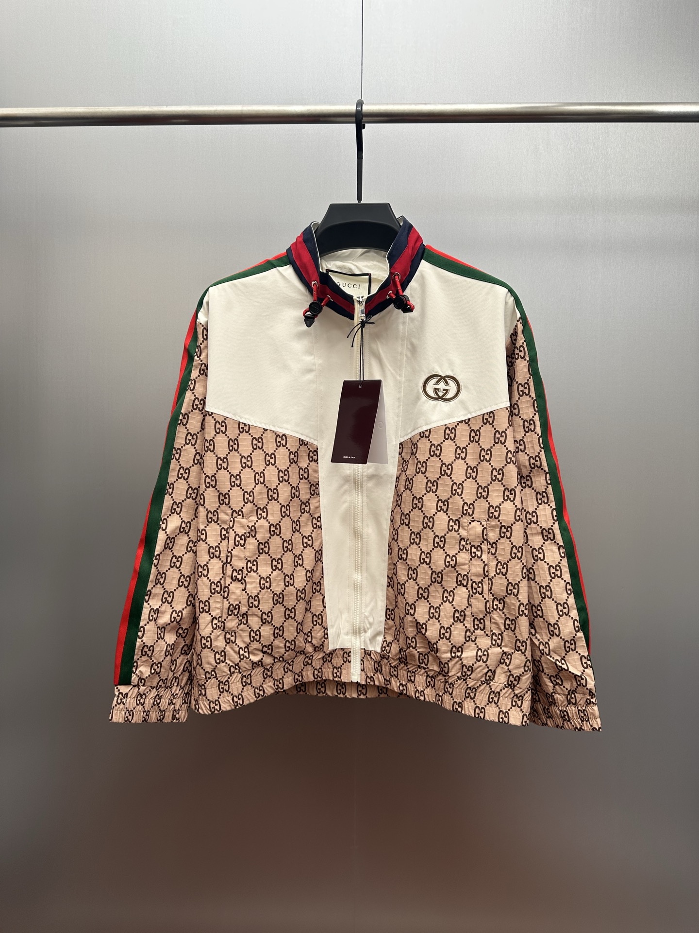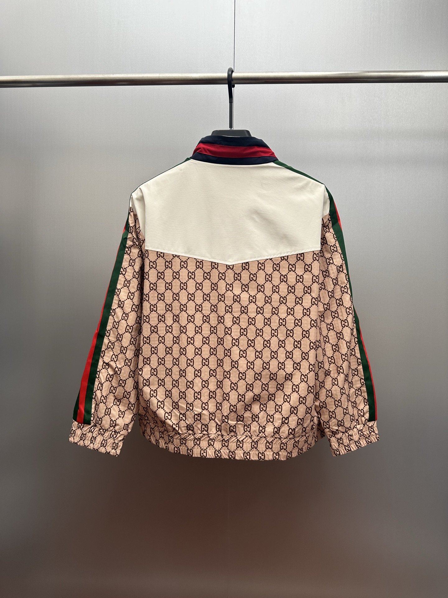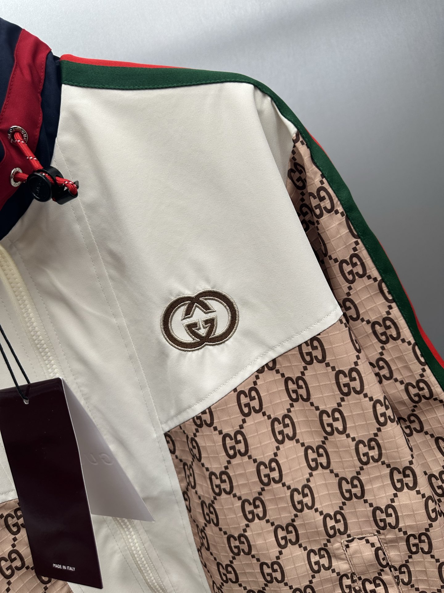 Made in Italy Brand new authentic product Full print double G monogram pattern With dark brown knitted trim, stand-up collar design Zipper closure Easy to wear and take off, fabric uses custom fabric Exquisite workmanship Details in place