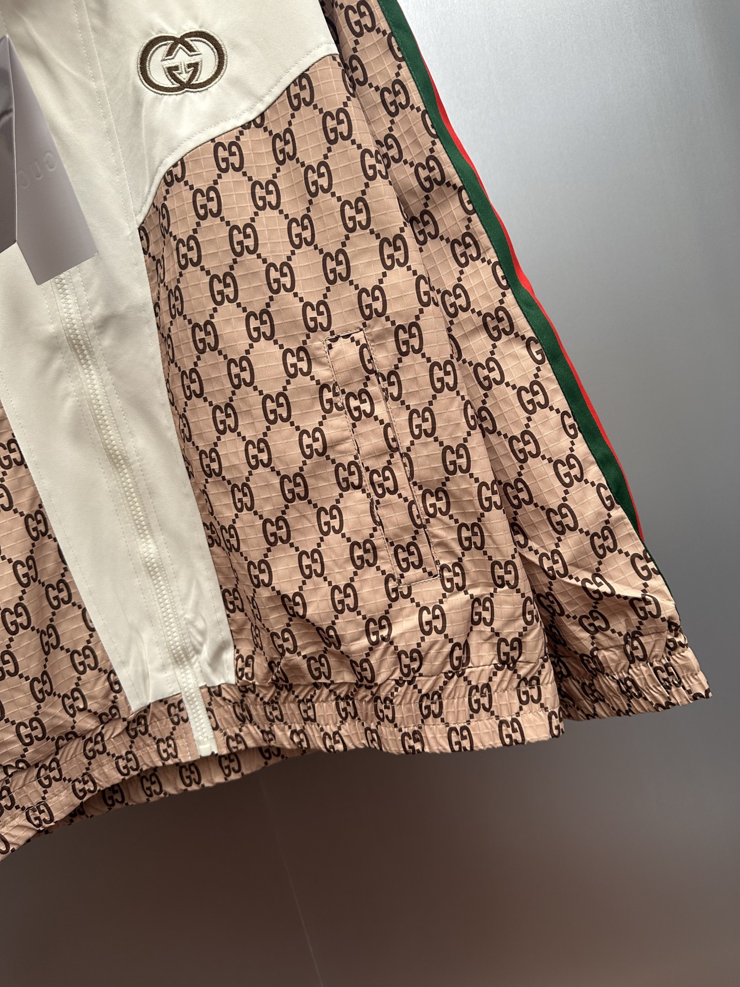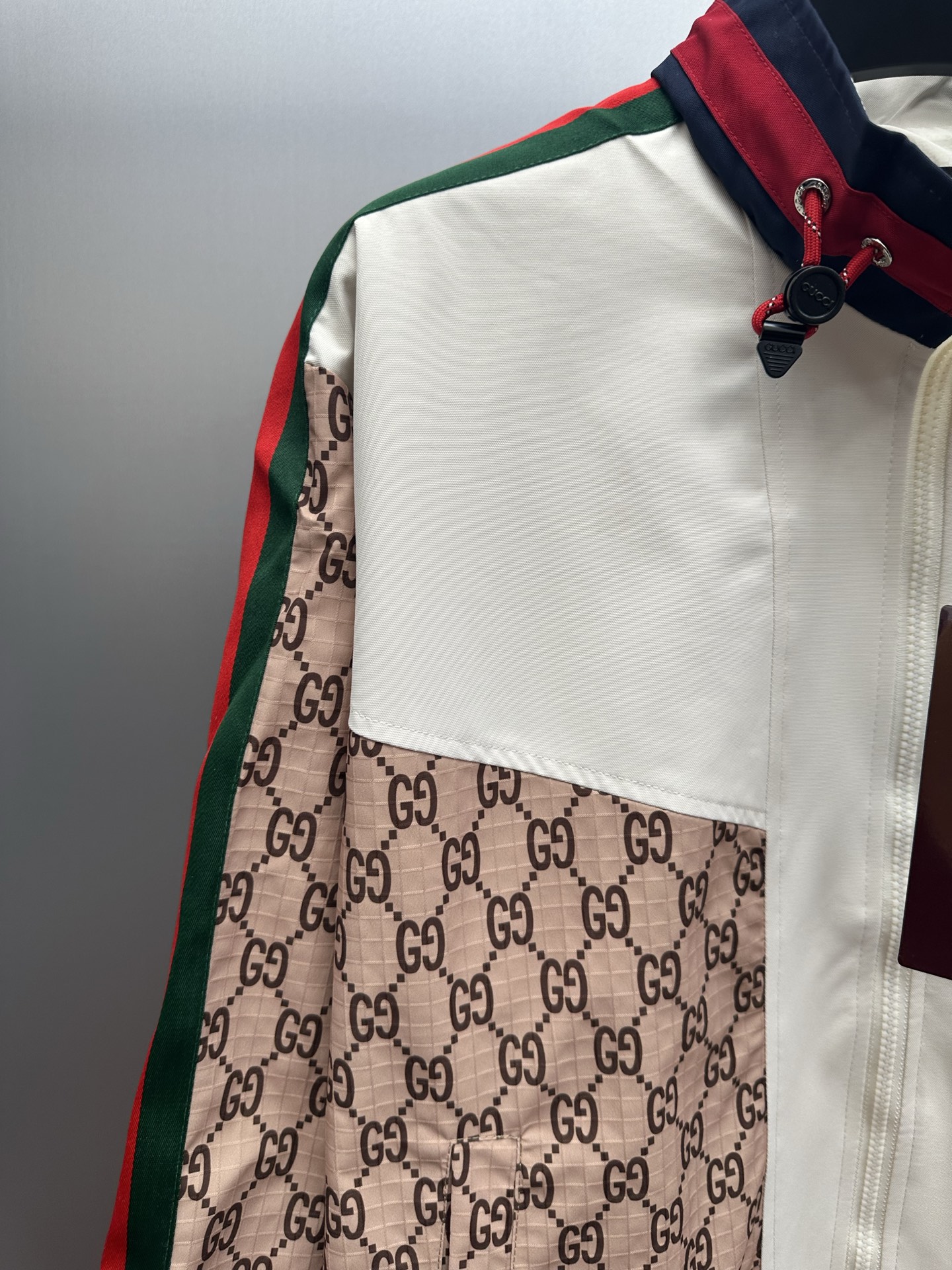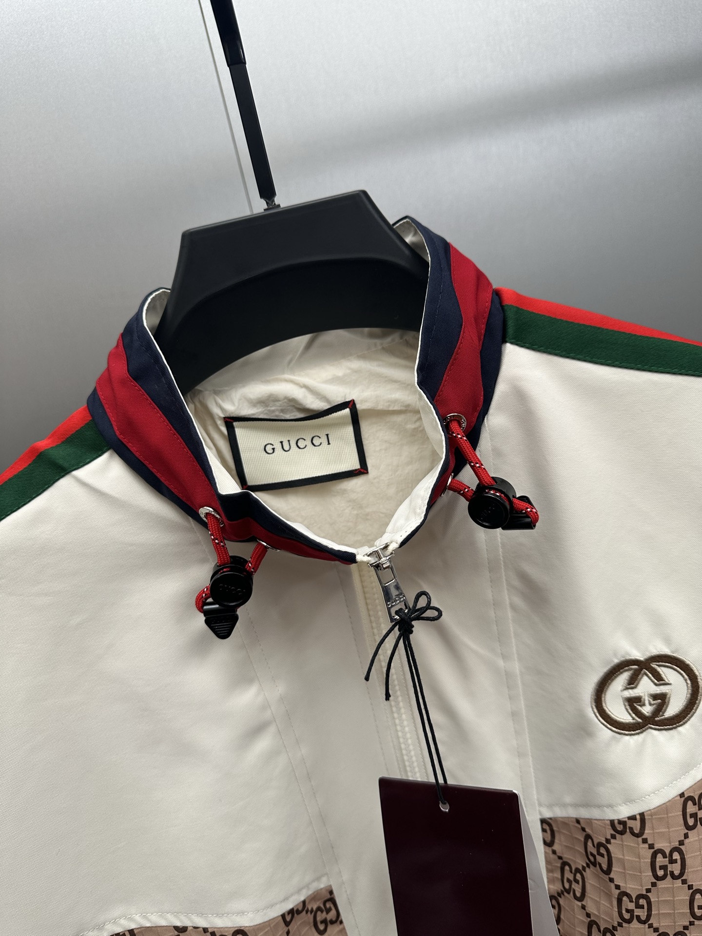 Made in Italy Brand new authentic product Full print double G monogram pattern With dark brown knitted trim, stand-up collar design Zipper closure Easy to wear and take off, fabric uses custom fabric Exquisite workmanship Details in place
