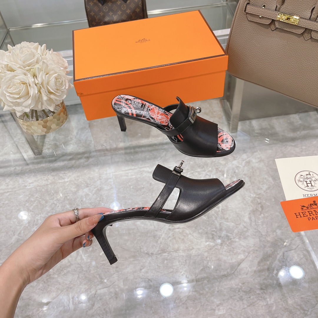 Hermes 2022 Spring/Summer Sandals: Imported calfskin upper, mixed sheepskin lining, Italian leather sole, 6.5cm heel. Sizes 35-40.