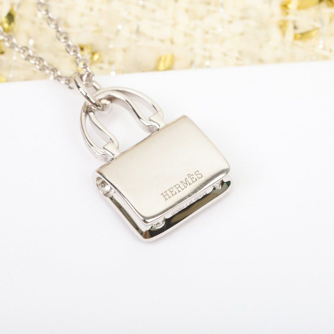 Hermes Amulettes Constance necklace, solid pendant, 925 silver plating, limited stock.